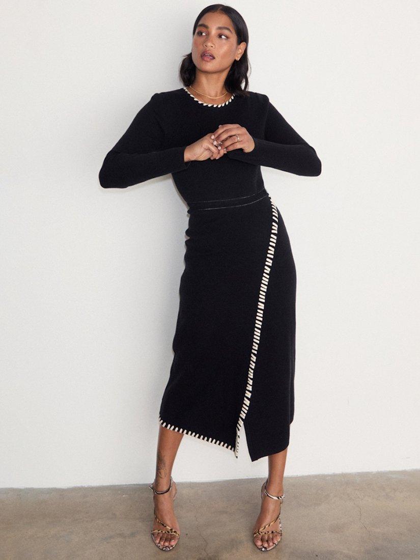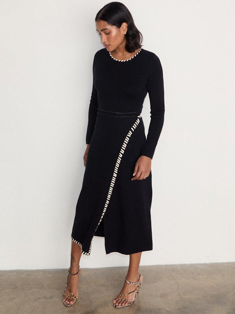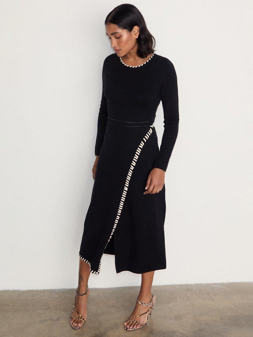 Never Fully DressedContrast Loop Luxe Knit Dress, Black