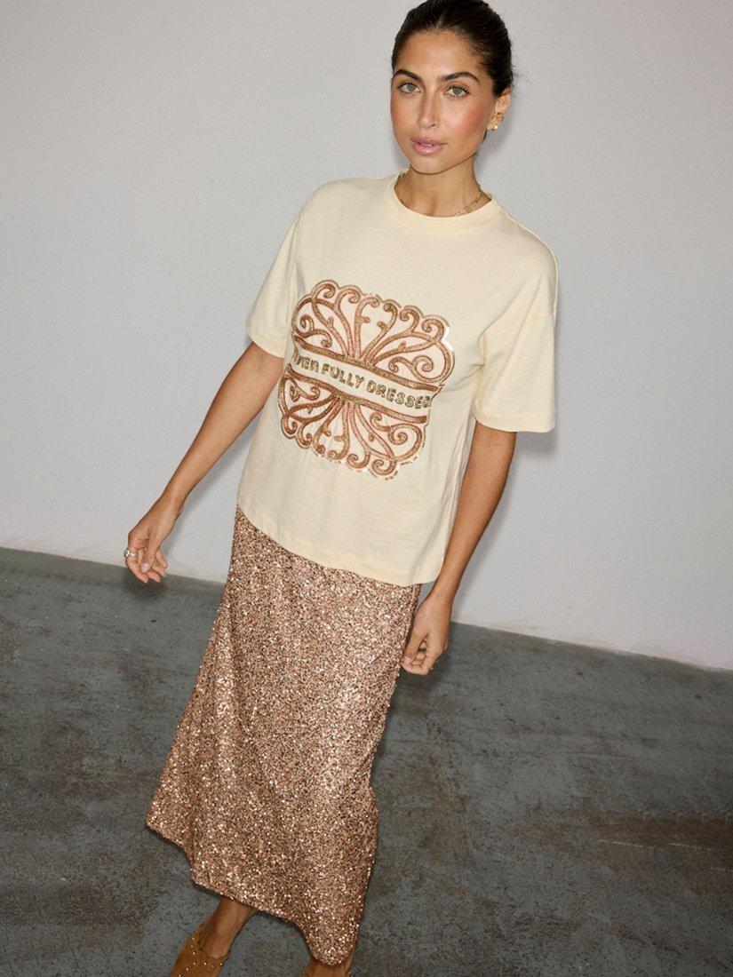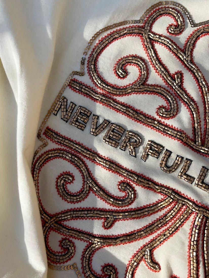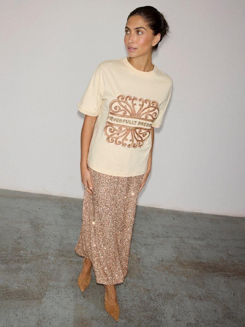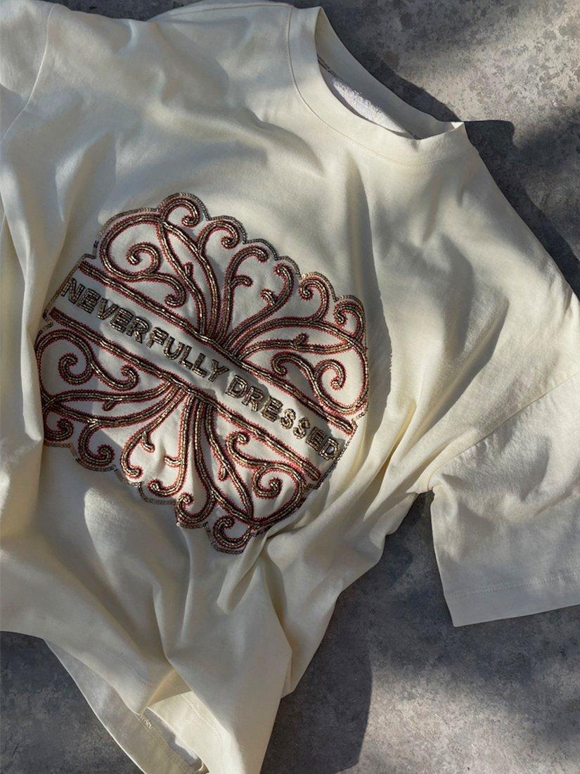A boxy-fit t-shirt, crafted from super-soft and breathable cotton and designed with the Never Fully Dressed logo embroidered in contrast beading.
