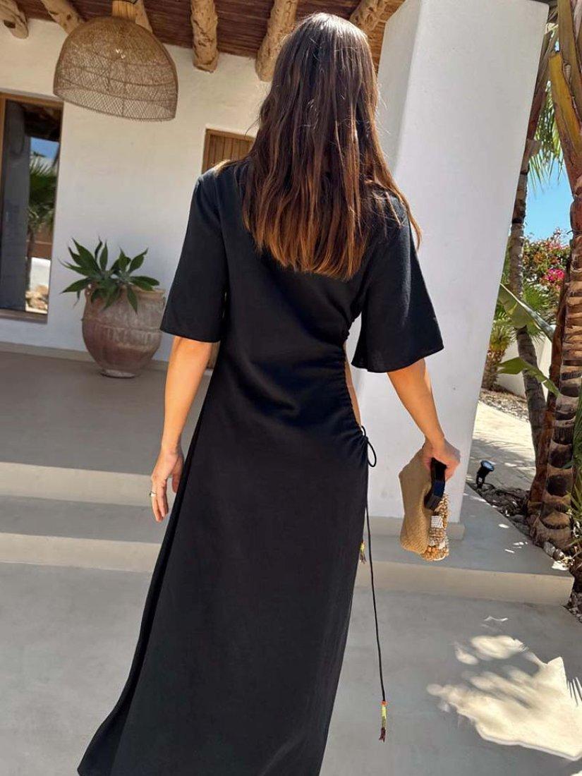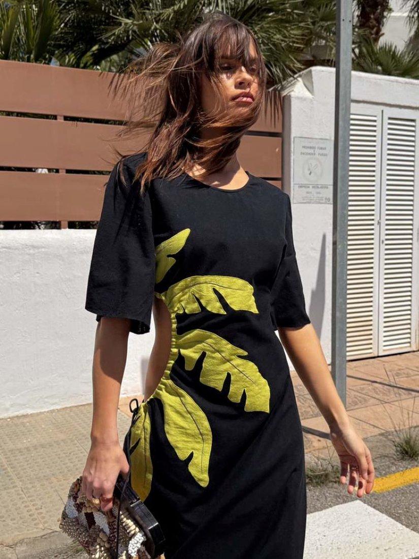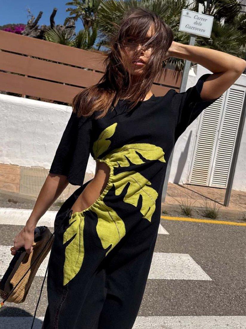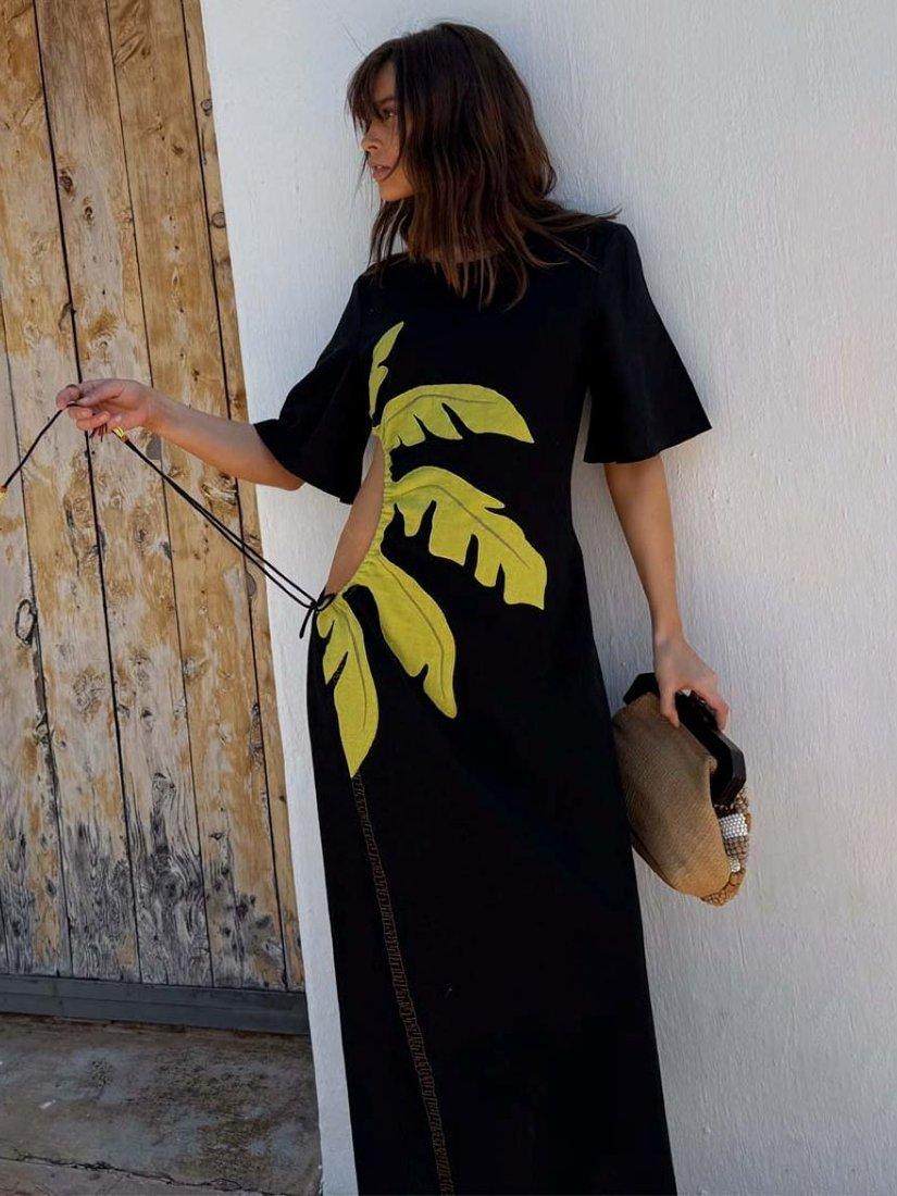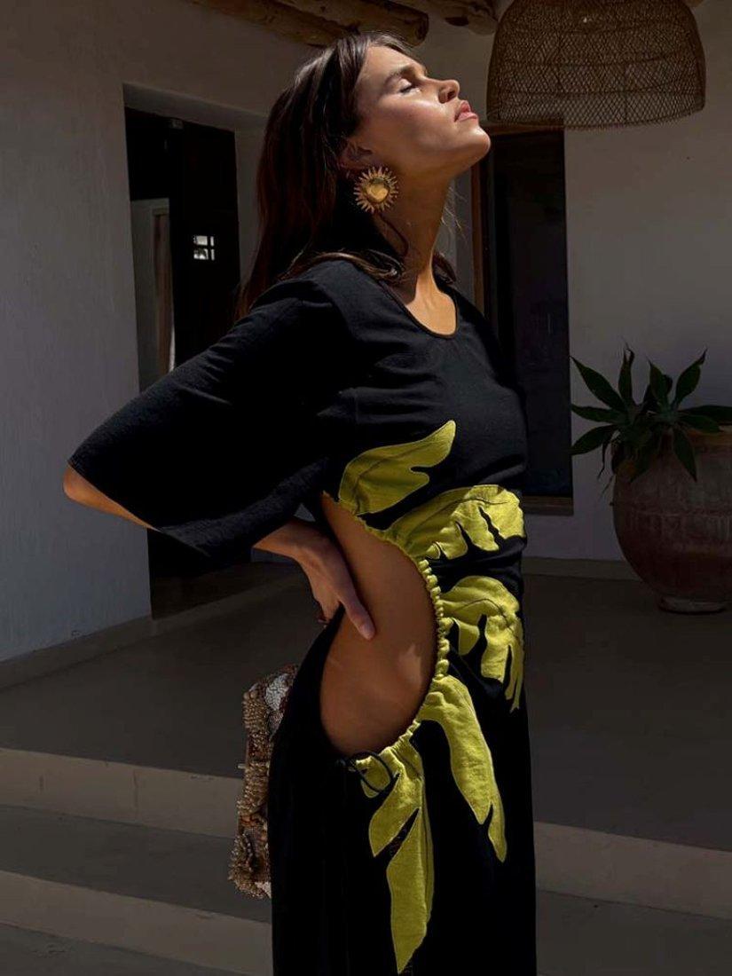A lightweight, cotton blend maxi dress suitable for dressing up or down. With our iconic palm motif accompanied by cut out detailing on the waist that can be adjusted to suit everybody!
