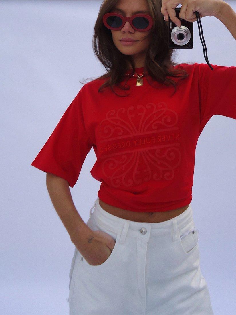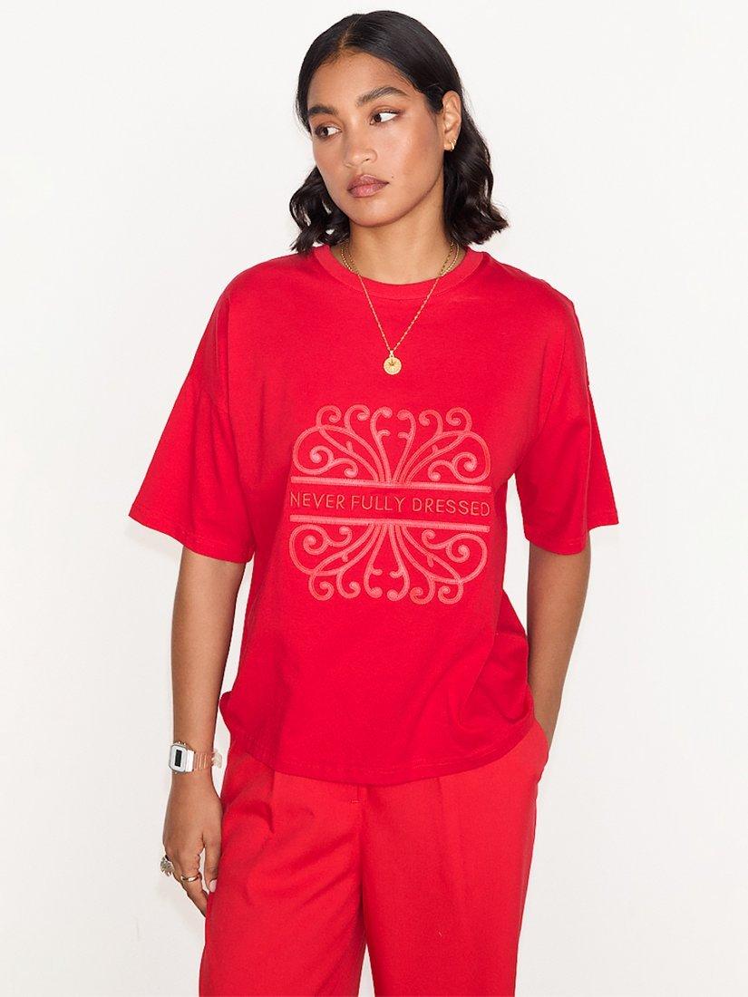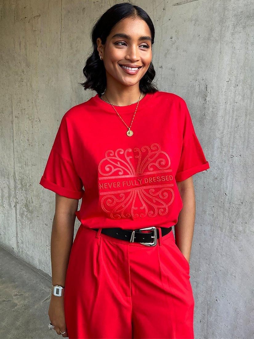 A short-sleeve t-shirt, crafted from soft and breathable cotton and designed with a Never Fully Dressed logo stitched on the front. Cut to a relaxed fit.