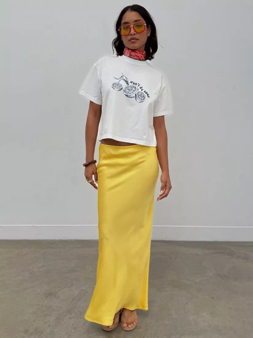 A relaxed silhouette with a fine line lemon print, inspired by the gorgeous scenery of Sóller, that feels minimal yet elevates the simple structure.