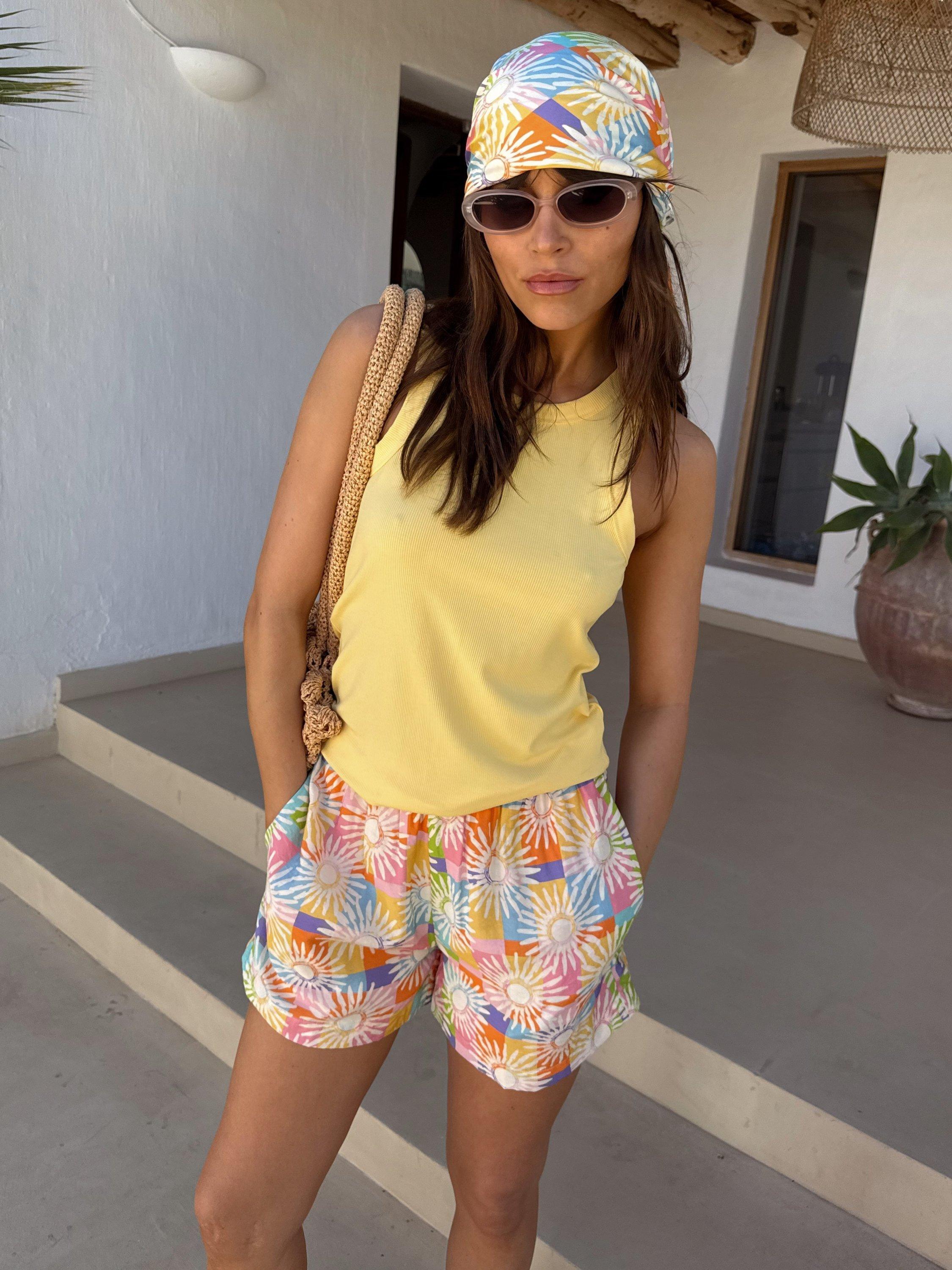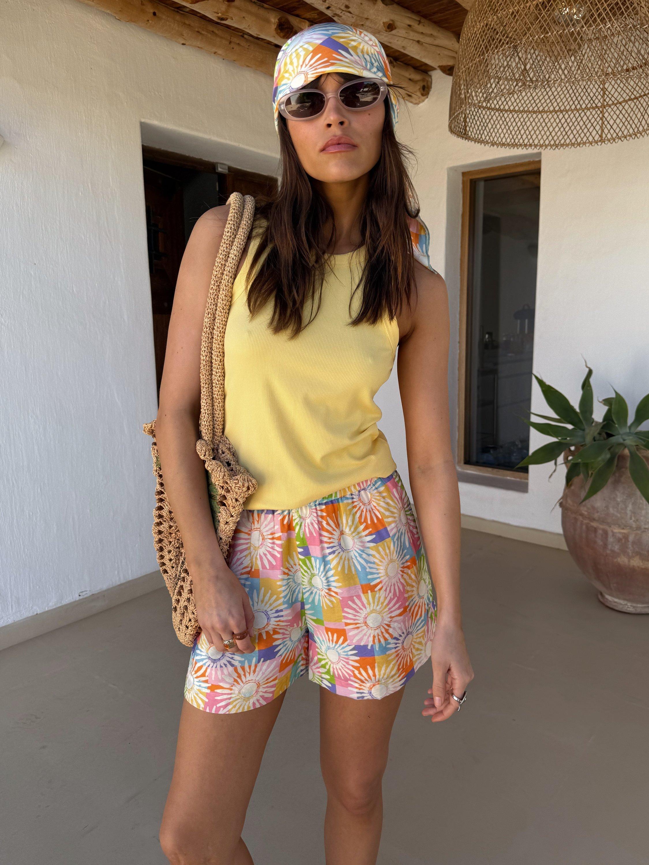 A Never Fully Dressed bestseller, Elissa shorts get a vibrant update in a colourful checked print adorned with hand-painted sun motifs, bringing that joyful, sun-soaked feeling.