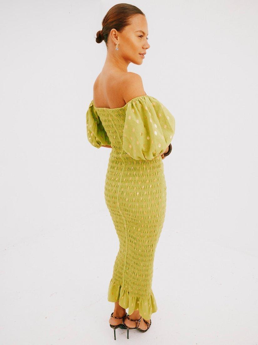 Never Fully DressedFleck Print Maxi Dress, Olive