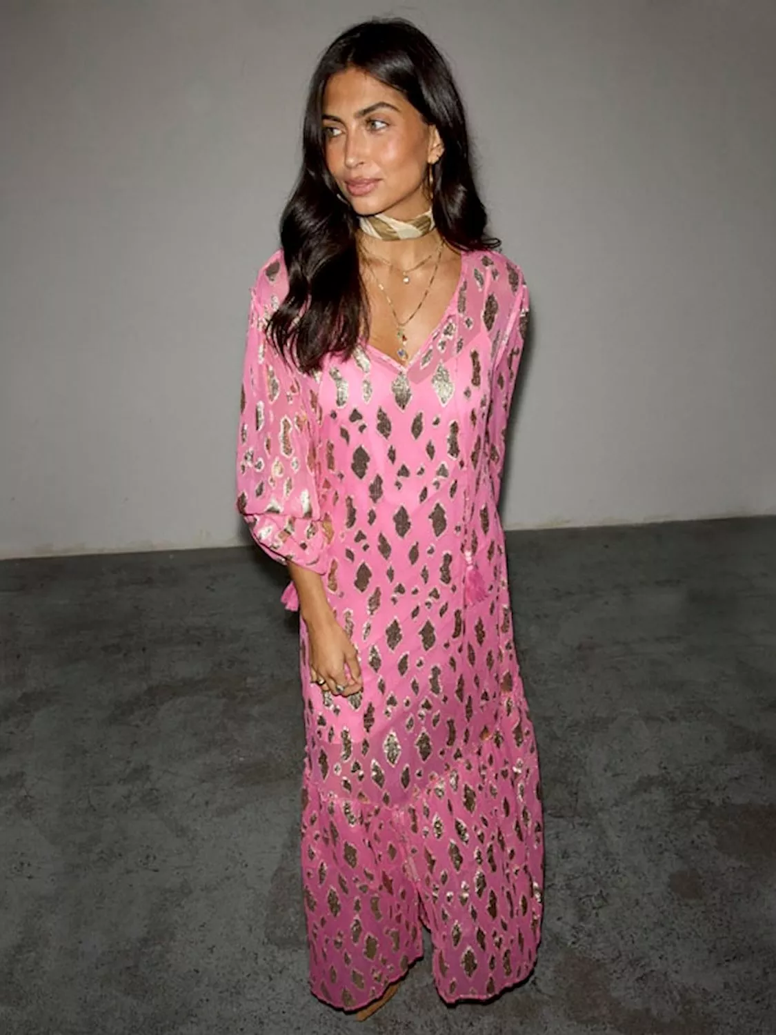 Never Fully DressedHarmony Jacquard Dress, Pink/Gold