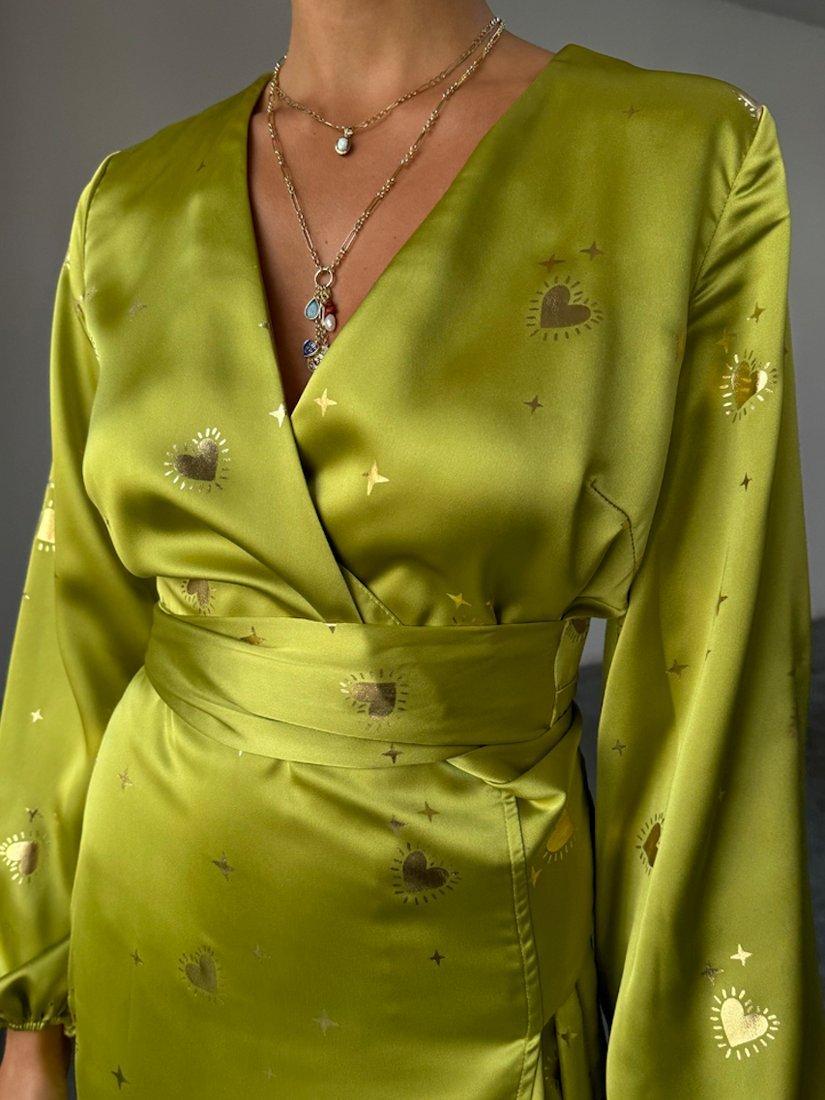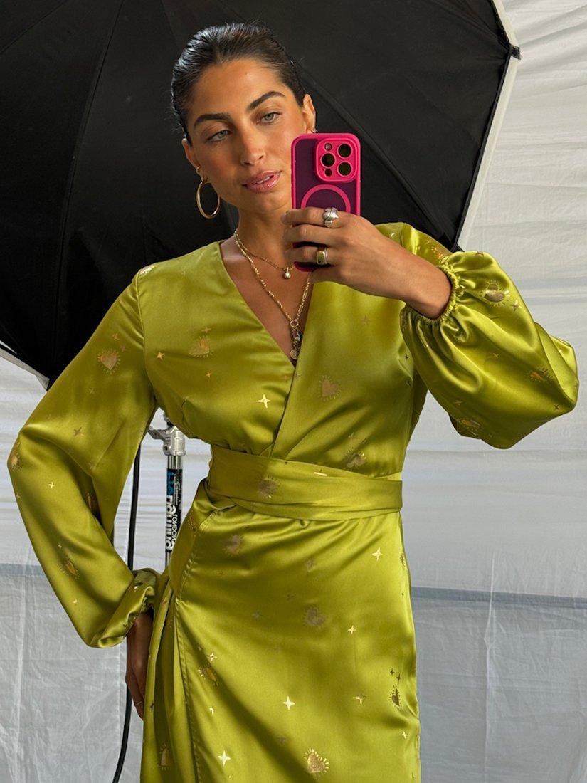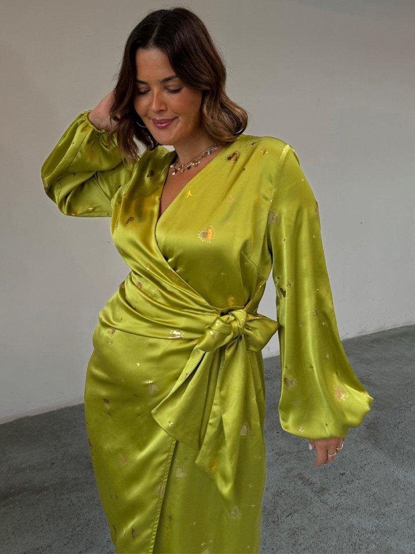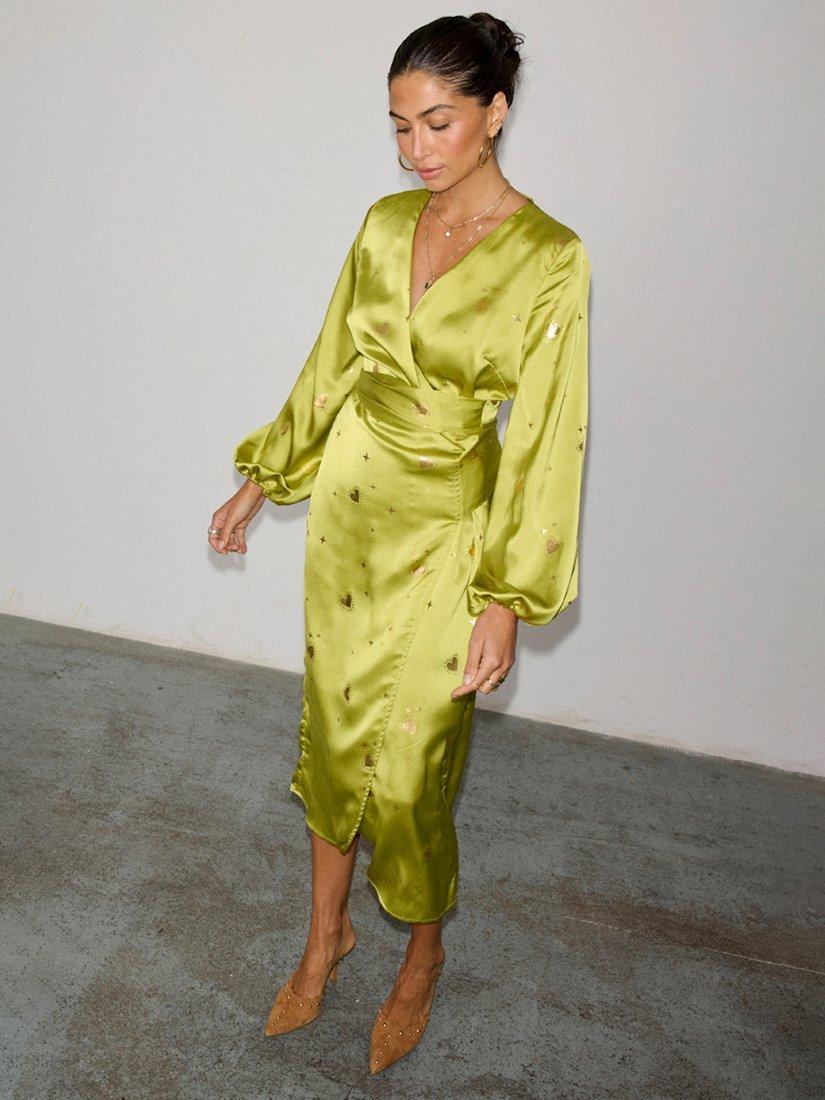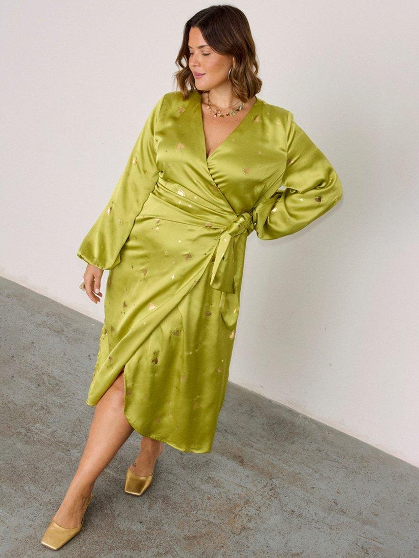 Designed in a smart, wrap style, this midi dress from Never Fully Dressed is made using a blend of fabrics. With a flattering wrap neckline and full-length sleeves, this style features an intricate foil hearts design.