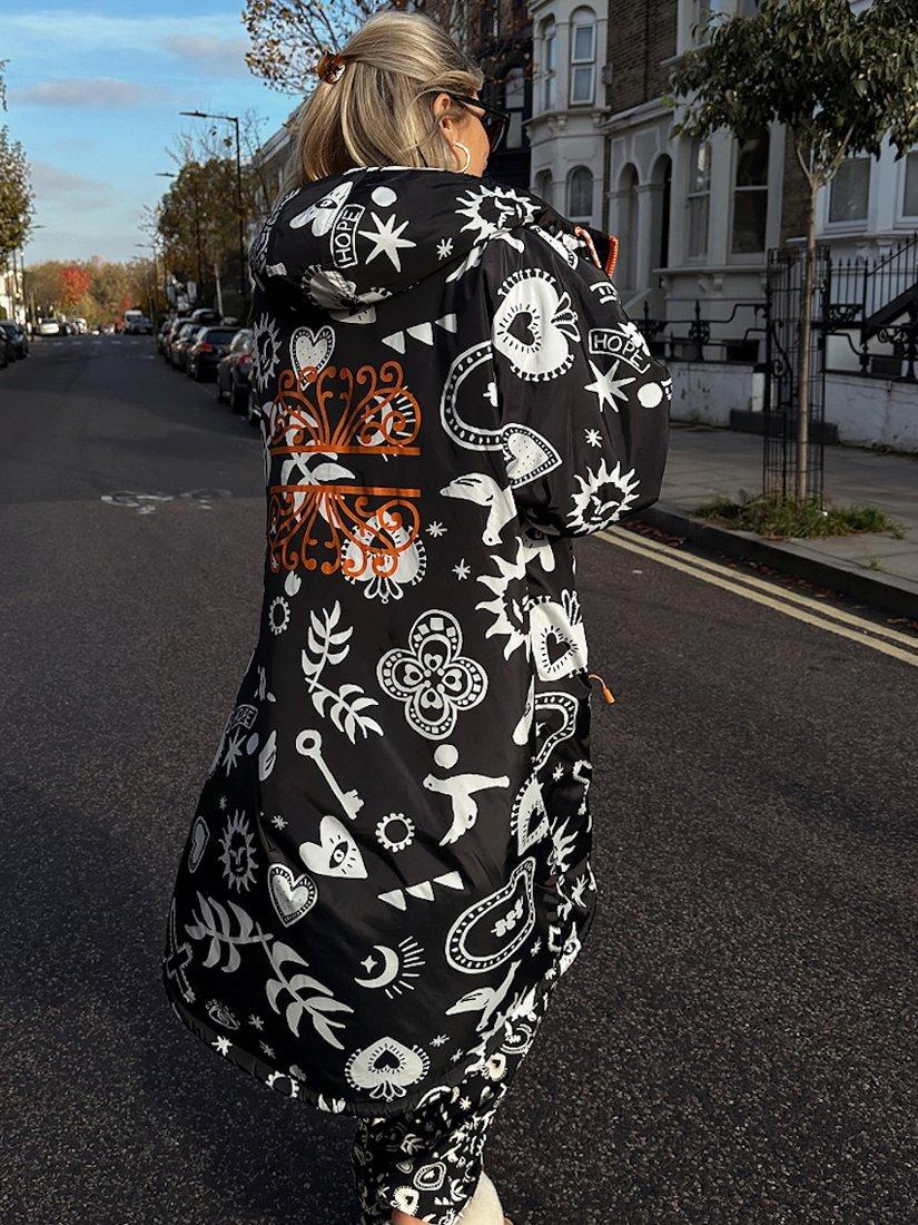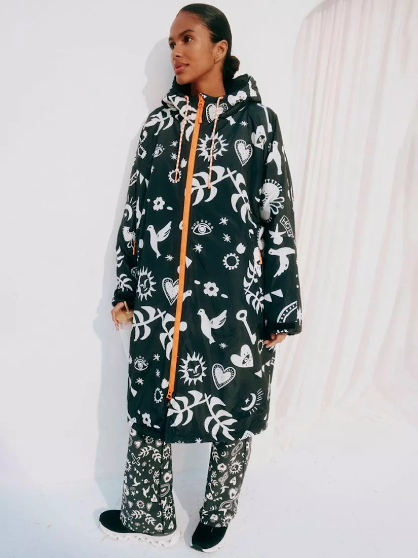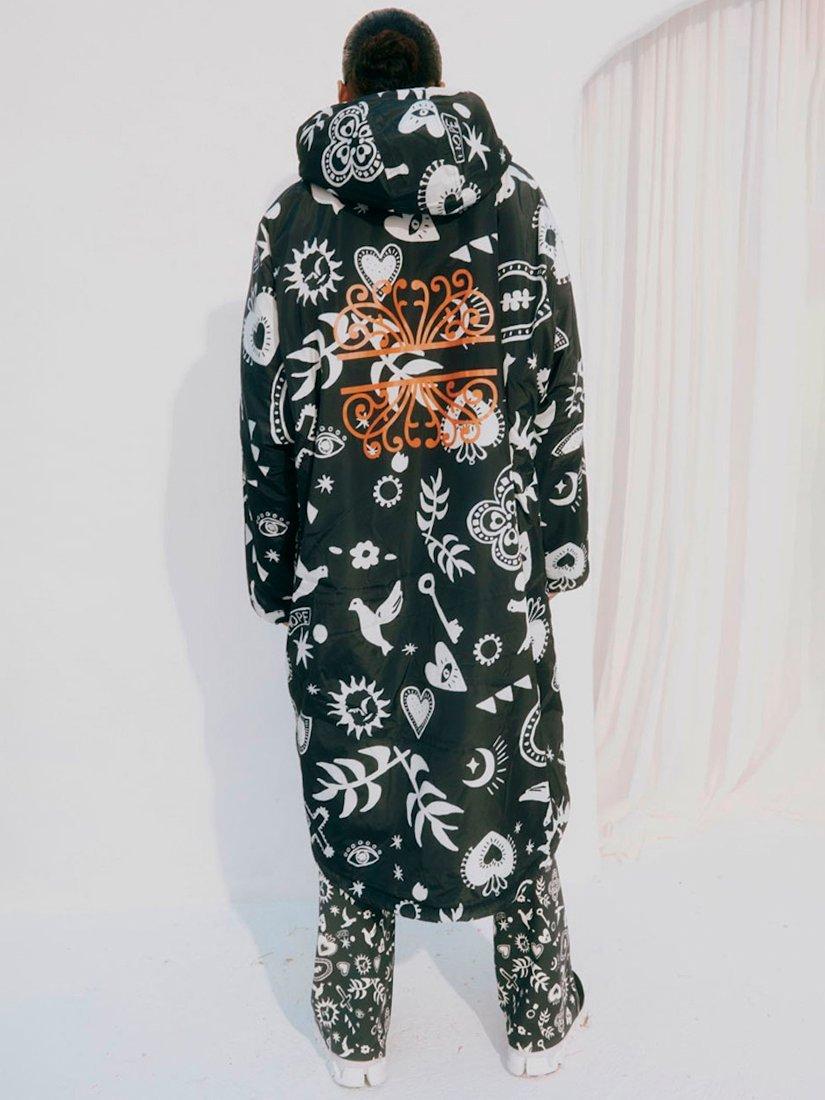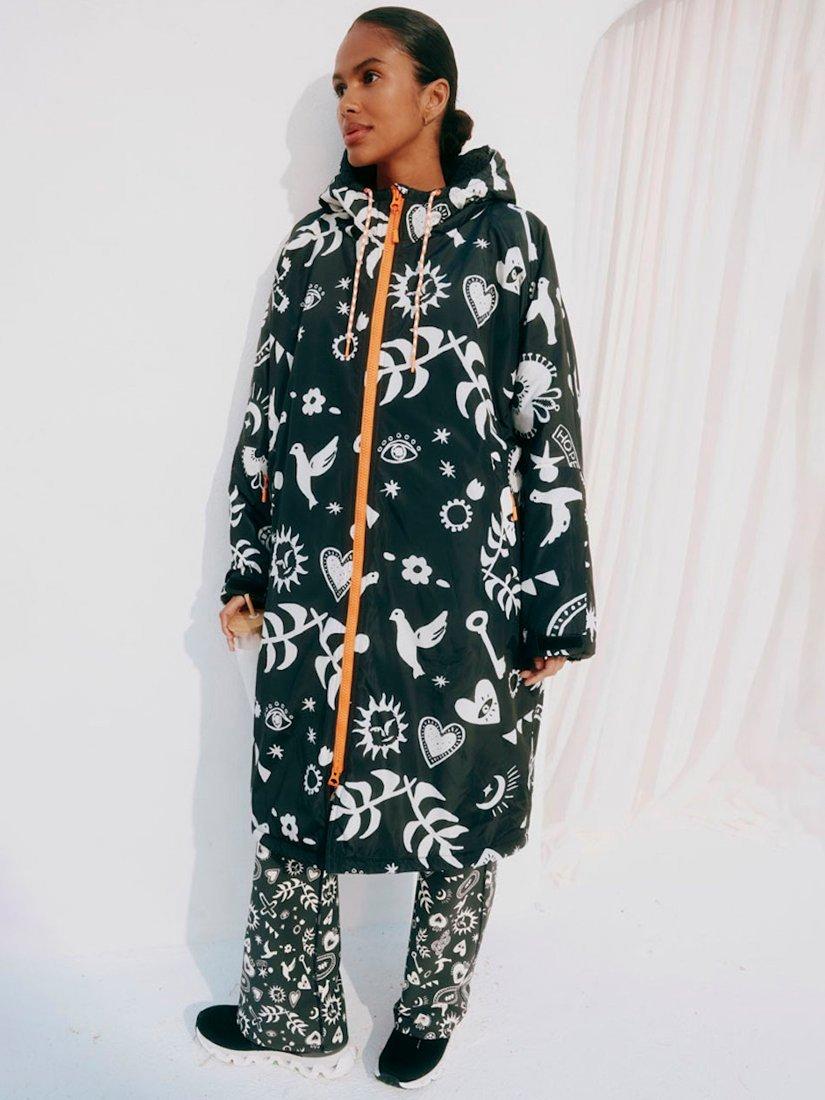 In a waterproof fabric that is lined with cosy fleece fabric and printed with an iconic NFD motif.