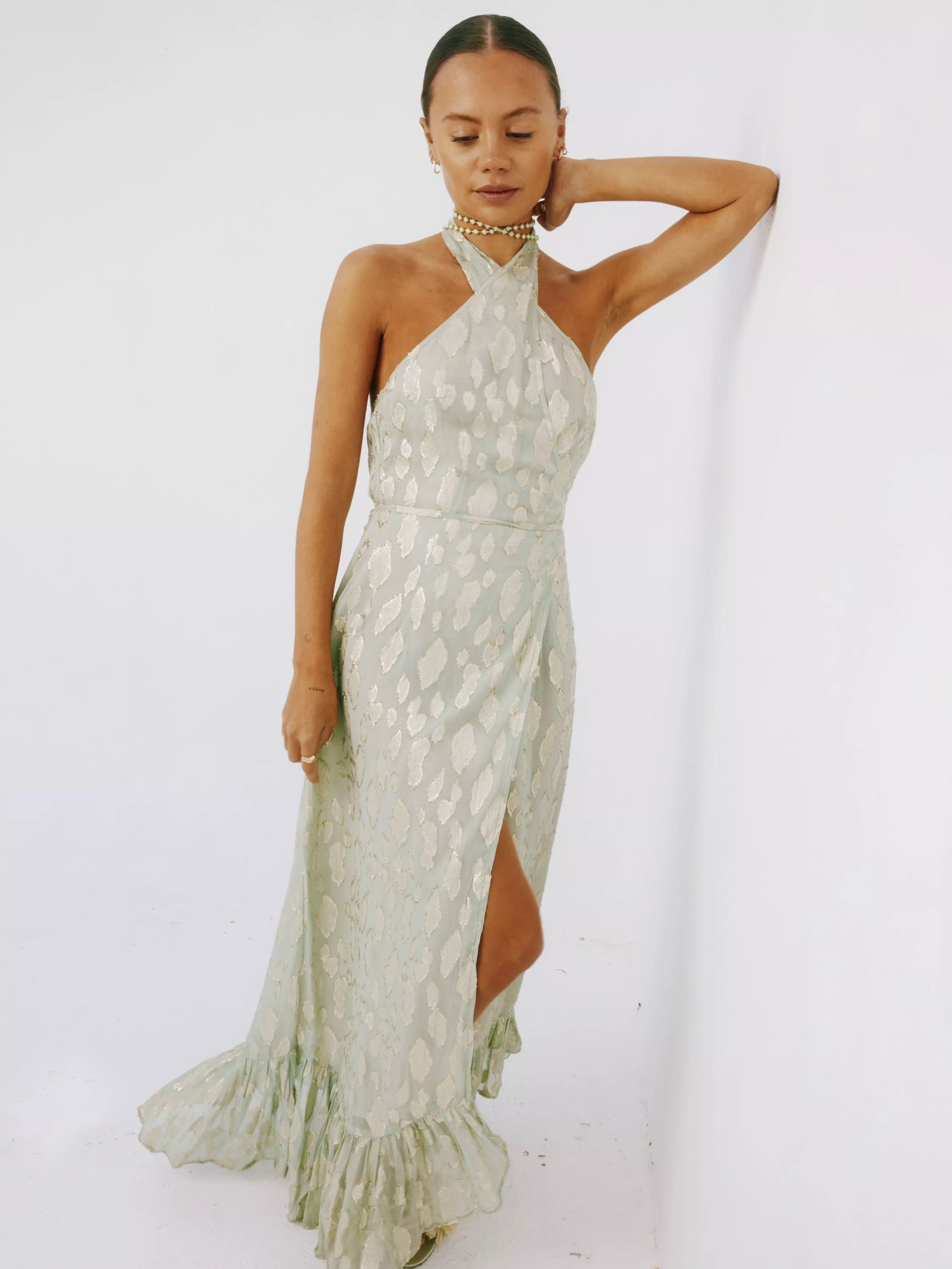 Never Fully DressedJacquard Halterneck Maxi Dress, Sage