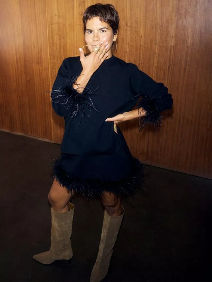 Never Fully DressedJamie Feather Trim Jumper, Black