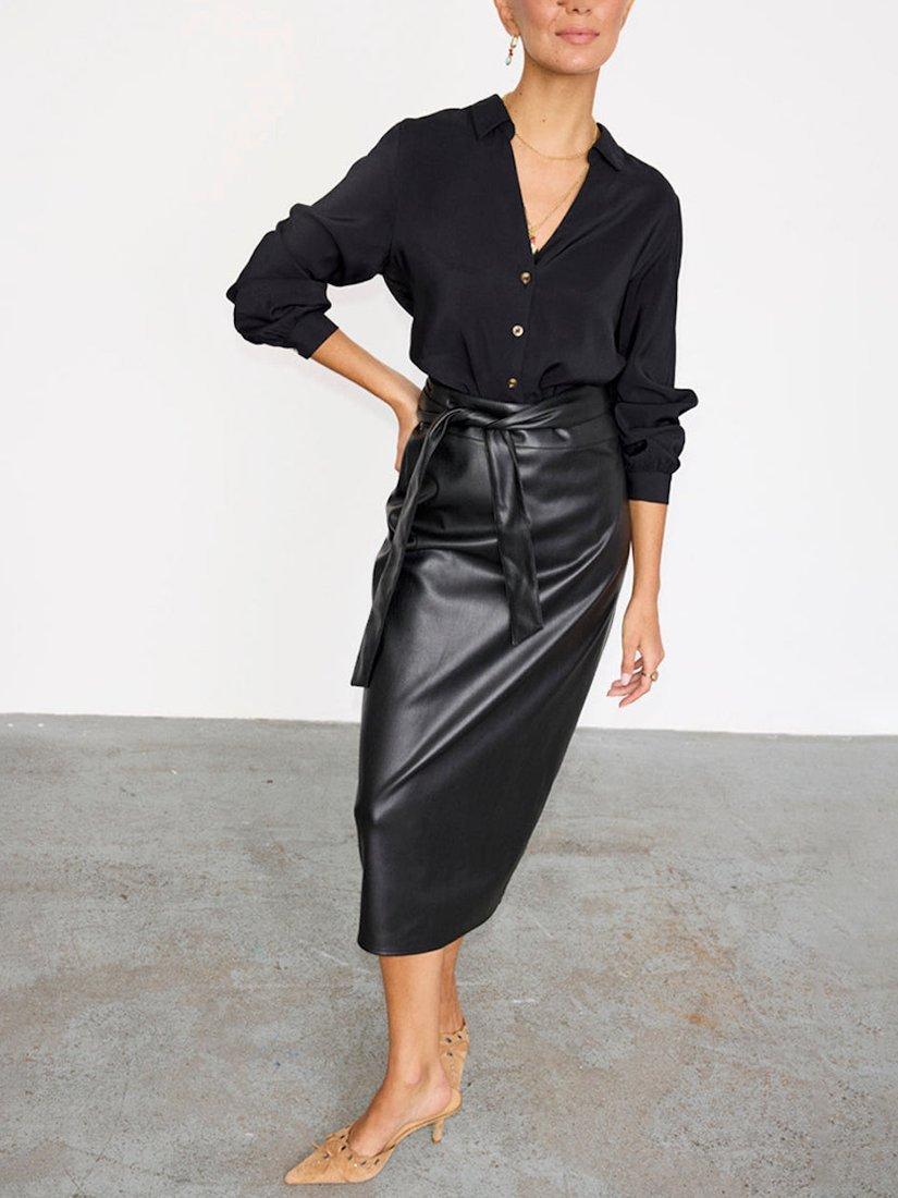 Our classic Jaspre style in a luxe vegan leather. This skirt is the epitome of feel good dressing! In a sultry colourway, style with a shirt, t-shirt or a cardigan for the perfect day to night look.