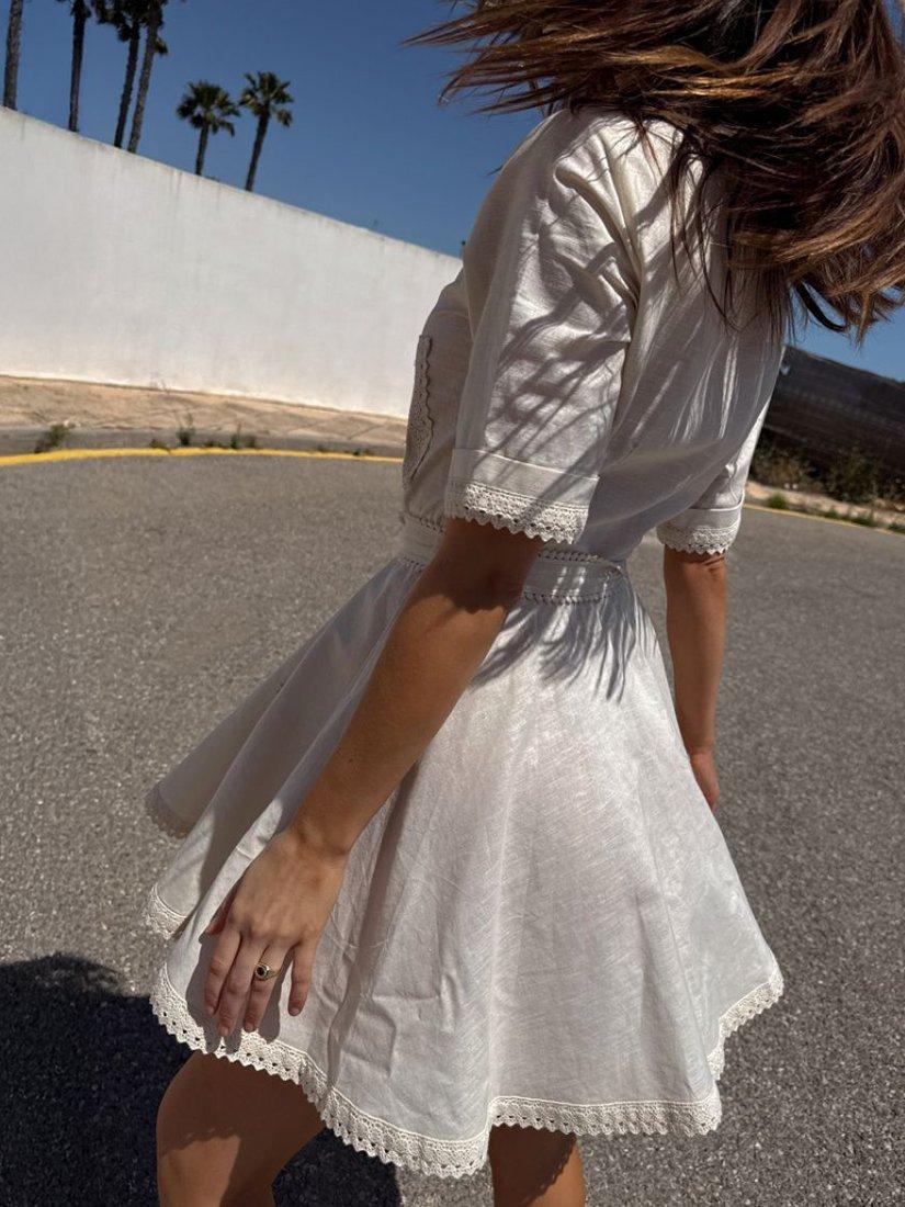 Cut from a crisp cotton linen, with the Isla print with intricate, hand-painted motifs that transport you to the sunshine and serenity of the Sóller, a quaint town NFD discovered through the heart of the Serra de Tramuntana Mountain. With a tie waist fastening to accentuate your silhouette, it's perfect for the changing seasons.