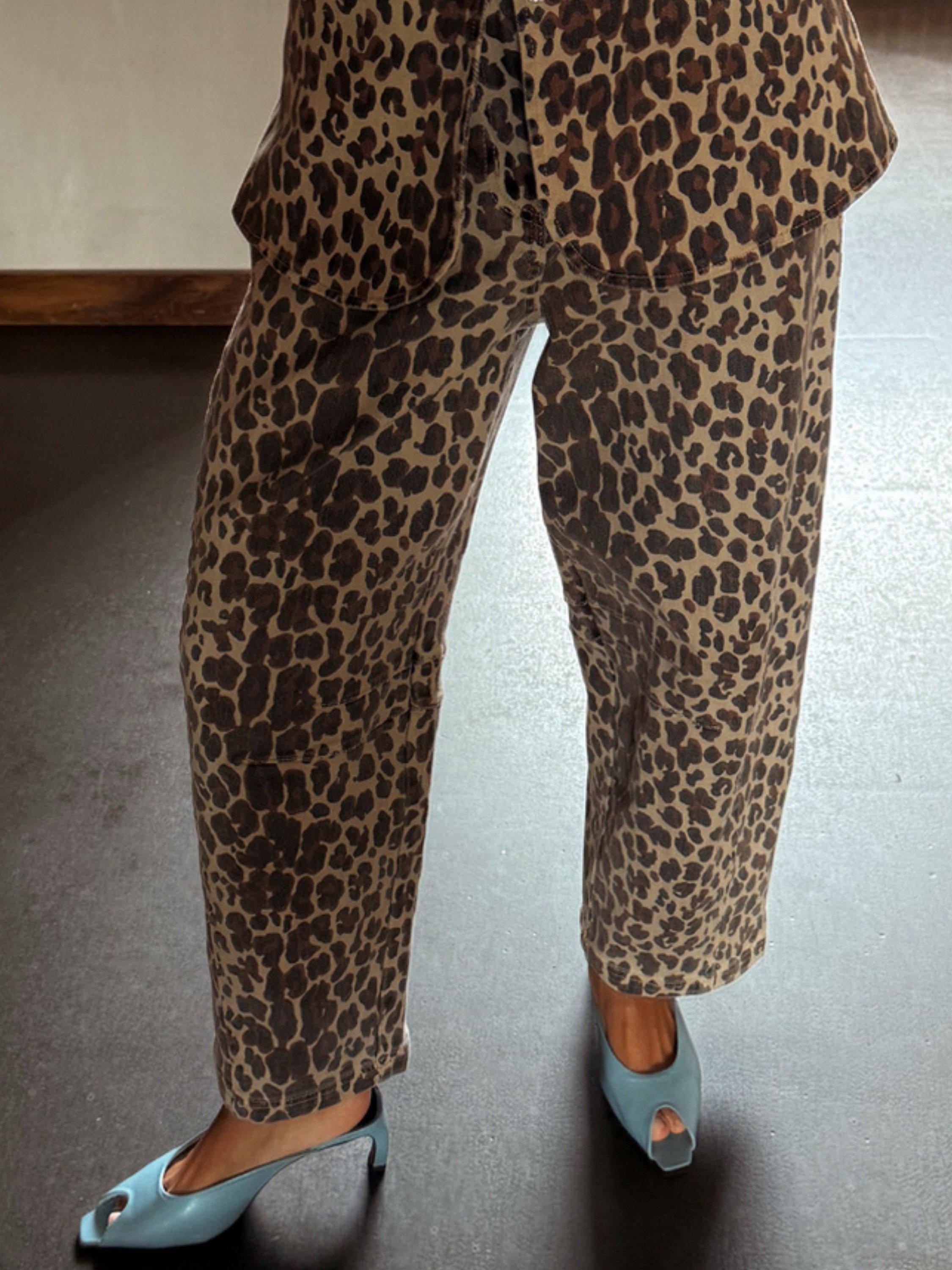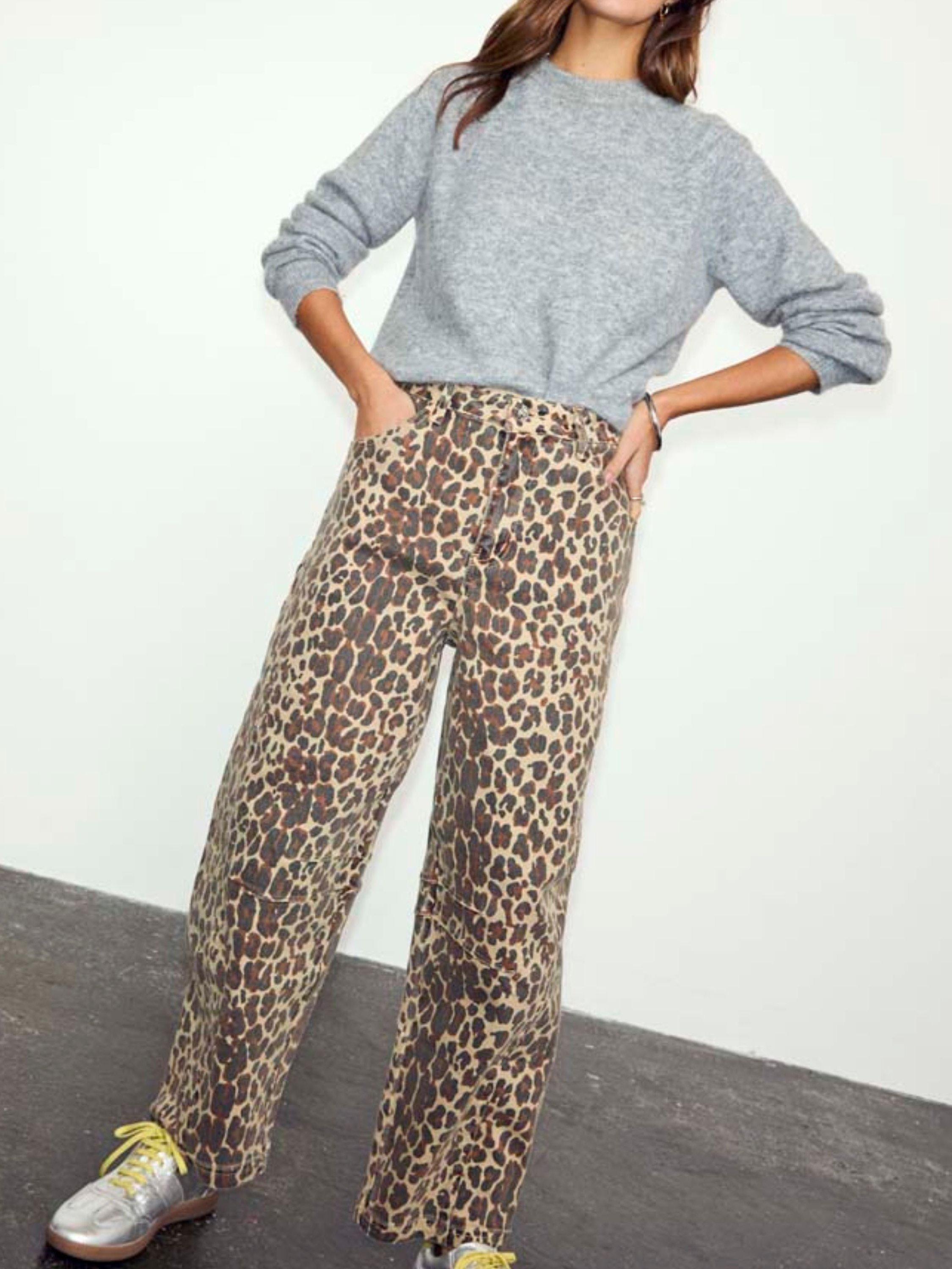 The barrel leg on these jeans gives you that chic, relaxed shape while the Never Fully Dressed leopard print adds just the right amount of drama. Super comfy with a structured fit that still feels effortless, style them with a cardigan for the colder seasons or with a simple tee and heels. They go with everything! Finished with an NFD logo on the back pocket.