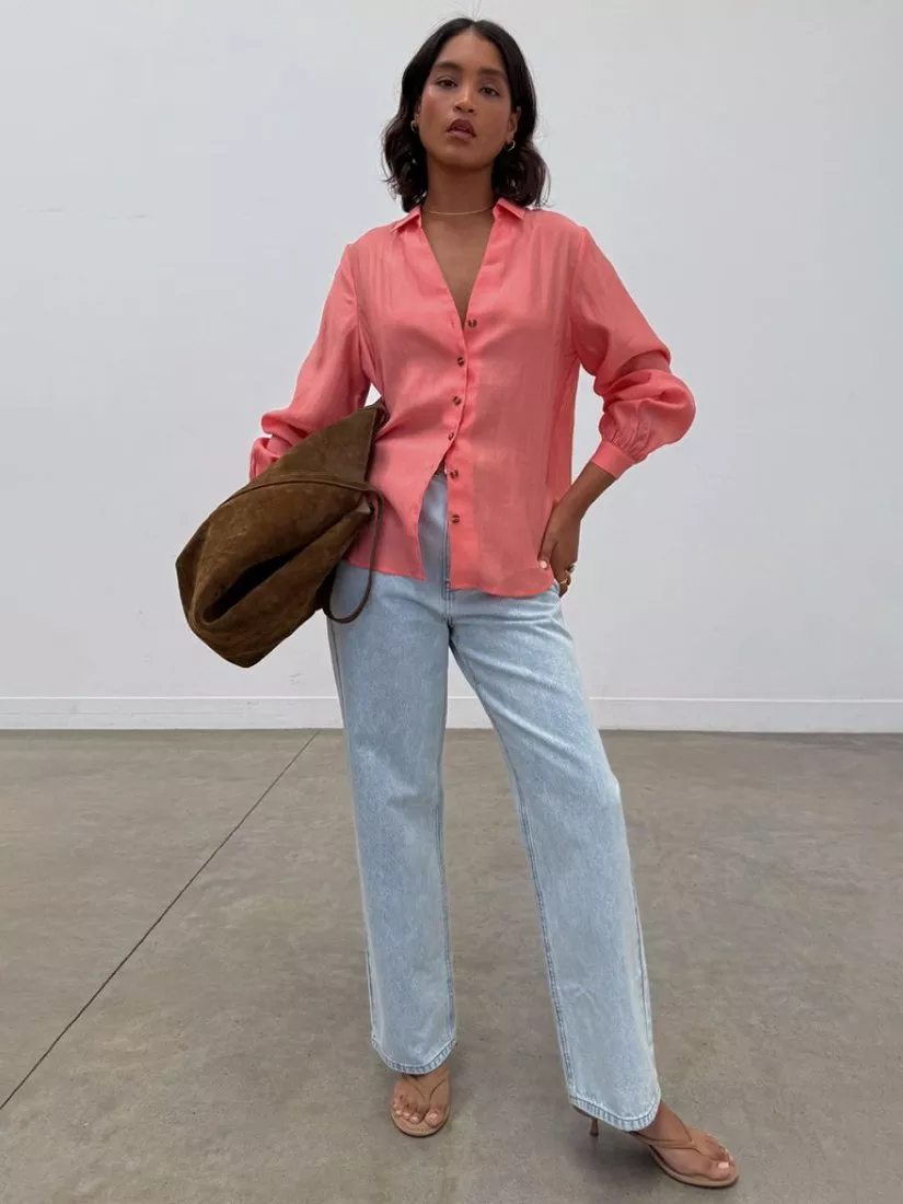 Never Fully DressedMiley Blouson Sleeve Shirt, Coral