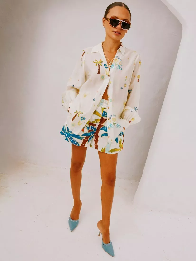 Our best-selling miley shirt in our new charm print featuring some of our iconic motifs.