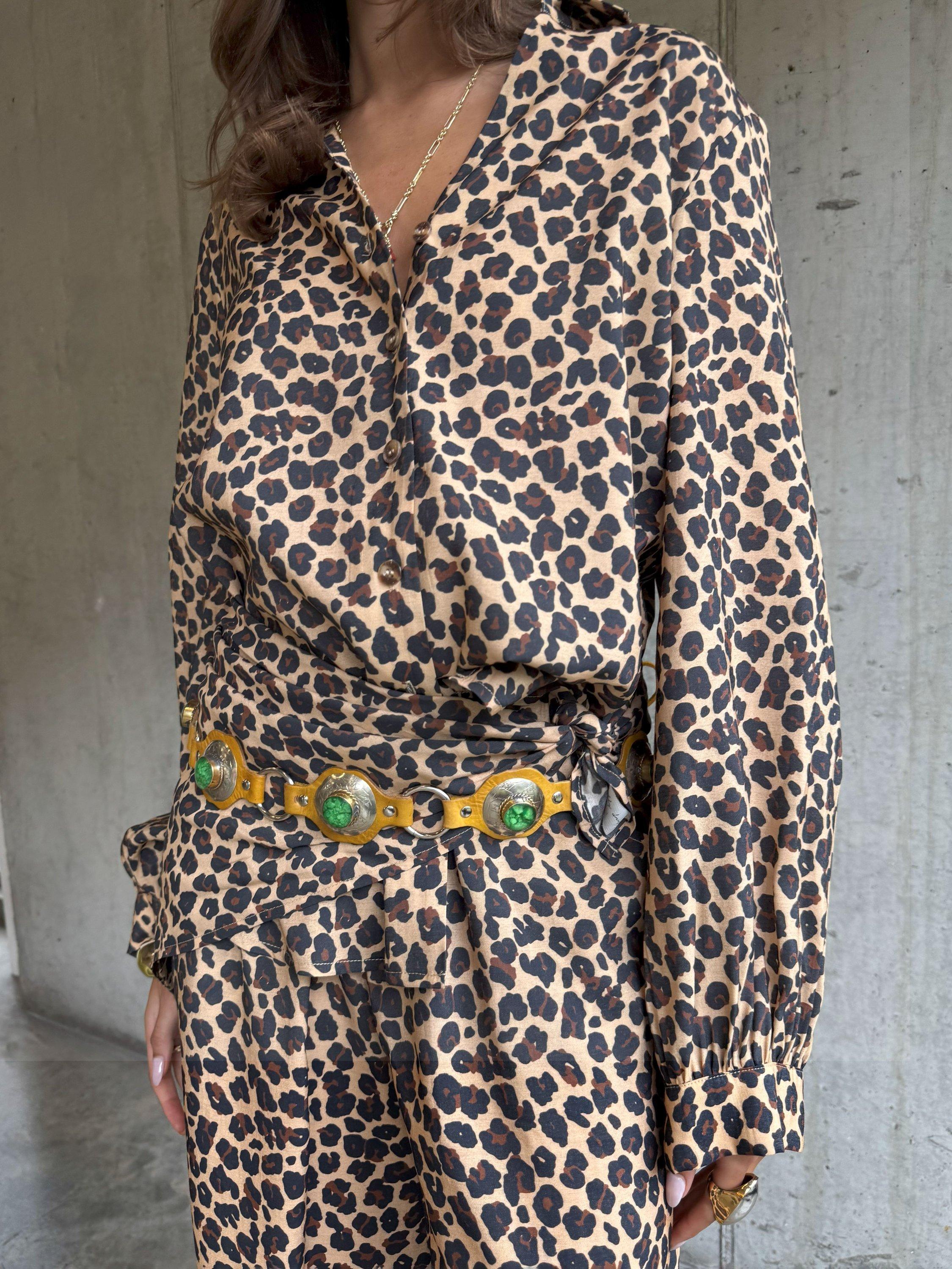 Never Fully DressedMiley Leopard Print Shirt, Beige