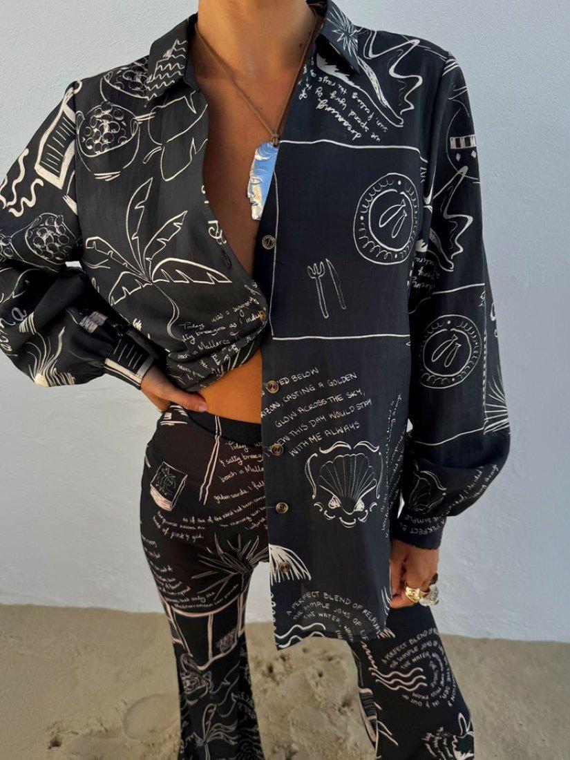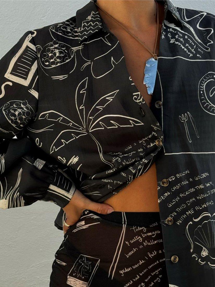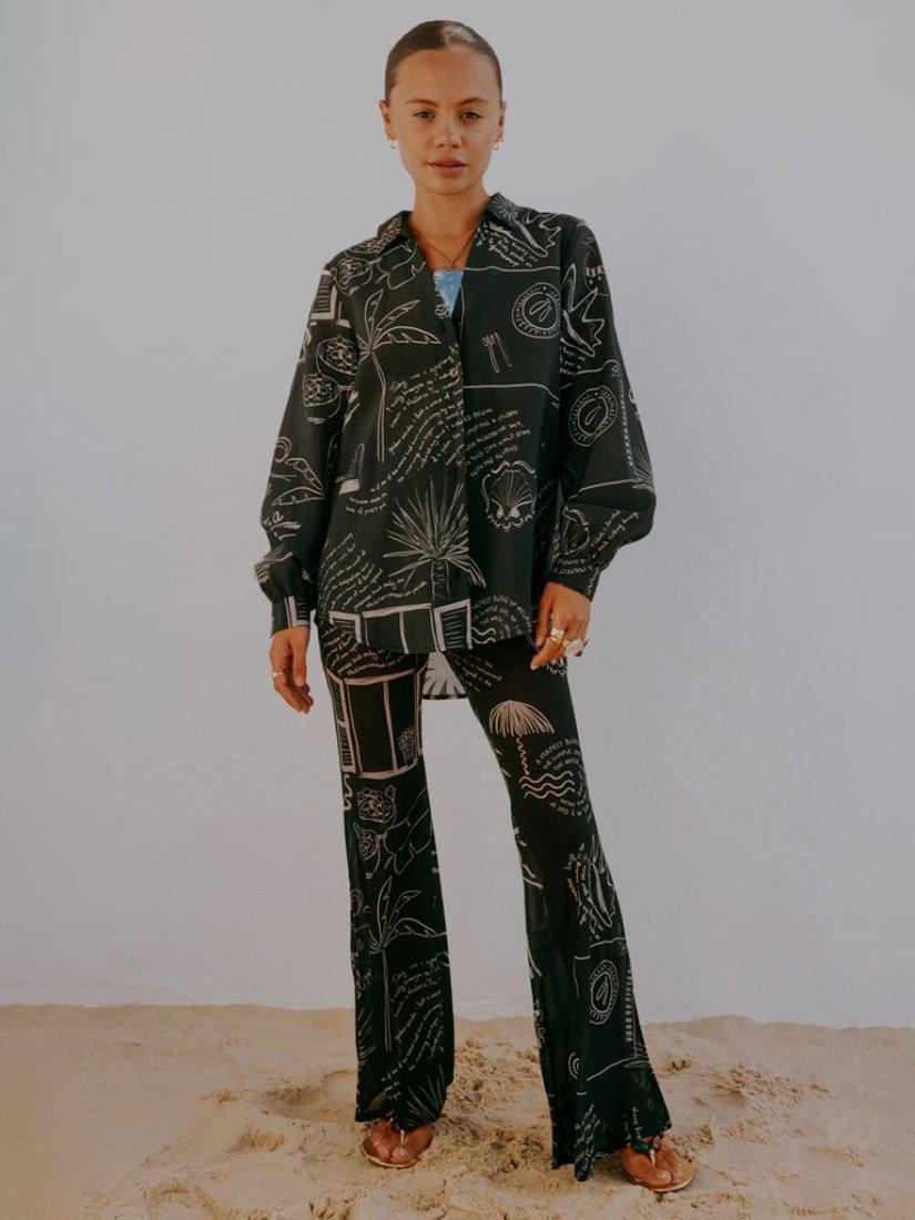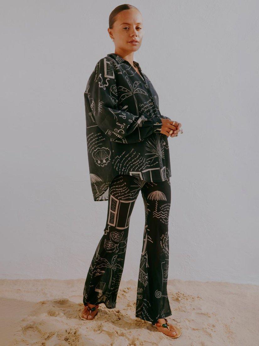 Elevating your everyday, this oversized shirt from Never Fully Dressed features a monochrome palma print. Designed with a crisp collar neckline and long cuffed sleeves, it's made from a beautifully draping and lightweight fabric.