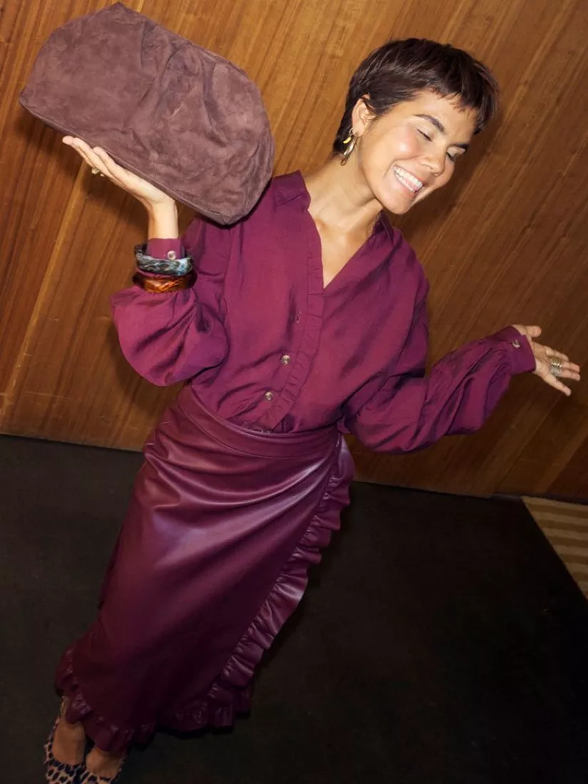 Never Fully DressedMiley Ruffle Shirt, Black, Wine