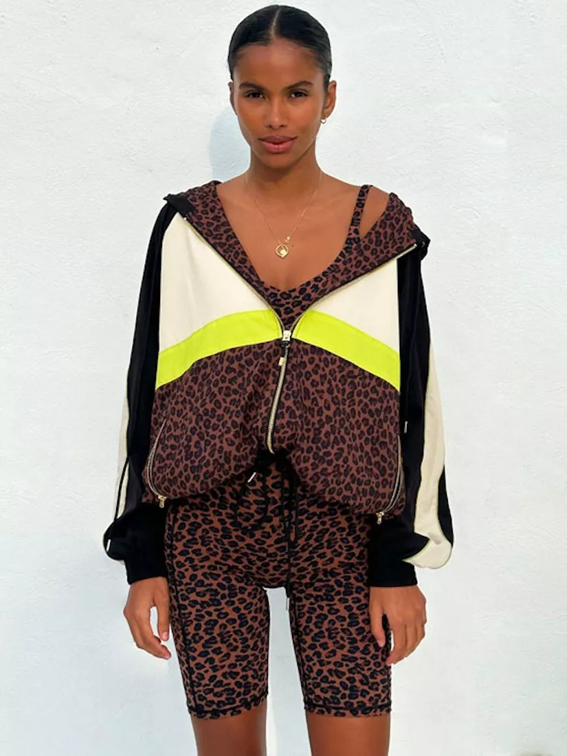 Never Fully DressedMixed Leopard Print Windbreaker Jacket, Multi
