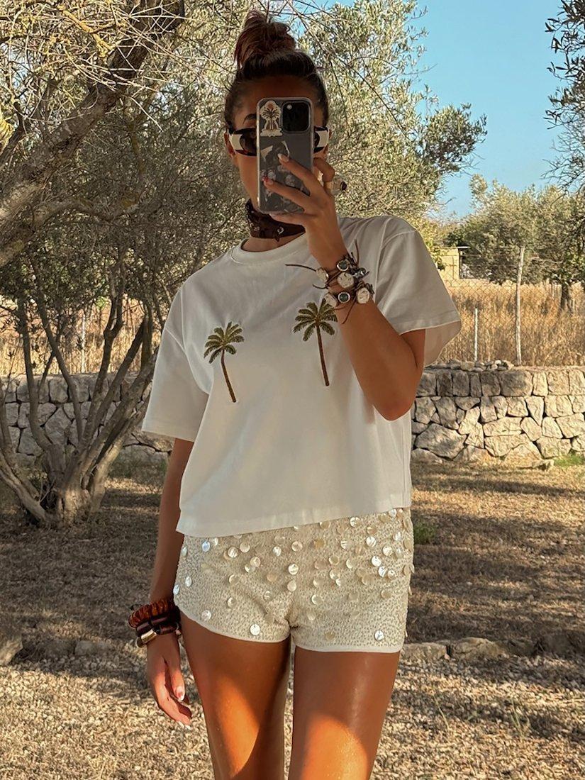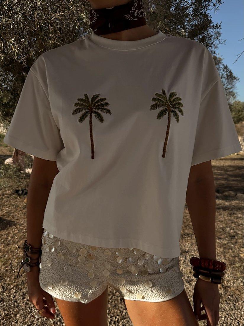 A playful twist on the classic tee with fun palm trees.