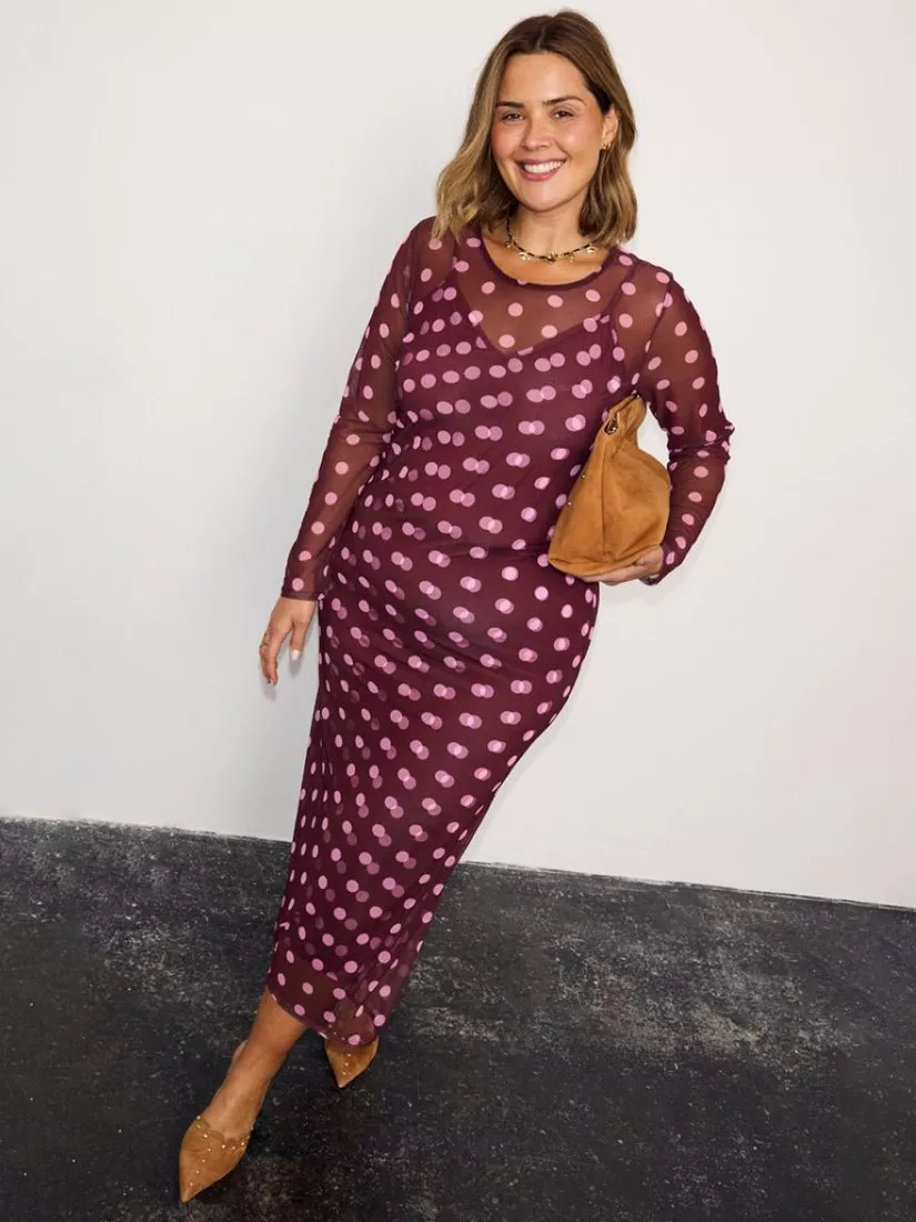 Proof a straight silhouette is always flattering. This long sleeved midi dress from Never Fully Dressed has a simple round neckline and punchy polka dots.