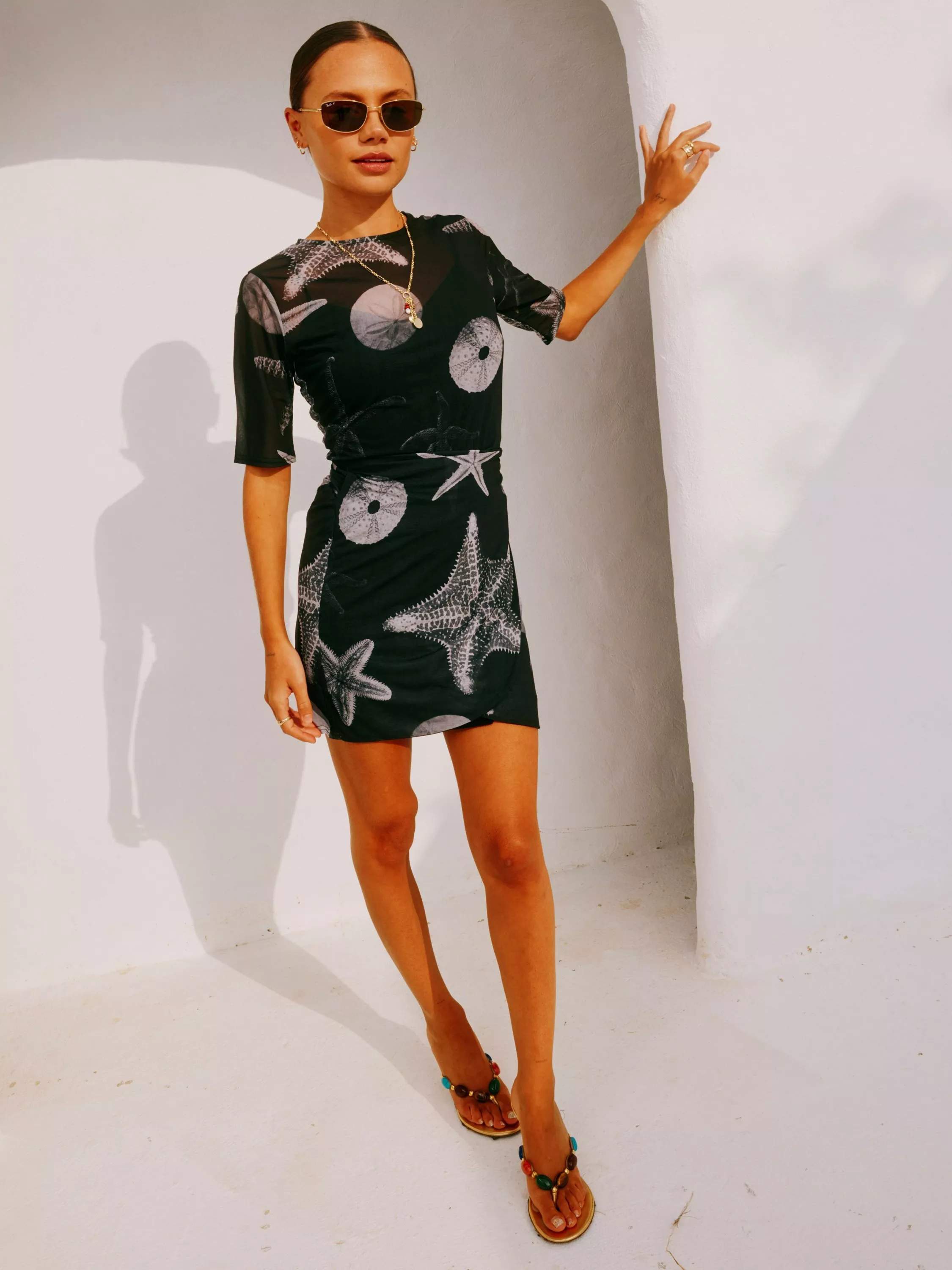 In signature mesh fabric, it's perfect for keeping you cool in the vacation sunshine. The gorgeous shell print, inspired by NFD's adventures to the balearic islands, truly represents the combination of Caetana's eclectic style and our feel-good prints.