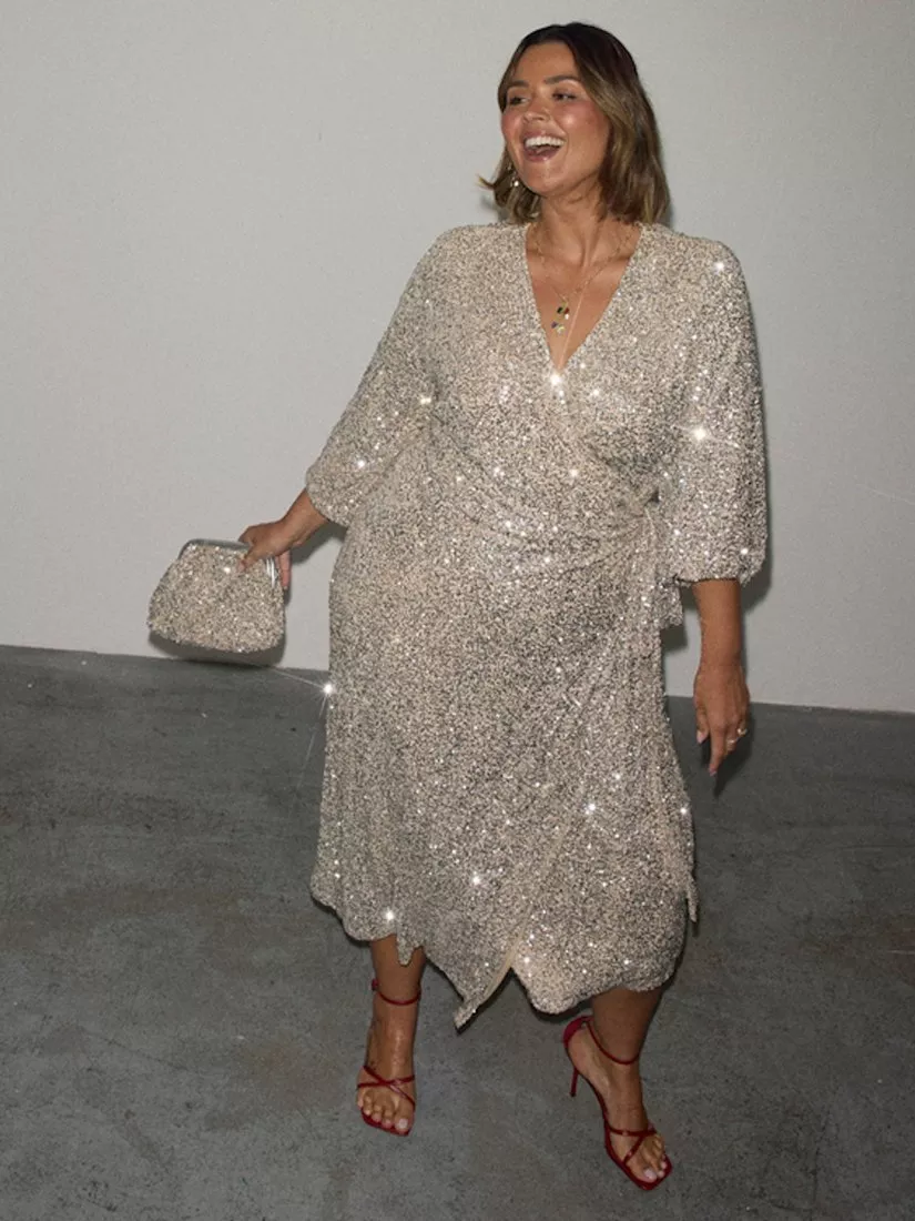 Lathered in sparkly sequins to give it an elegantly dressy feel. A wonderfully versatile and classic piece.