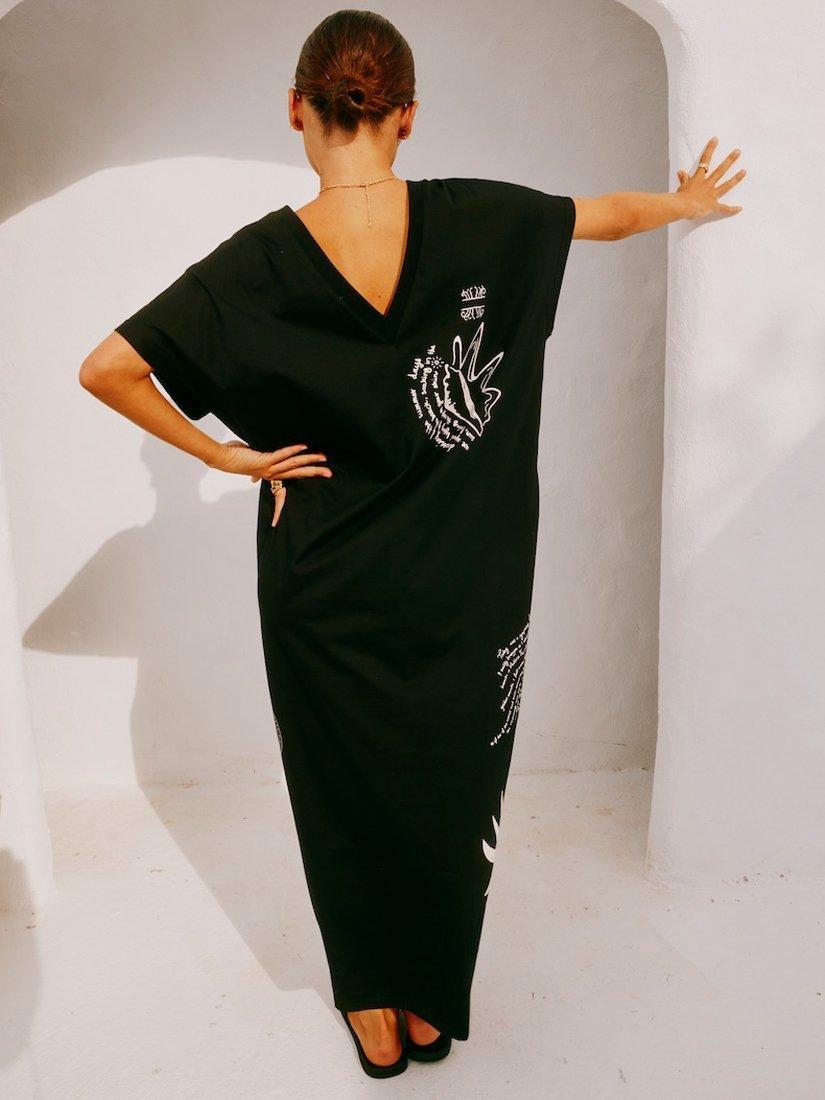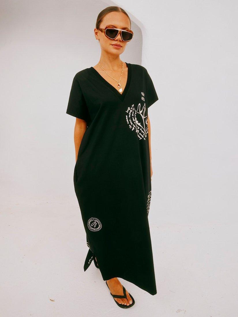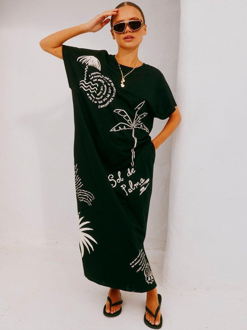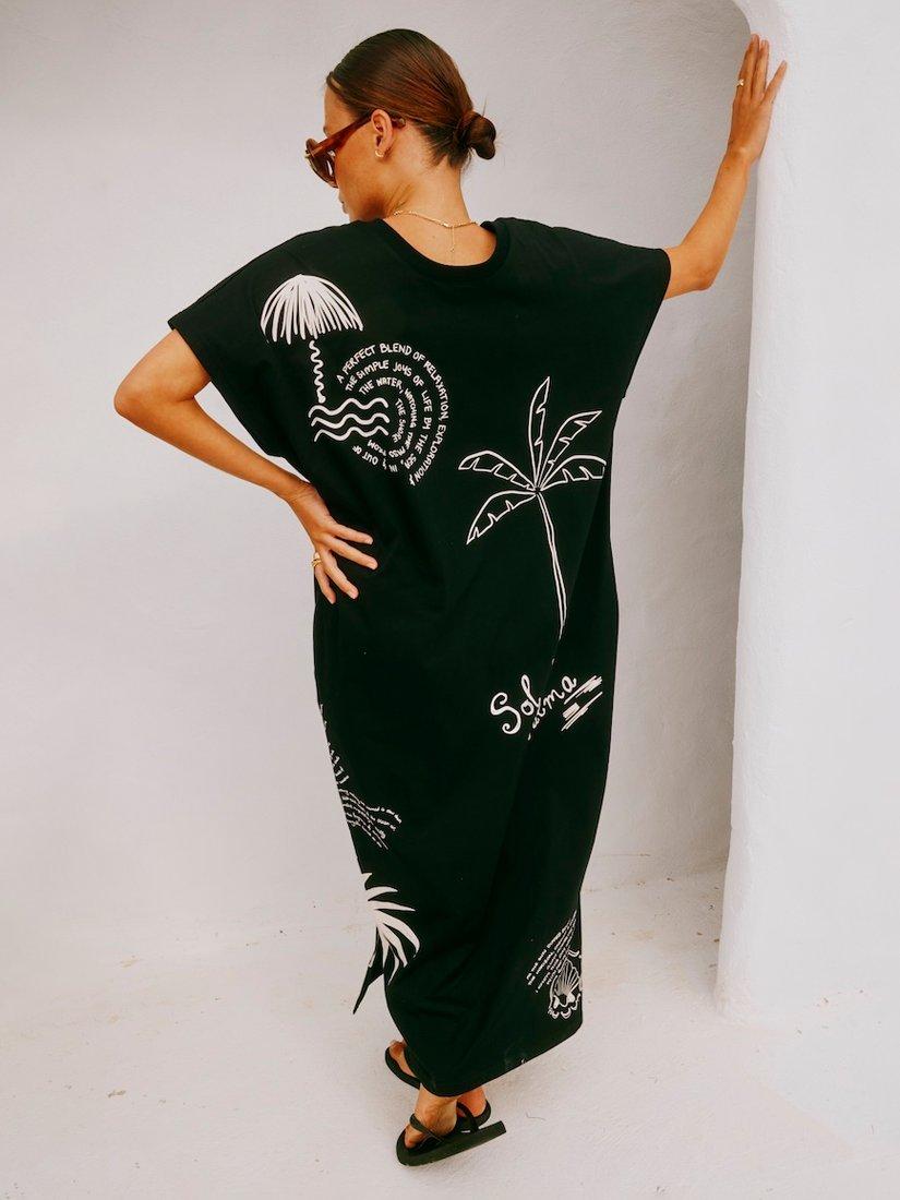 Mastering laid-back design, this oversized t-shirt maxi dress from Never Fully Dressed is rendered from pure cotton. With a simple round neck and short sleeves, it features a summery Sol de Palma illustration in a contrast white hue.