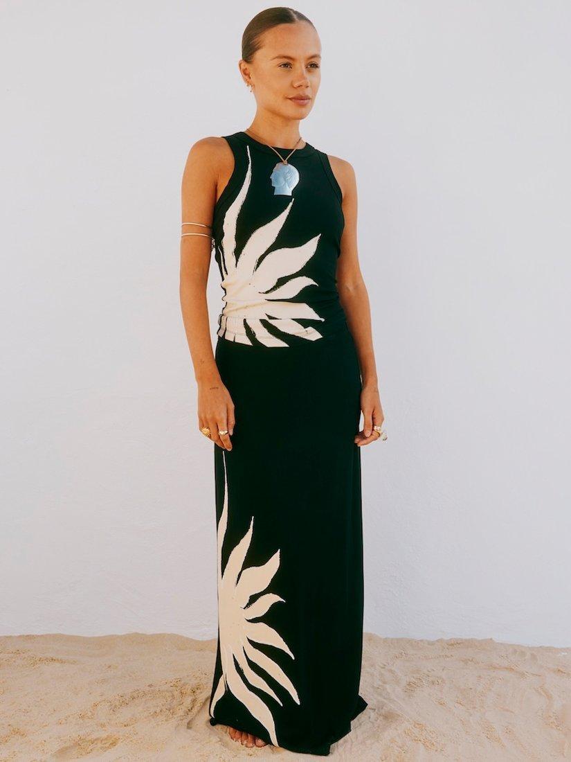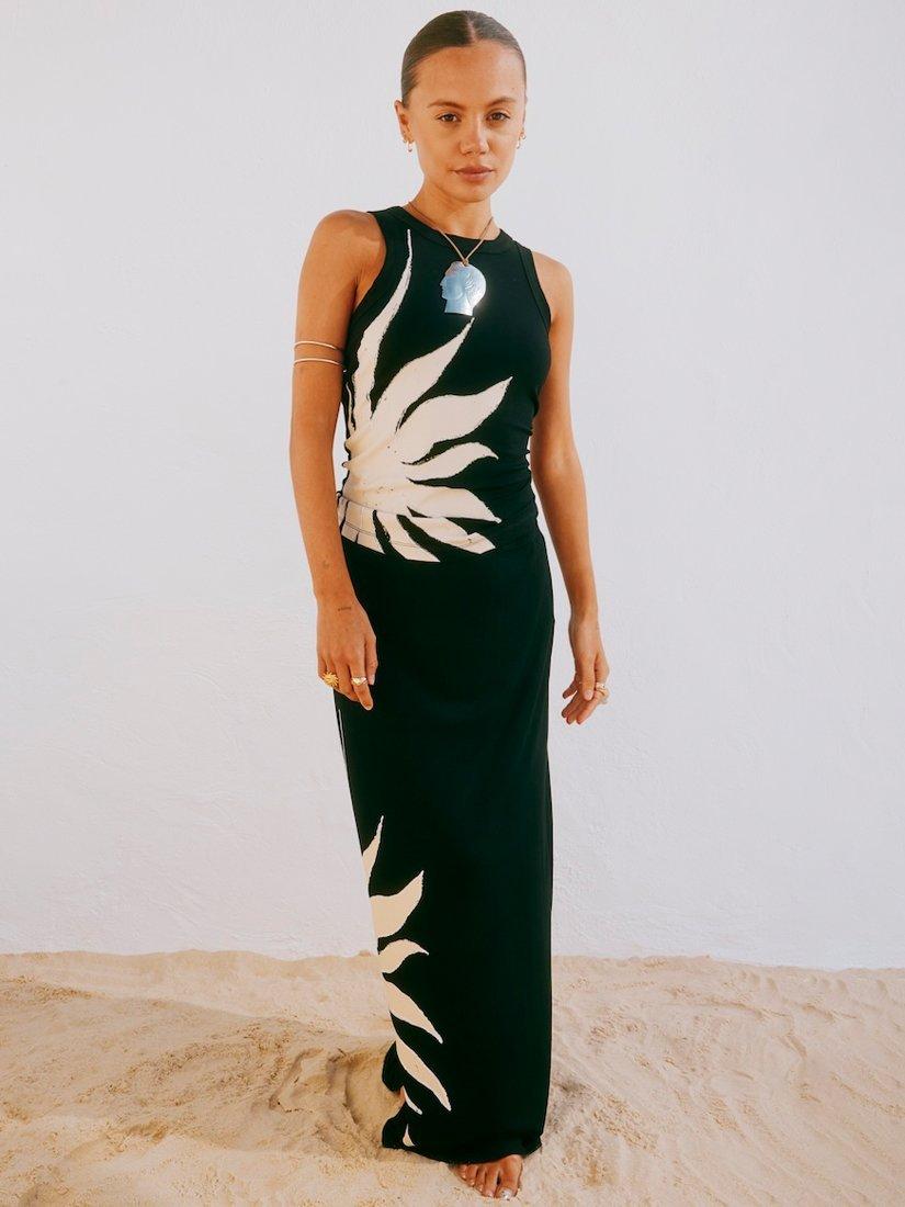 This top is perfect for strolling along the beach, enjoying the holiday sun! With a gorgeous hand painted sun print, created by our in-house design team.