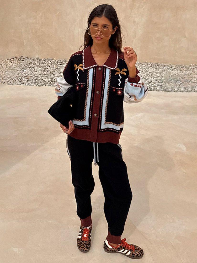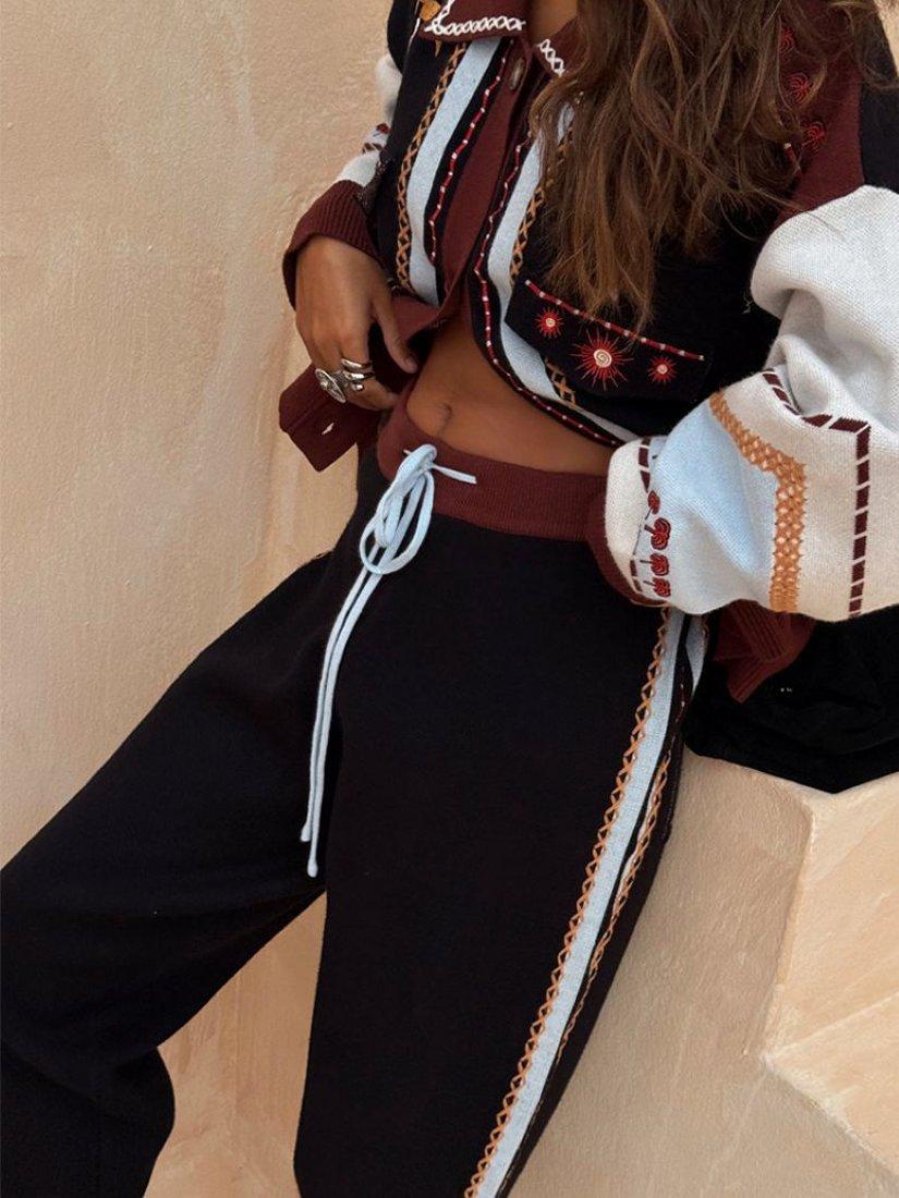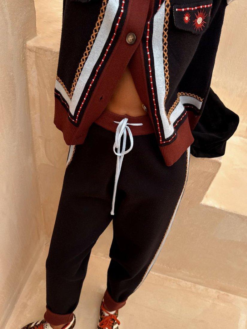 These joggers scream Never Fully Dressed, from the intricate criss cross stitch detailing throughout to the iconic palm and sun embroidered motif.