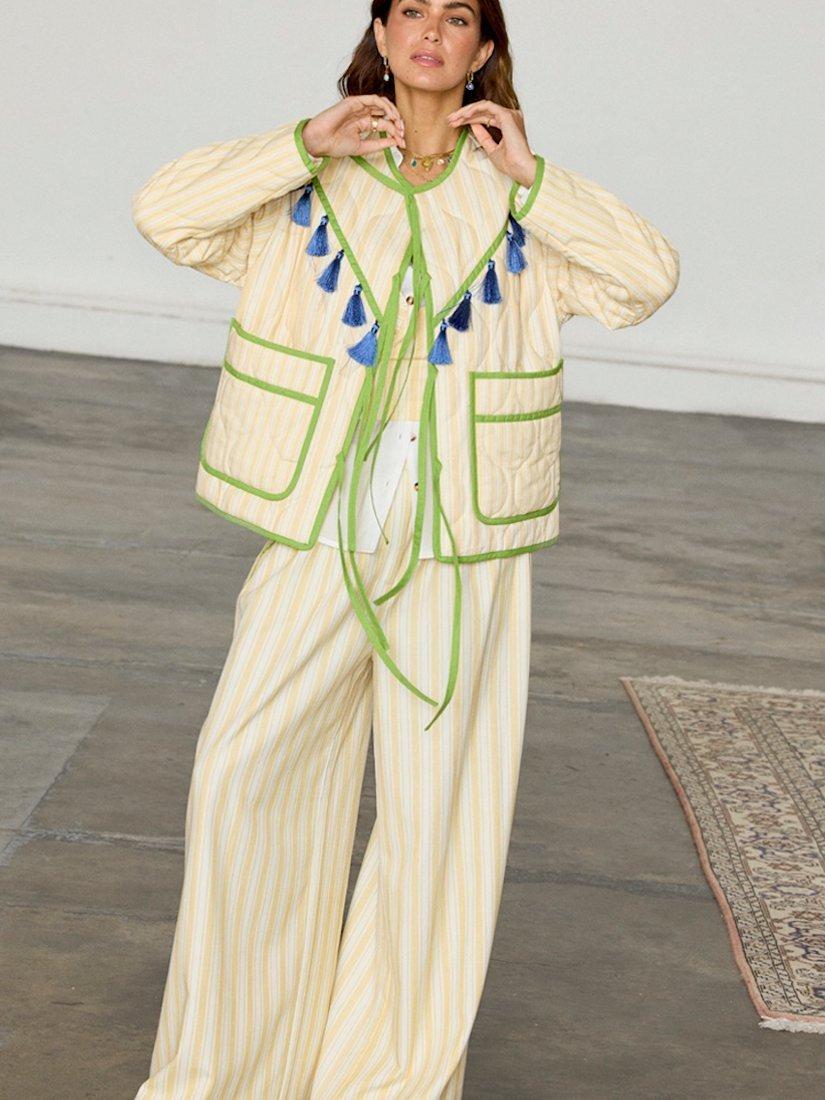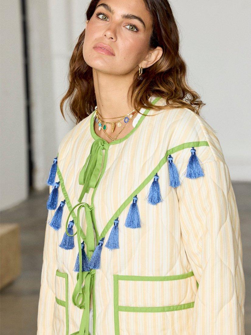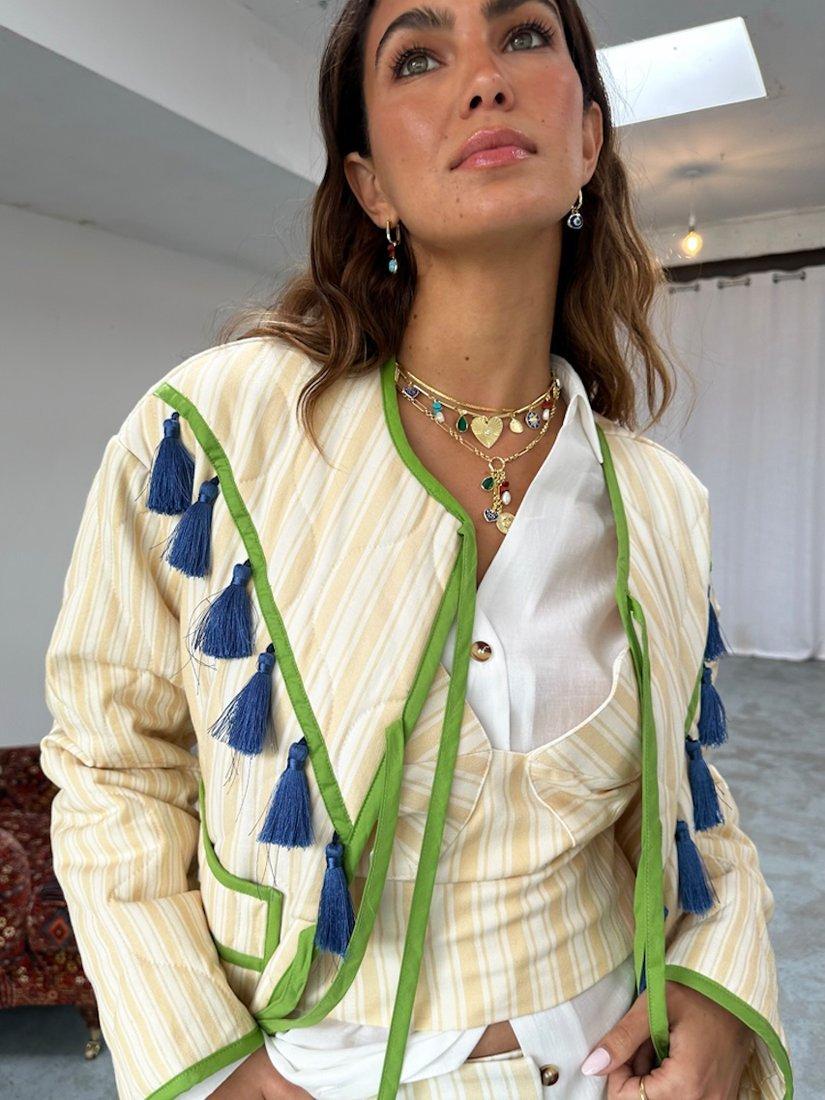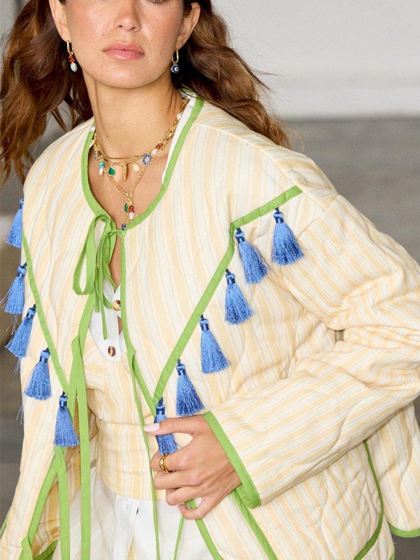Never Fully DressedStripe Tassel Quilted Jacket, Cream