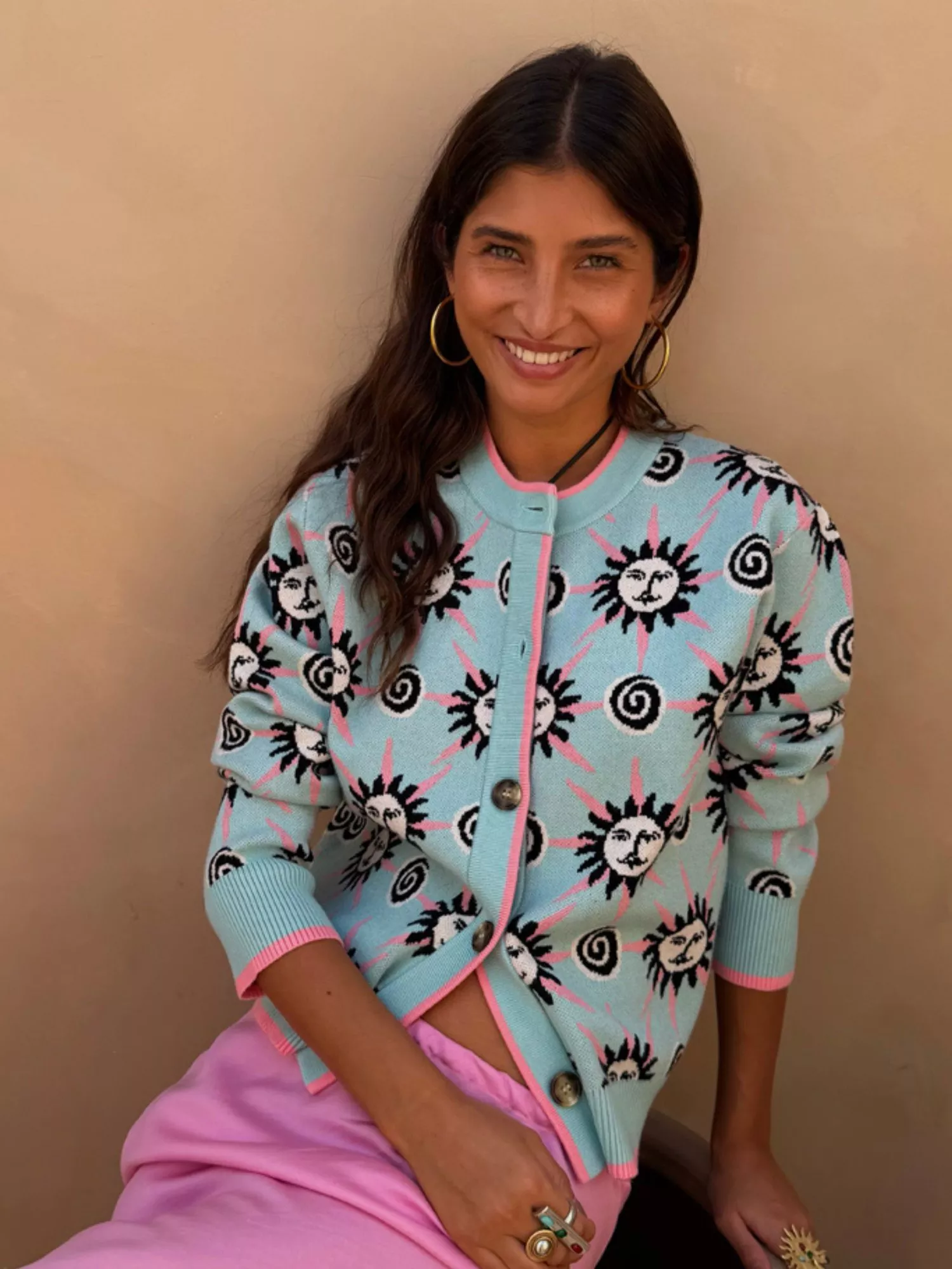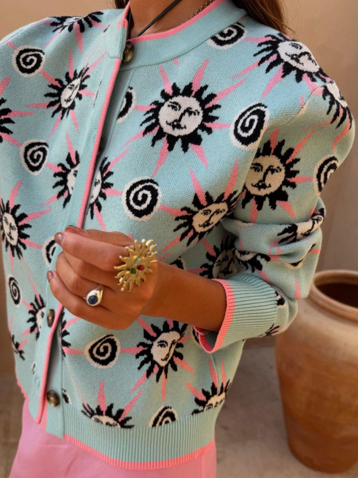 Make your every day a statement with this regular-fit printed cardigan. Designed for a flattering fit, it keeps you comfortable all day with its soft viscose blend and playful detailing. Perfect for layering and sparking conversation.