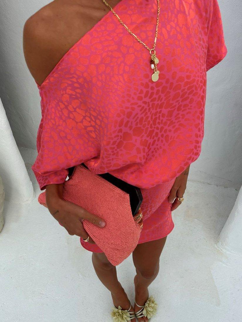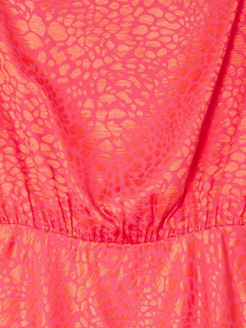 Cloaked in an animal jacquard design with added sheen, this mini dress from Never Fully Dressed is topped with an asymmetric neck, short sleeves and a mini flippy hem.