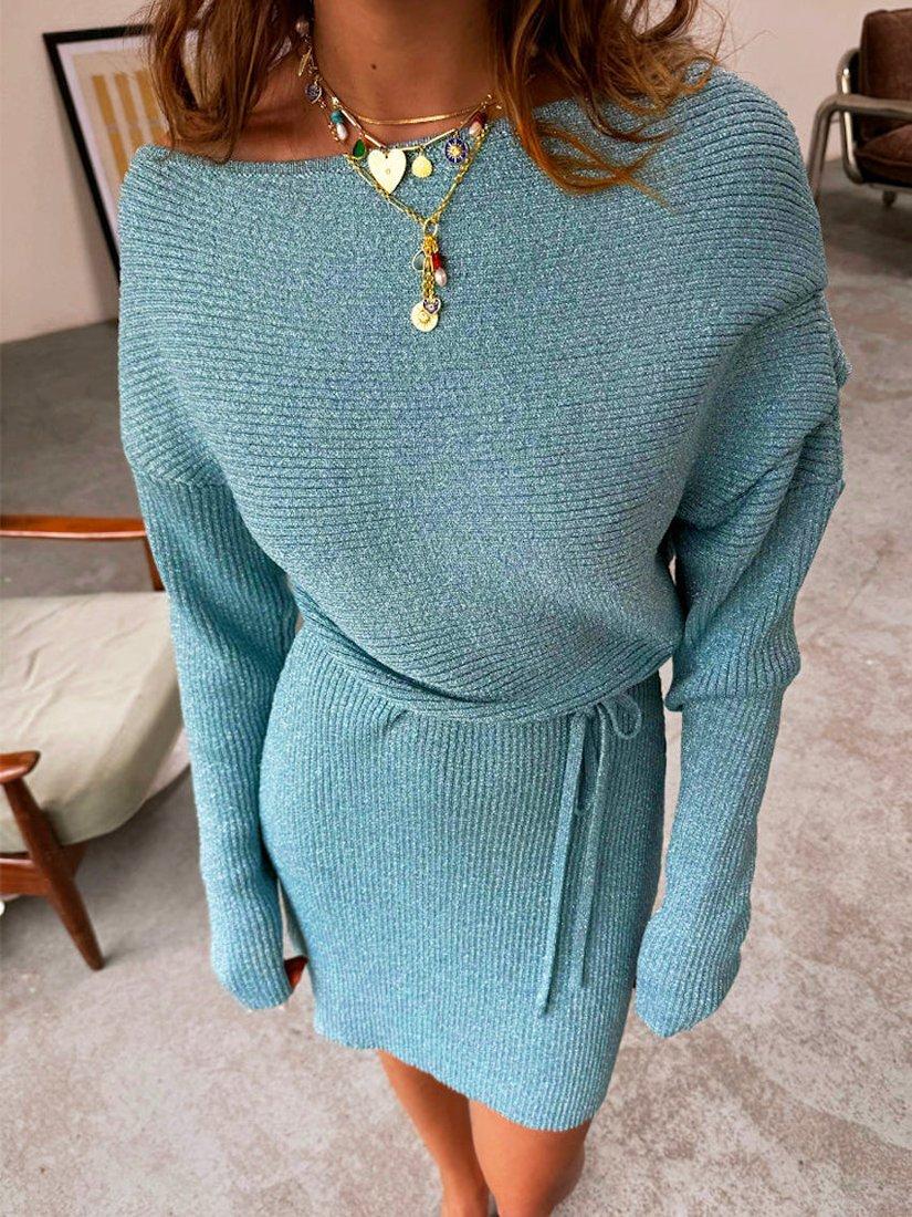A really weighty soft stretch knit,wWith long sleeves and a wrap overlay that adds dimension.