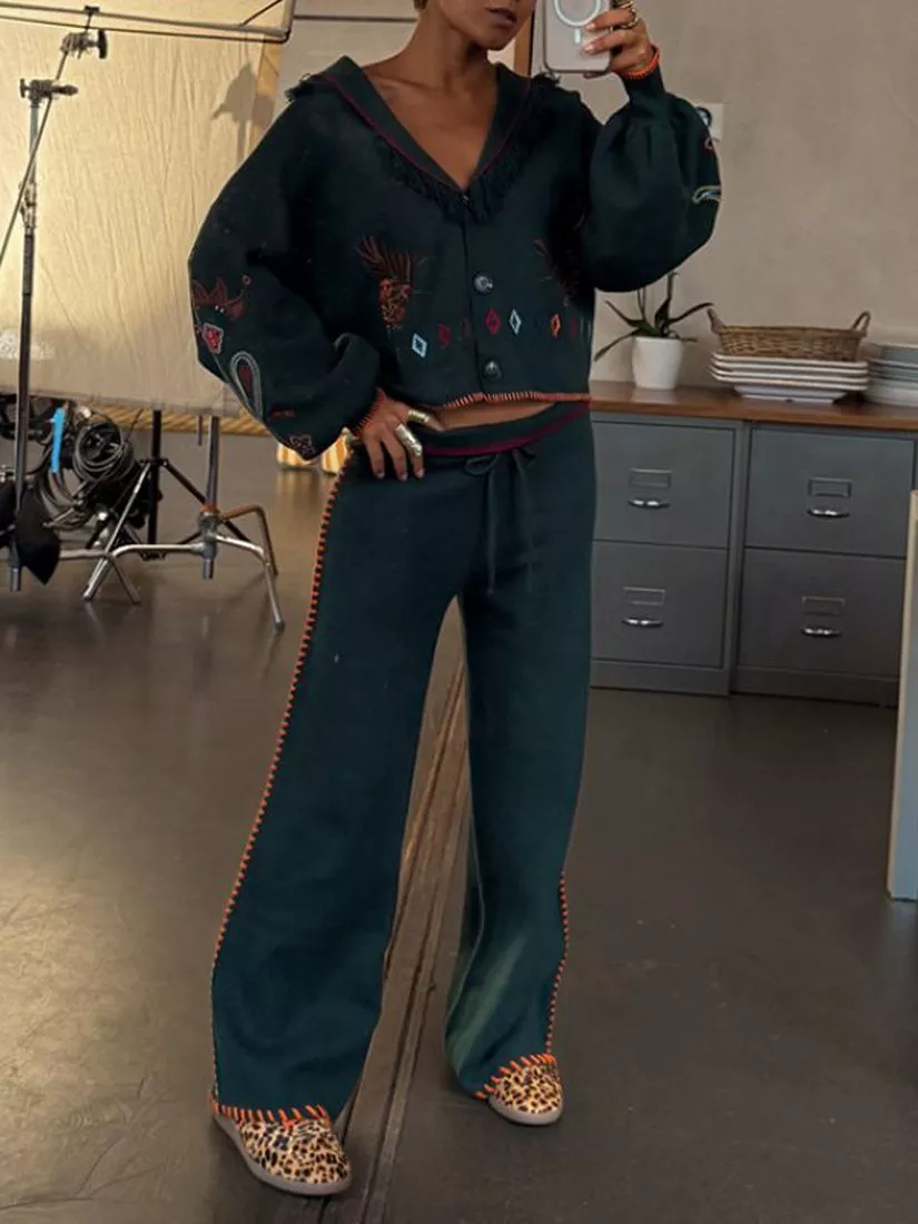 Never Fully DressedWide Leg Trousers, Green Bottle
