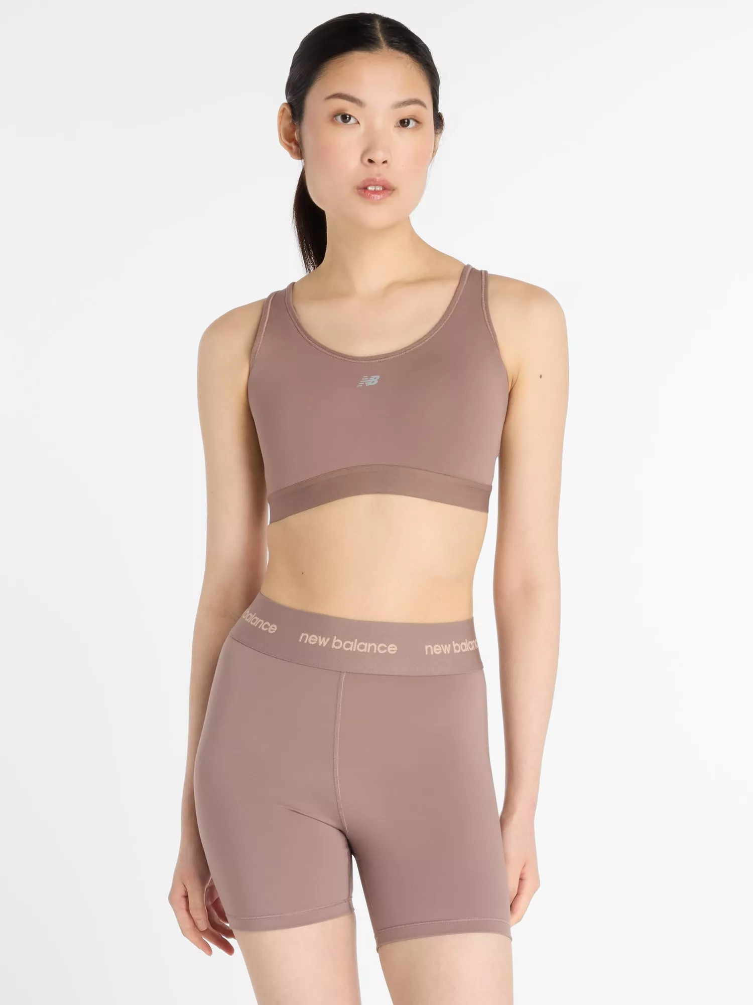 The New Balance Essential Run Bra pairs premium materials with engineered performance features, for comfort and full support during high-intensity activities like running.