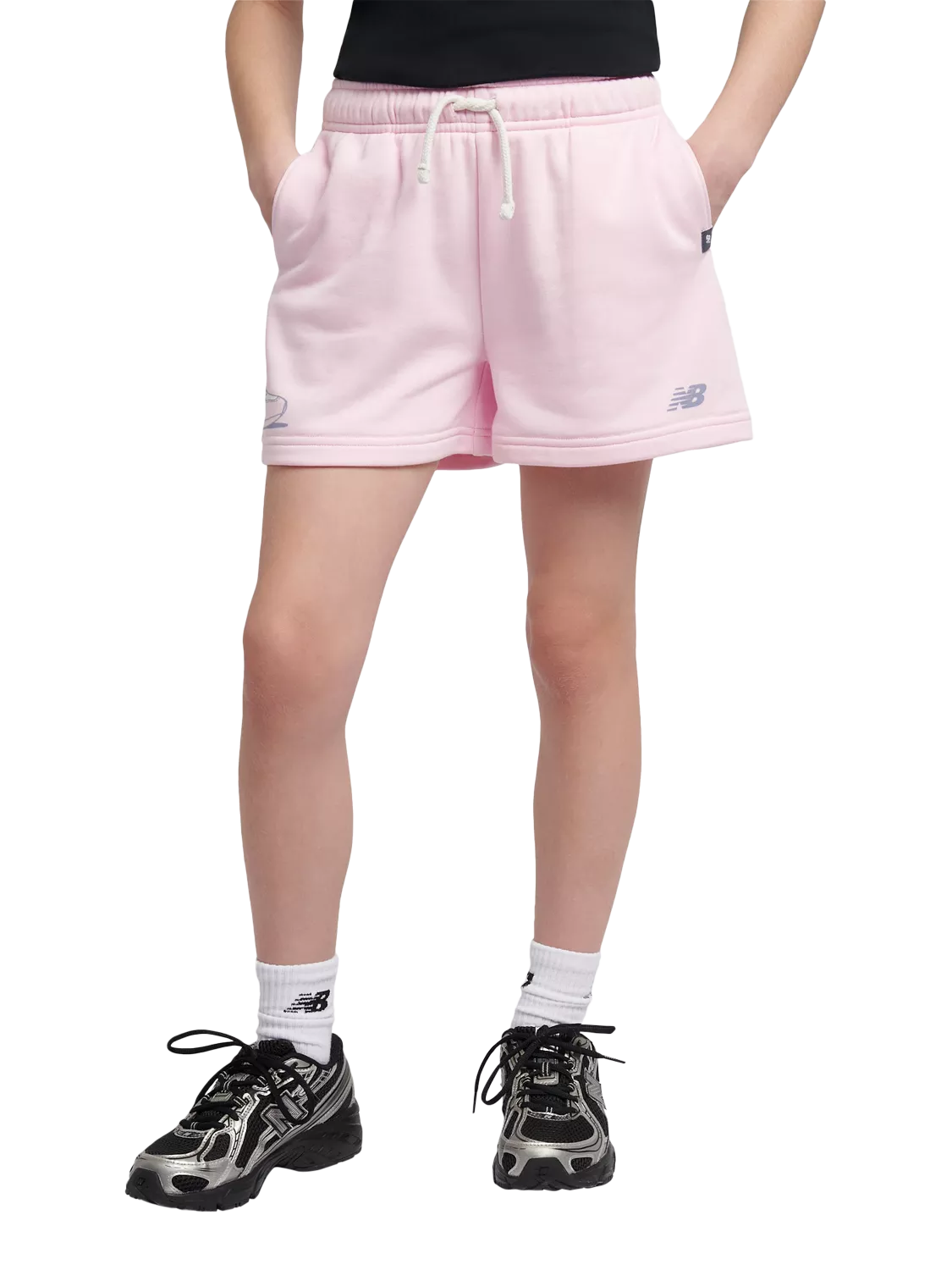 The shorts feature a standard fit with a true to size feel, designed to fit away from the body, and include an elasticated waistband, a centre-back zip pocket with an auto-lock slider, side vents on both sides, an internal polyester pant with an internal coin pocket, a flying NB reflective print, and are crafted from soft woven fabric with stretch.