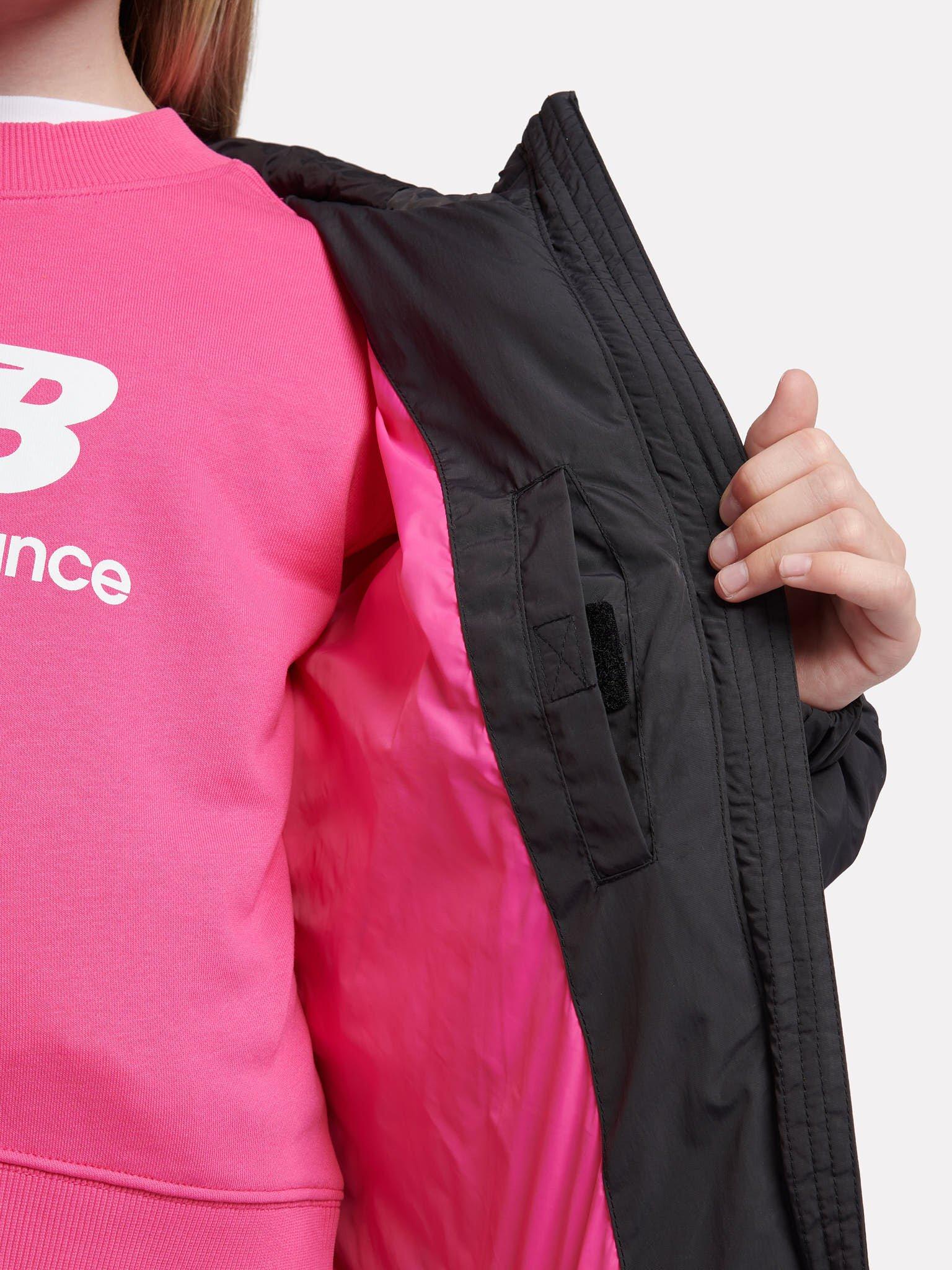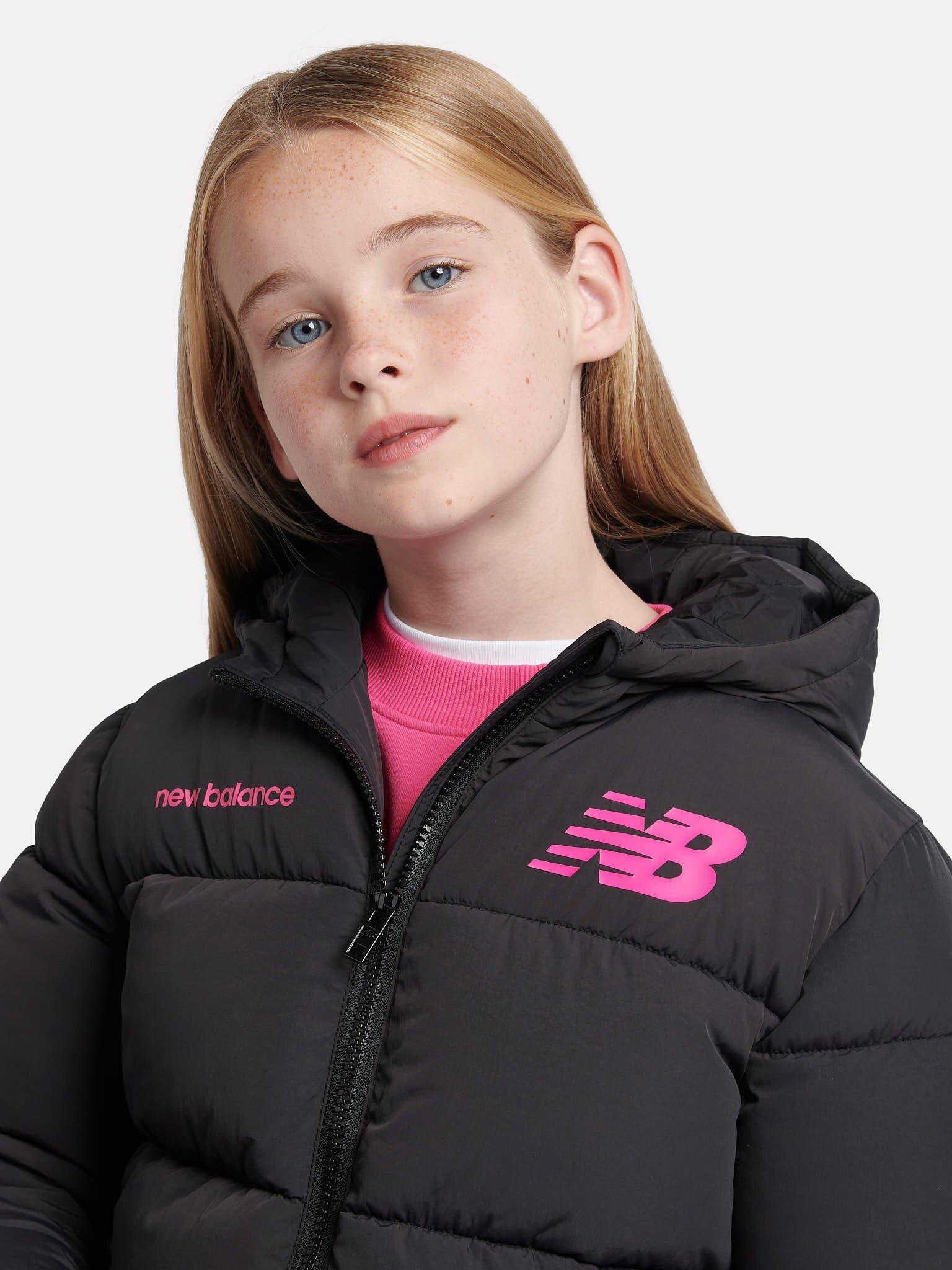 Keeping them warm and cosy when out and about, this puffer jacket from New Balance is topped with a hood, long sleeves with elasticated cuffs, pockets and a zip through the front.