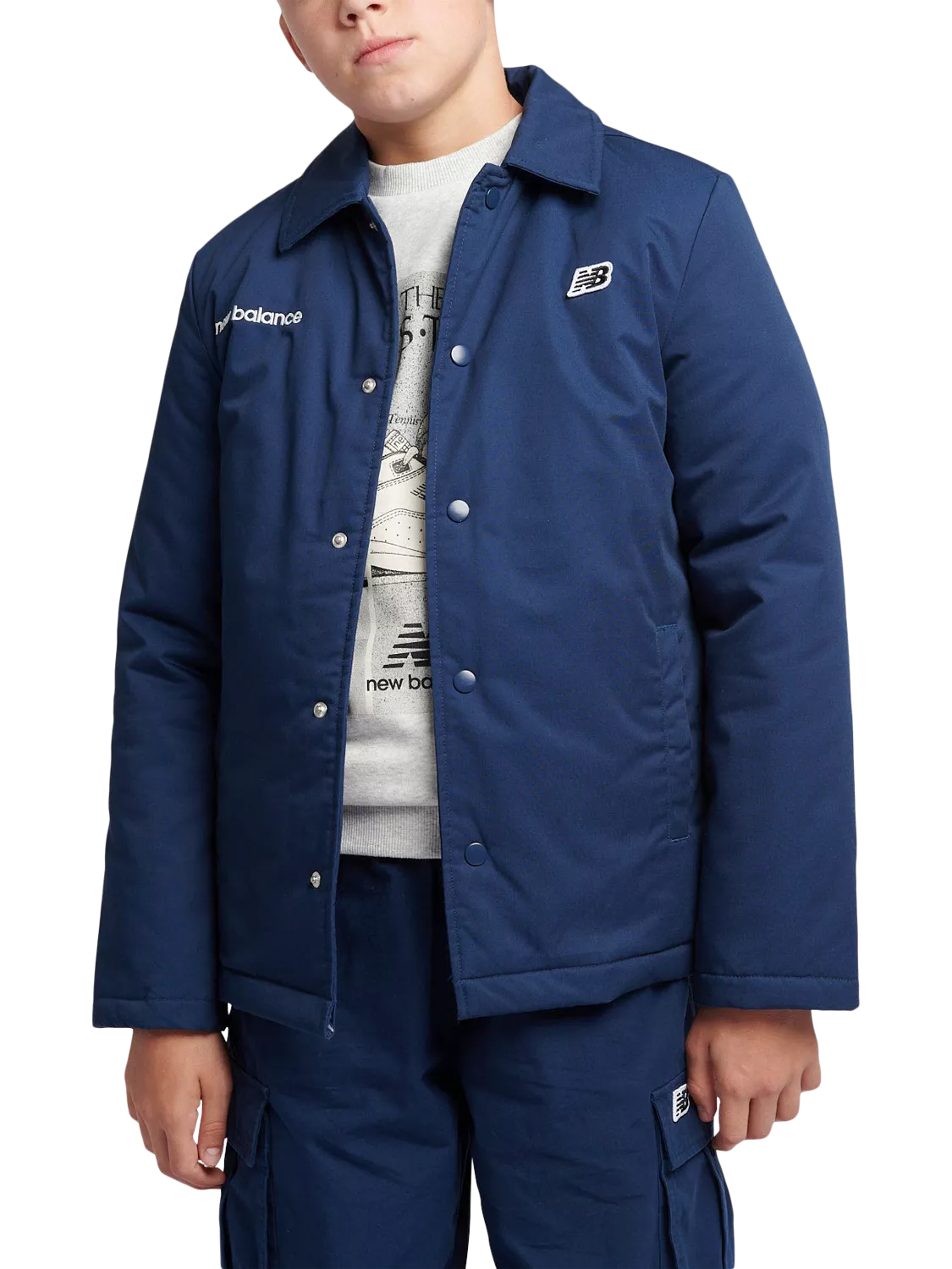 Designed to keep up with active kids, this premium coach jacket from New Balance is made from a soft cotton twill blend.