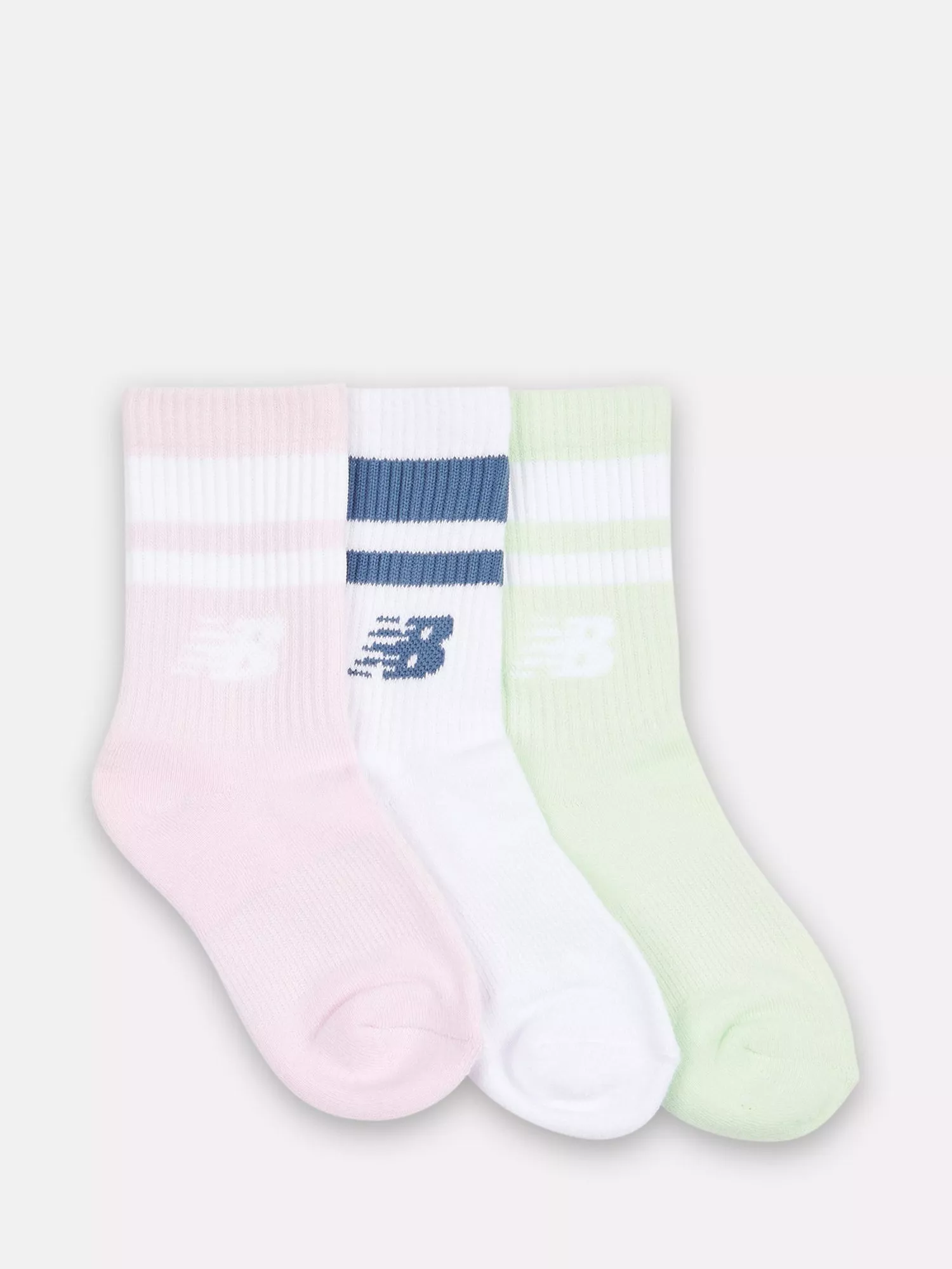 Sporty comfort meets fresh style with this 3 pack of tipped sports socks. The stretch cotton-blend wicks moisture, and targeted cushioning with arch support keeps feet happy. Tipped design and bold NB logo completes the athletic design. 72% cotton, 26% polyester, 2% elastane.