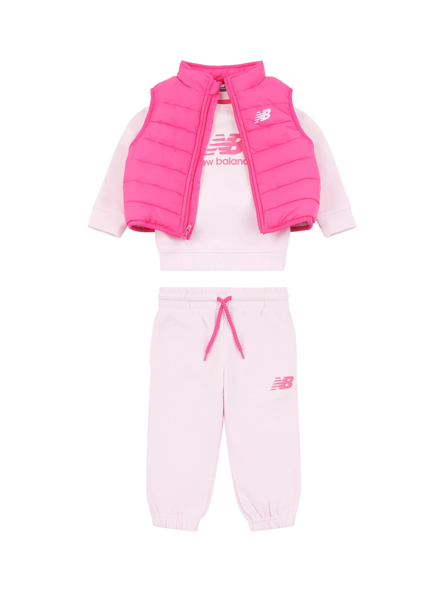 New BalanceKids' Sweatshirt, Joggers & Gilet Set, Light Raspberry