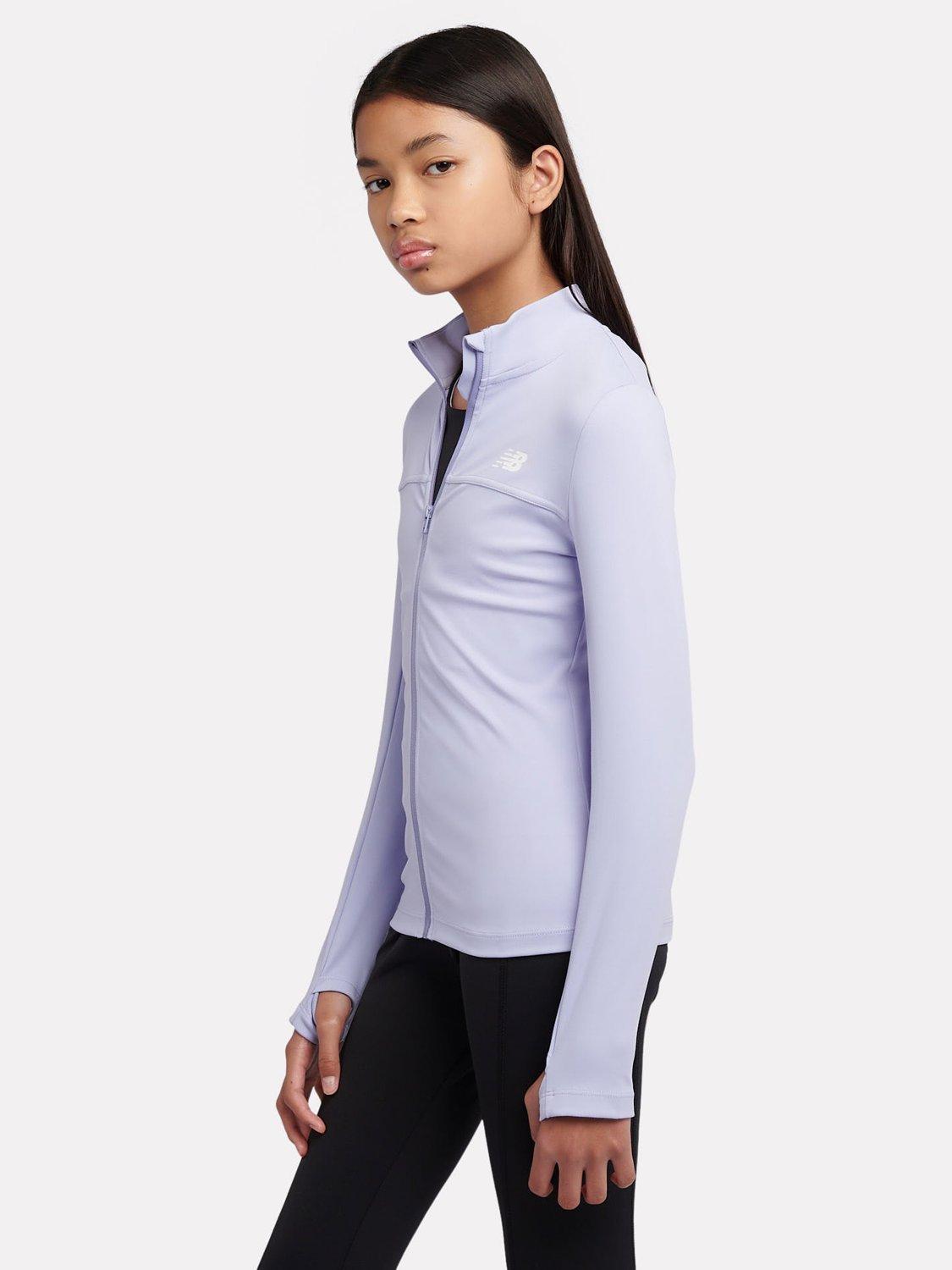 This girls performance zip funnel jacket is a streamlined, technical layer with a fitted silhouette, clean seam detailing and a soft funnel neck that sits neatly under outerwear. The double knit fabric feels smooth yet supportive, with built-in stretch for unrestricted movement, while thumbhole cuffs, a guarded front zip and thoughtfully finished inner neck ensure all-day comfort for active young wearers.