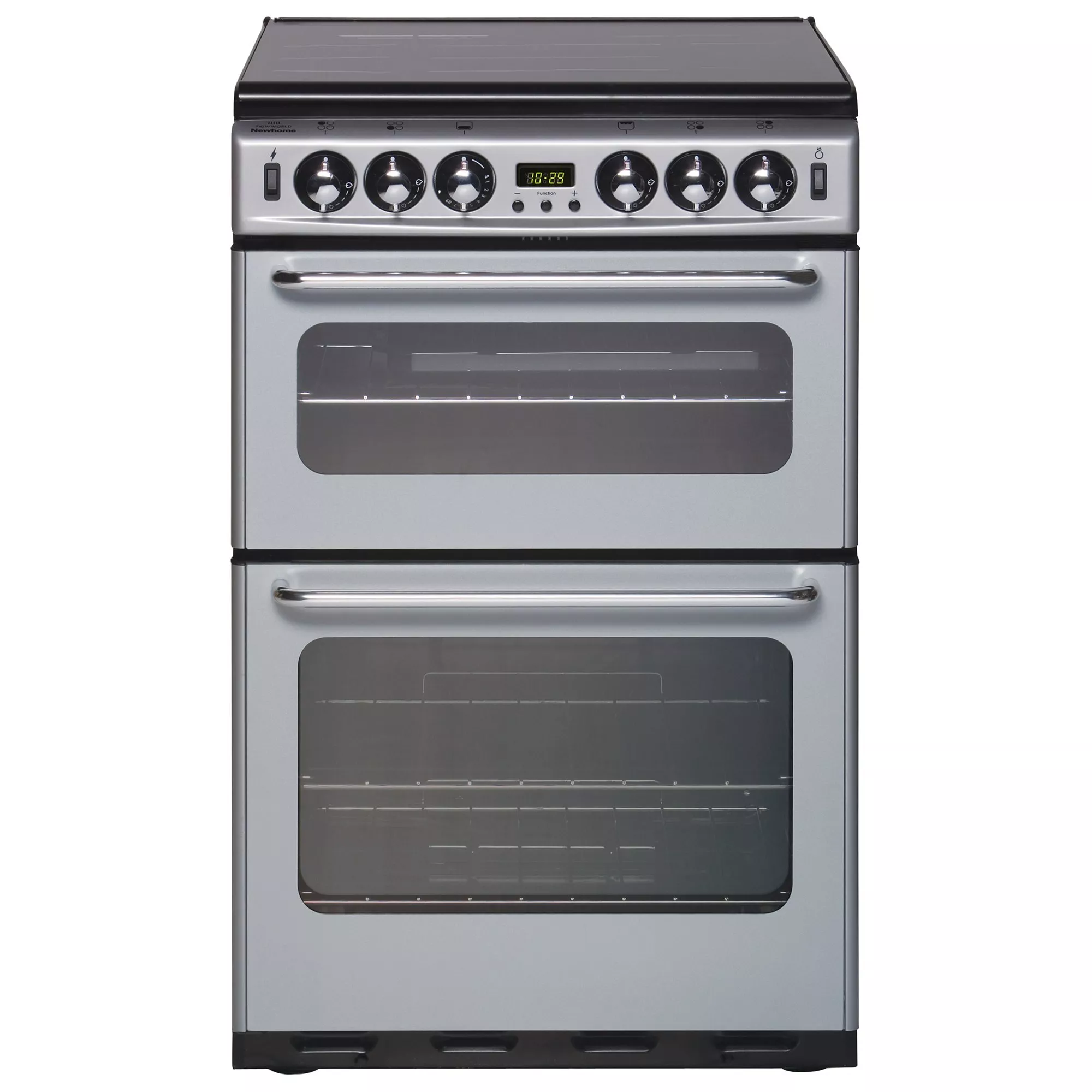The silver New World 550TSIDOM is a 55cm wide gas cooker with 2 gas ovens and gas hob.The 4-burner hob has enamel pan supports and automatic ignition with a flame failure device for extra peace of mind. The toughened glass lid also features a safety cut out should it be lowered while one of the hob burners is still ignited.The main cavity is a Gyroflo conventional gas oven, working on the principle that heat rises. It’s hotter at the top then a the bottom - ideal for cooking different dishes simultaneously. The inner glass is also removable for cleaning.