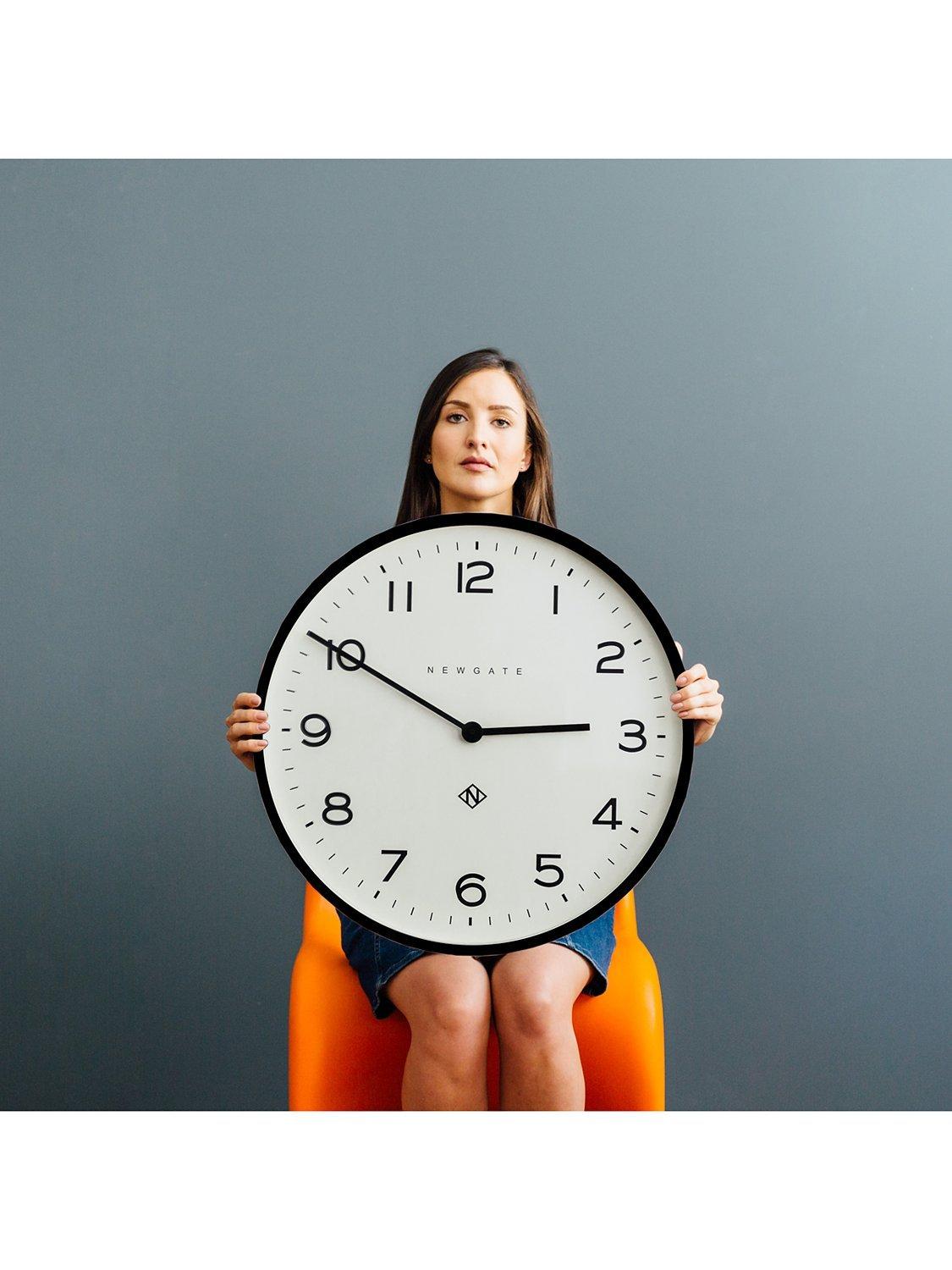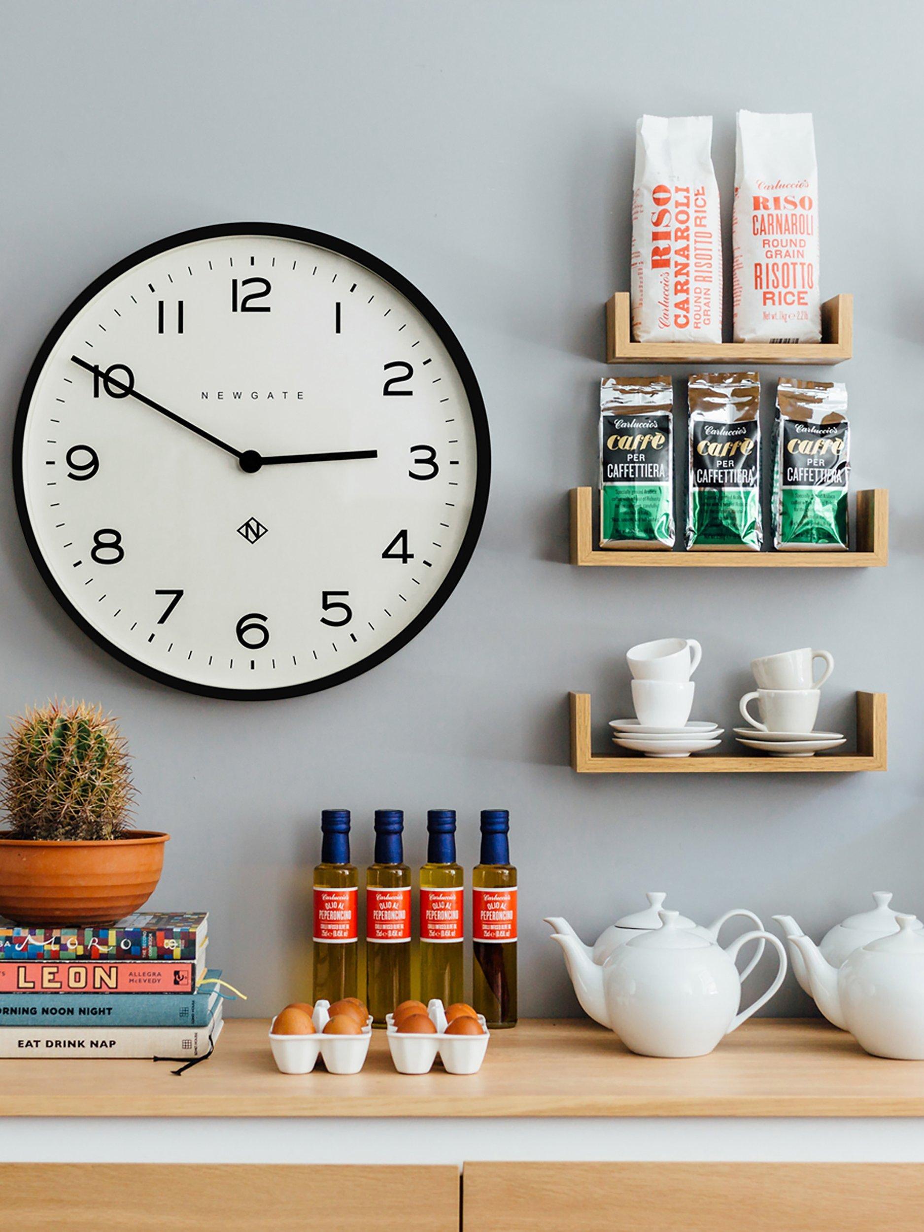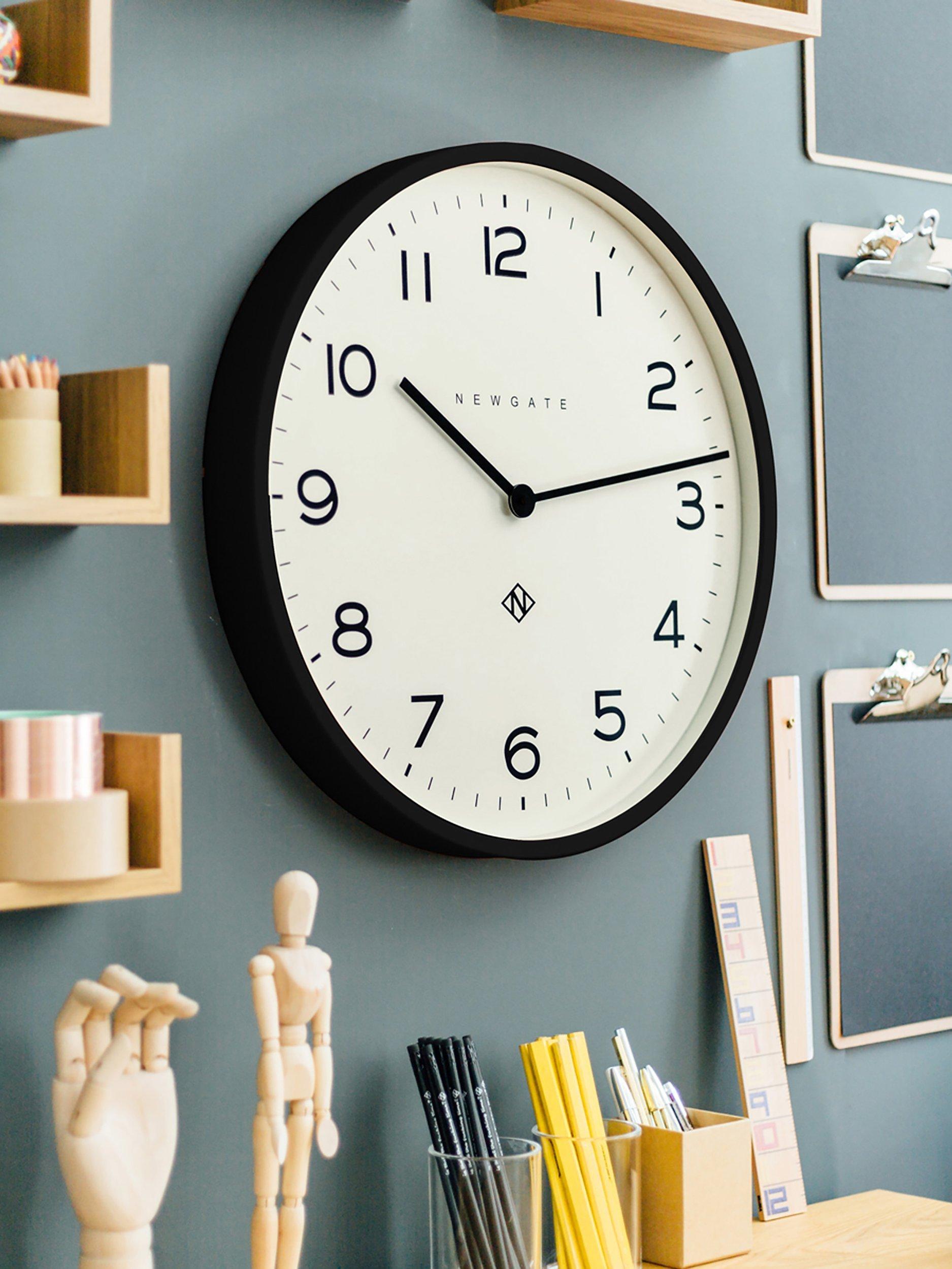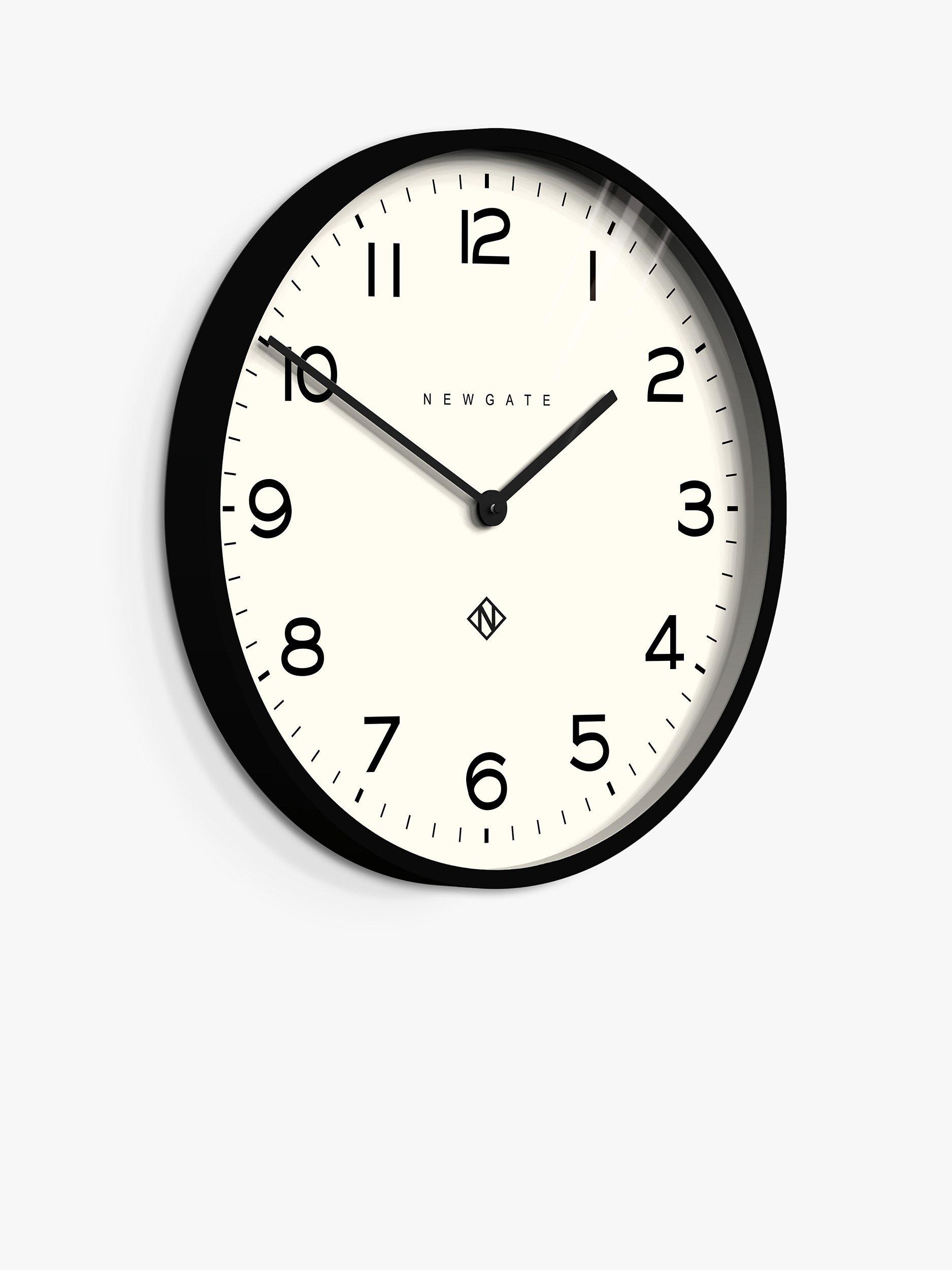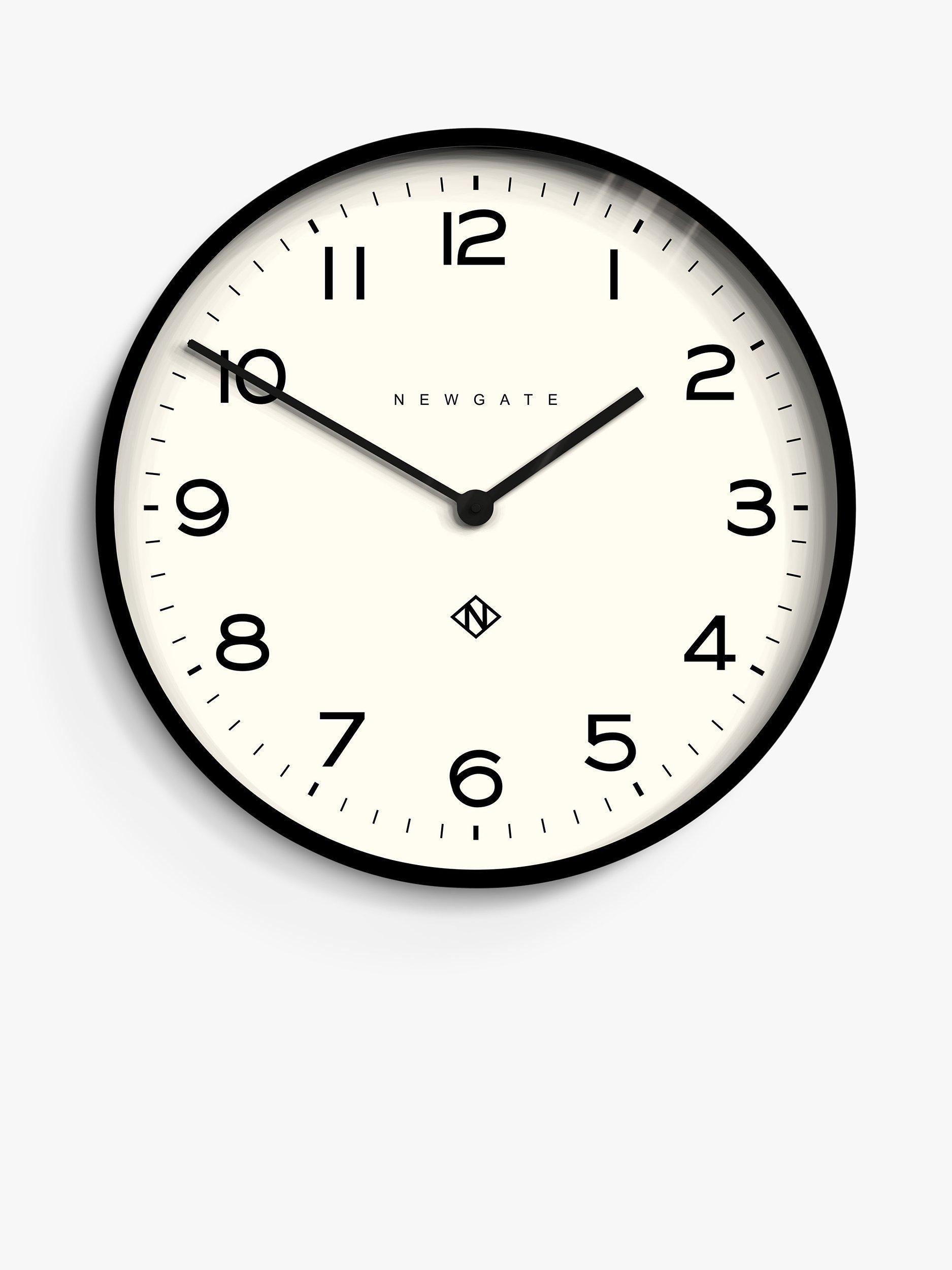 Contemporary in design, the Echo Number One round wall clock from Newgate Clocks has an acrylic case with a matt finish. A glass lens protects minimalist metal baton hands and Arabic numerals marking the hours.