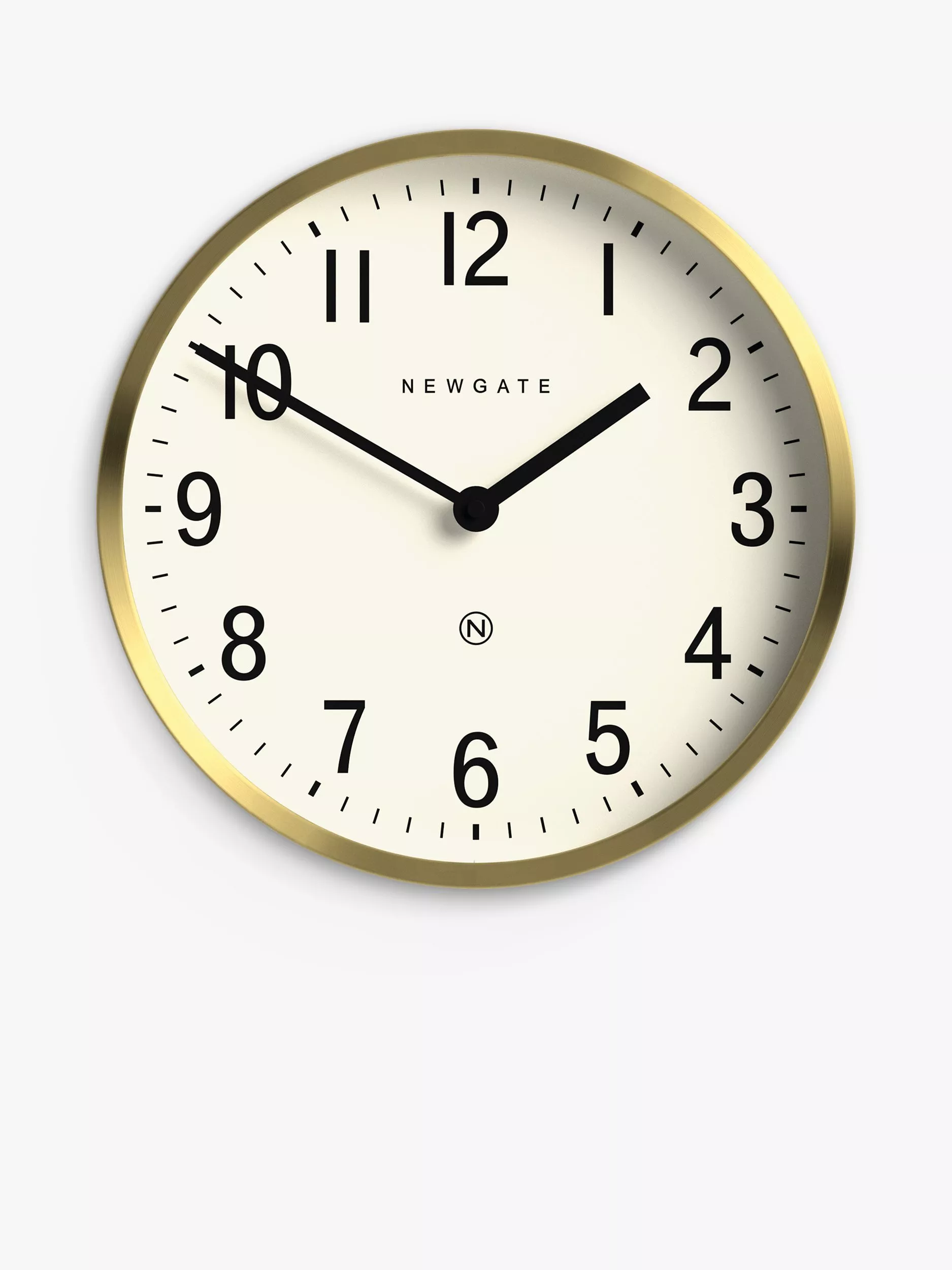 The Master Edwards wall clock from Newgate Clocks is inspired by mid-century minimalism with a solid circular metal case, straight cut for a clean and graphic line and modernist finish. The dial has Arabic numeral hour markers in a modern font, protected by a flat glass lens.