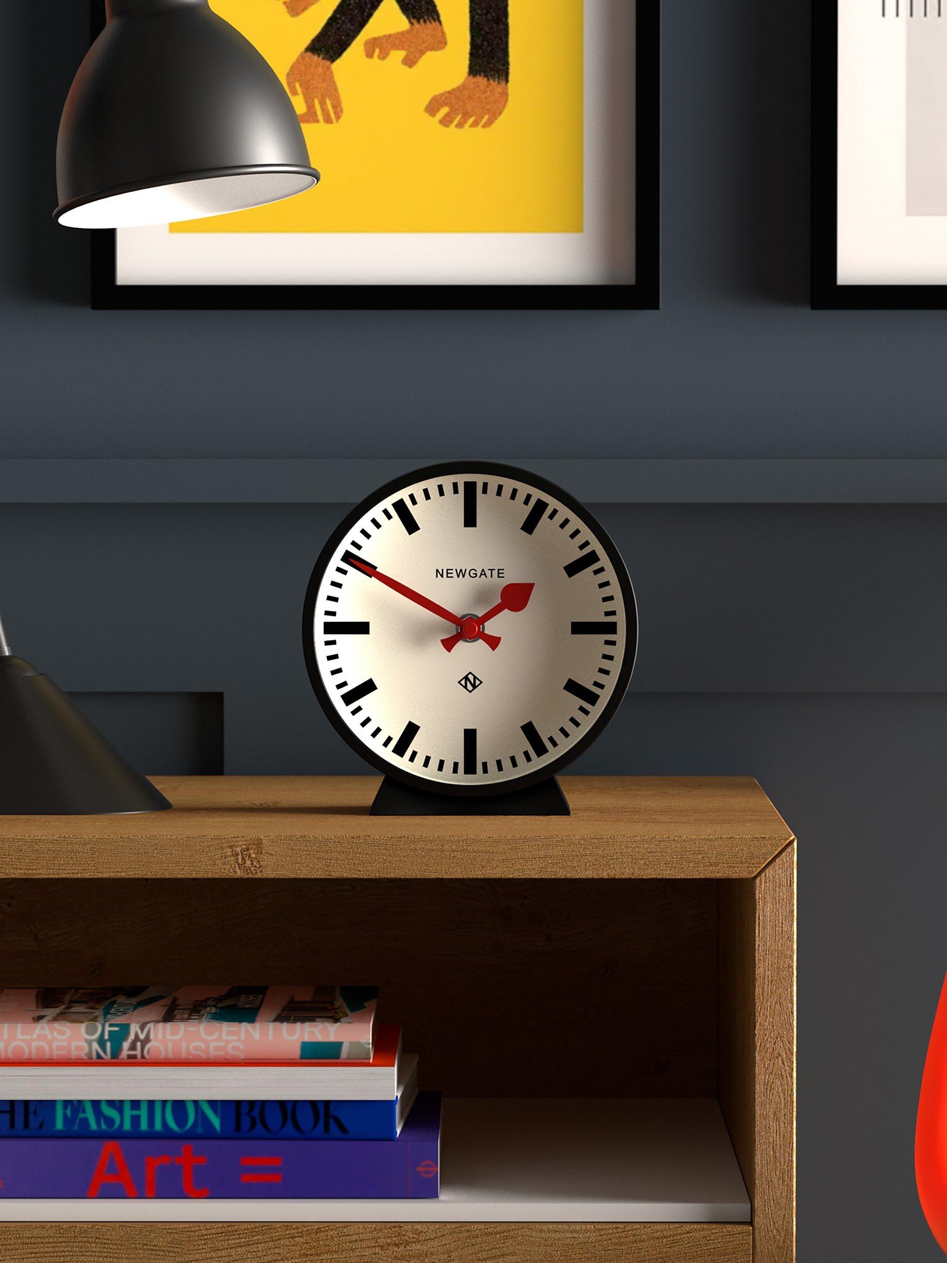 A station-style mantel clock from Newgate Clocks, this round design has a minimalist dial, glass lens and contrasting baton hands. Known as 'silent sweep' in the industry, the hands move in a constant sweeping motion rather than a stepped tick. So you won't hear any ticking but if your hearing is particularly sensitive, in a completely silent room you may hear a very quiet whirring.