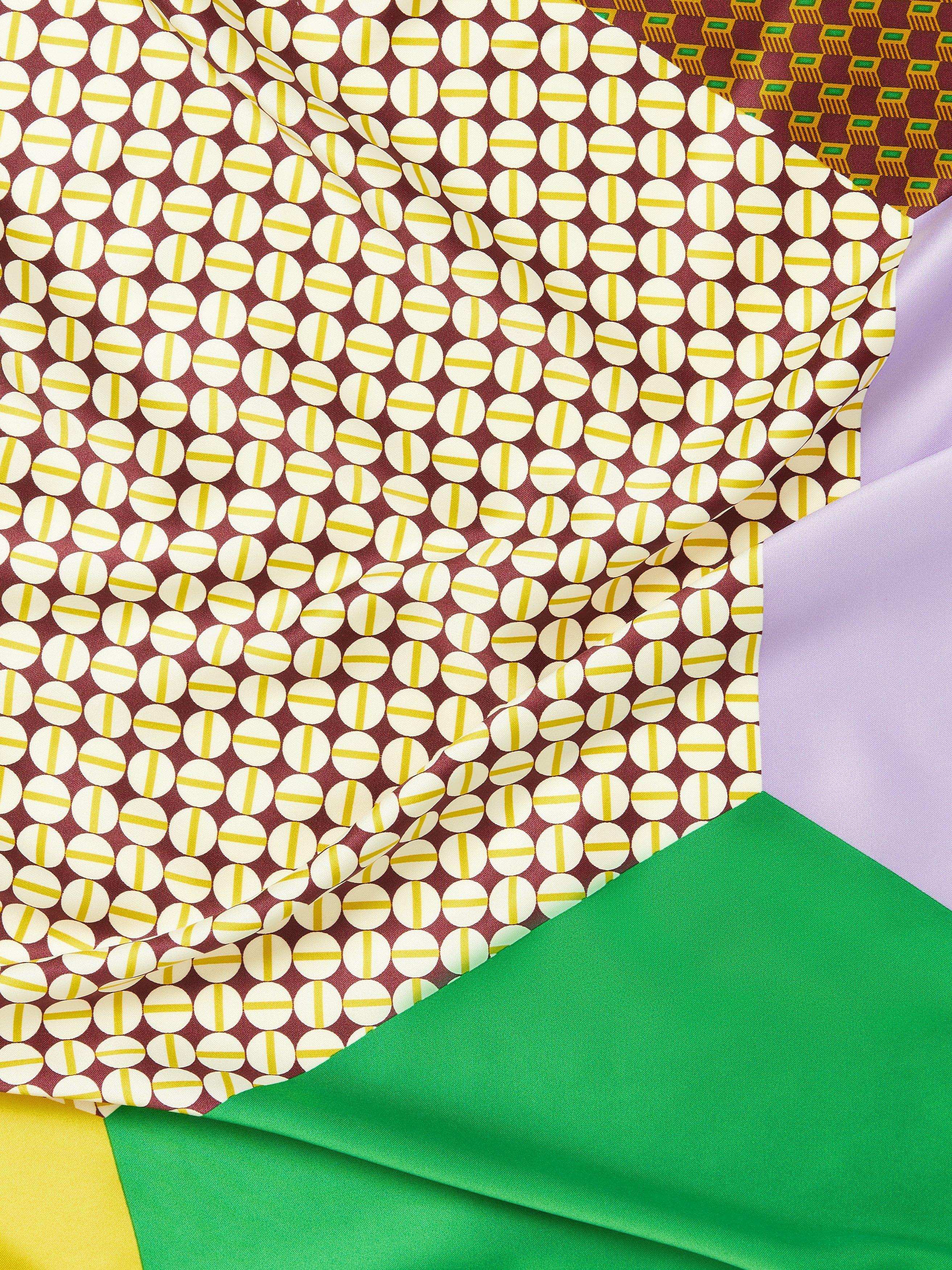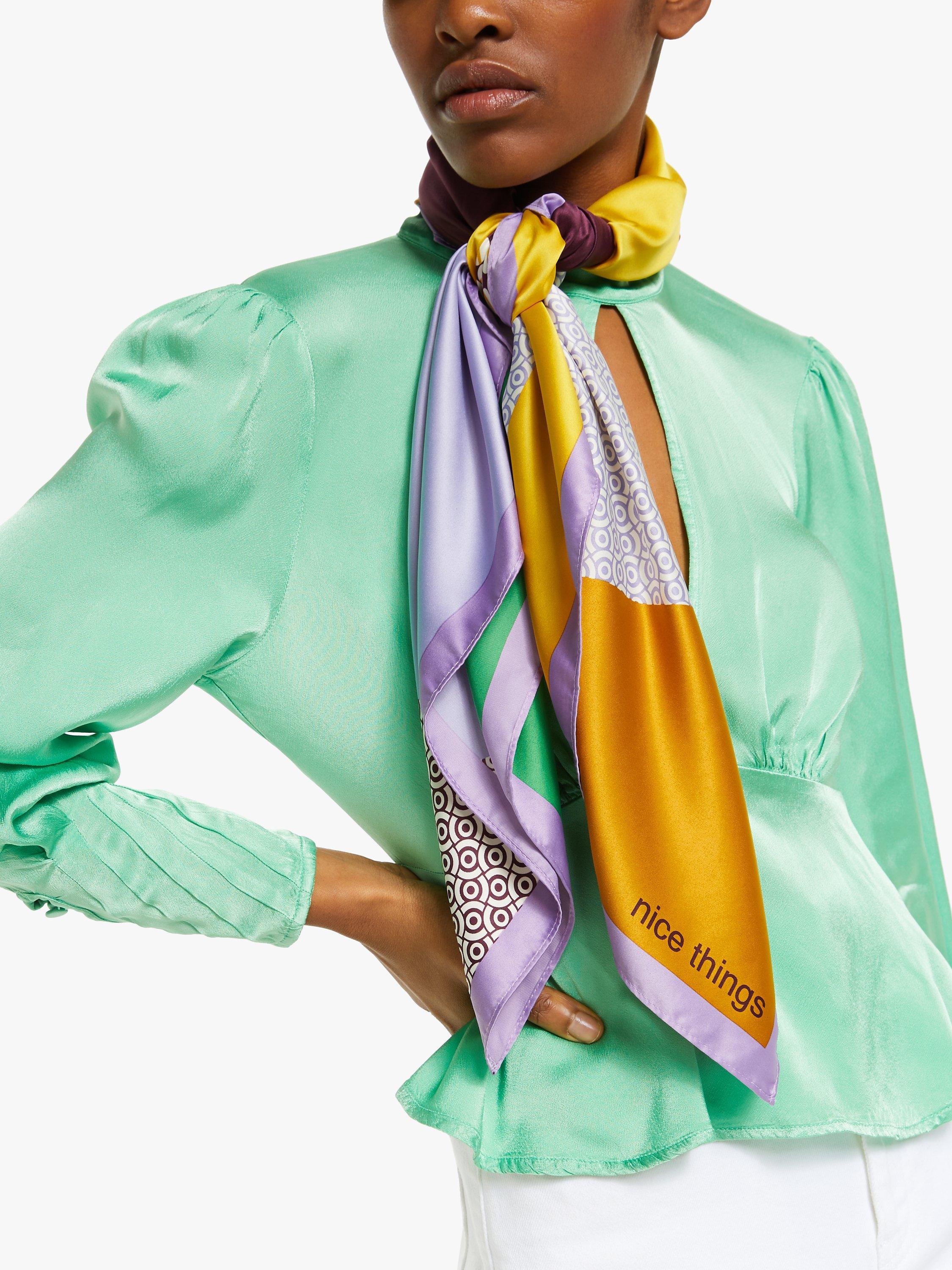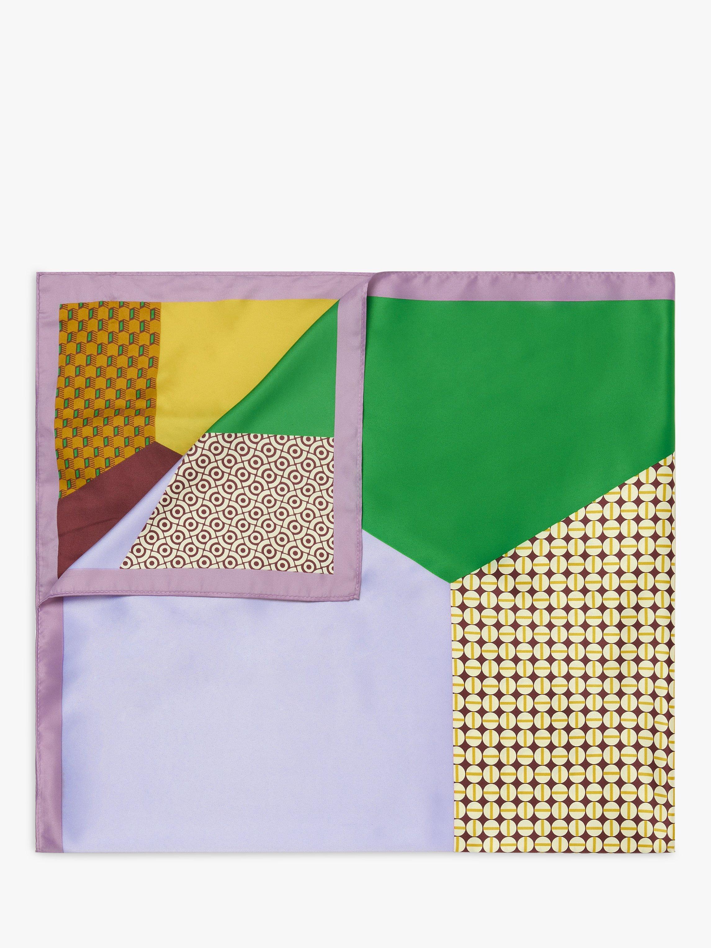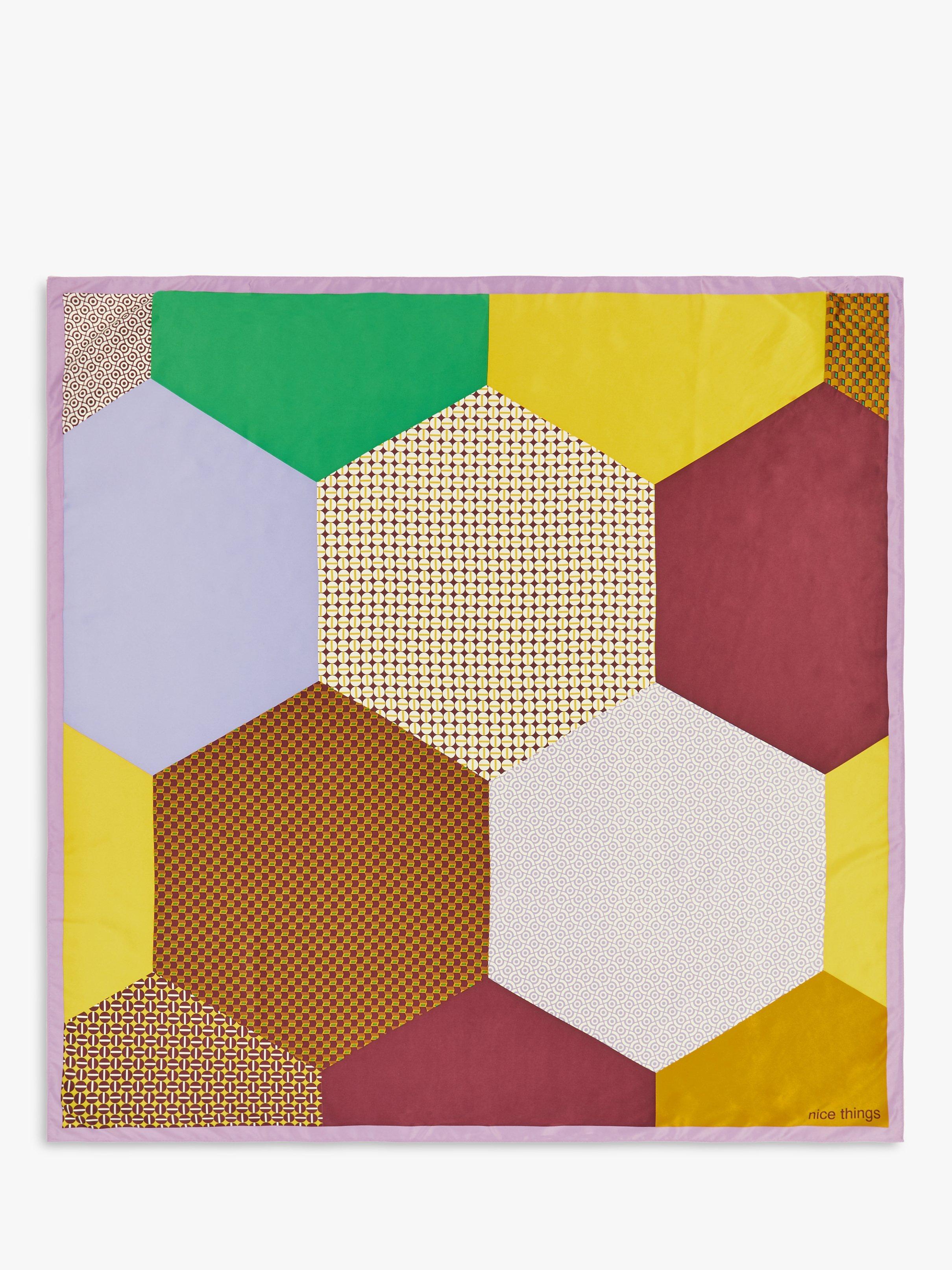 The piece is designed to suit a wide range of outfits thanks to its colourful look. The wide square shape enables different styling options while the honeycomb print makes this scarf relevant season after season.