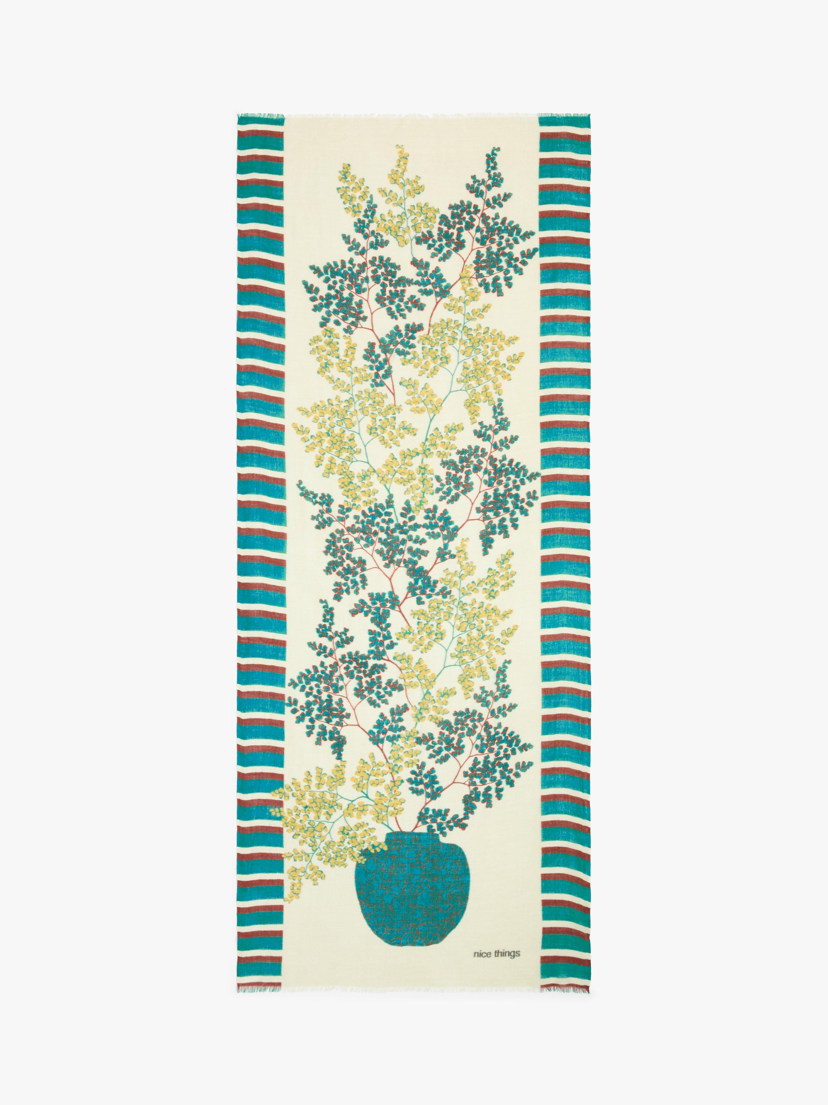 Made from a lightweight blend imbued with warming wool, this scarf from Nice Things is printed with an oriental inspired flower vases print that's sure to lift your everyday looks.