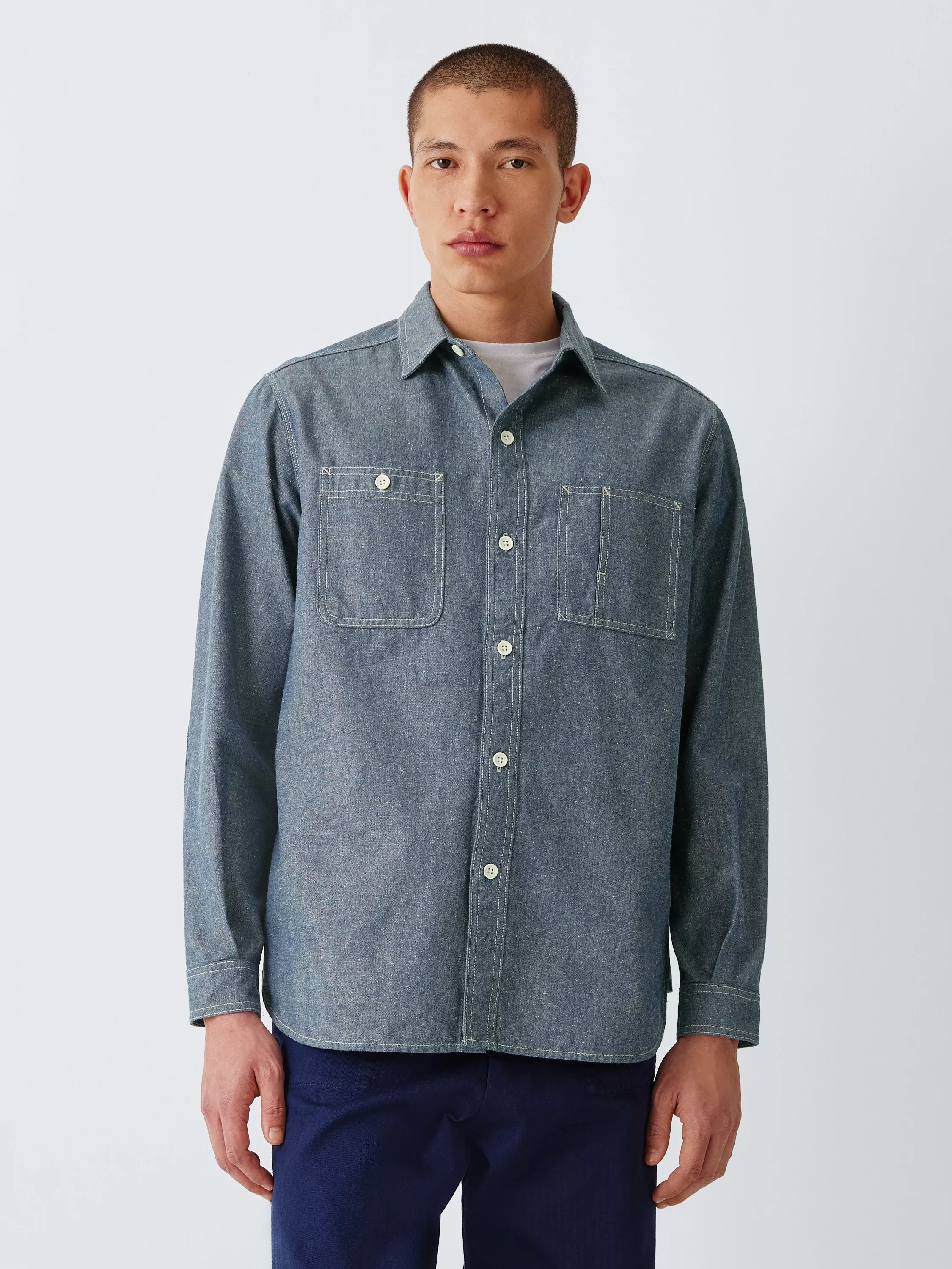Nigel CabournCotton Regular Fit Chambray Shirt, Indigo