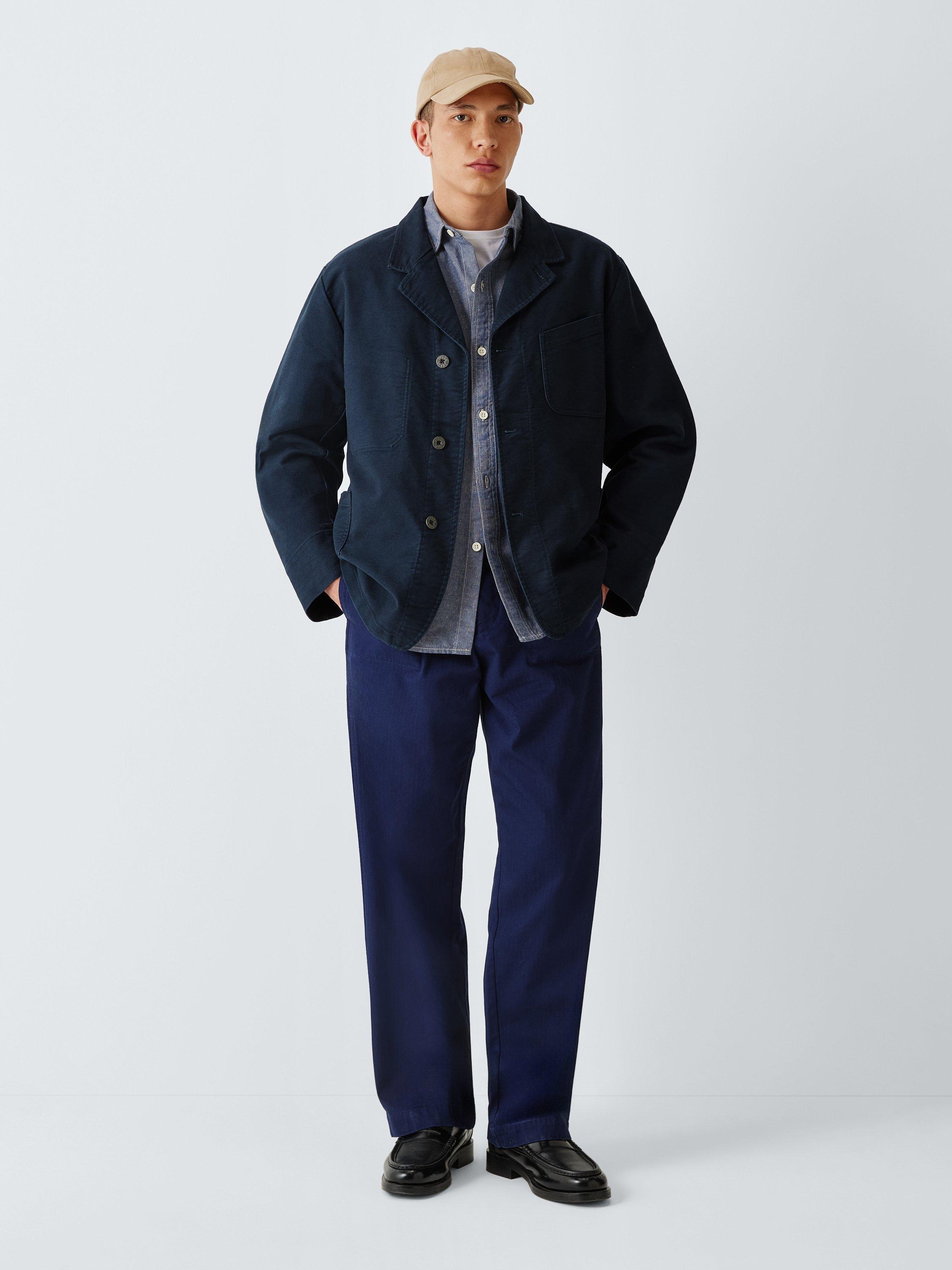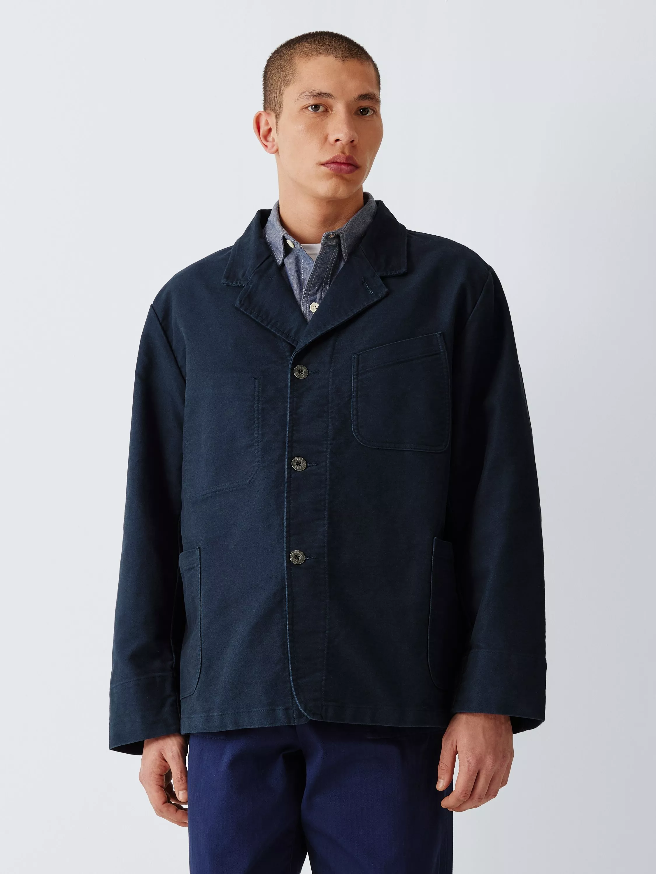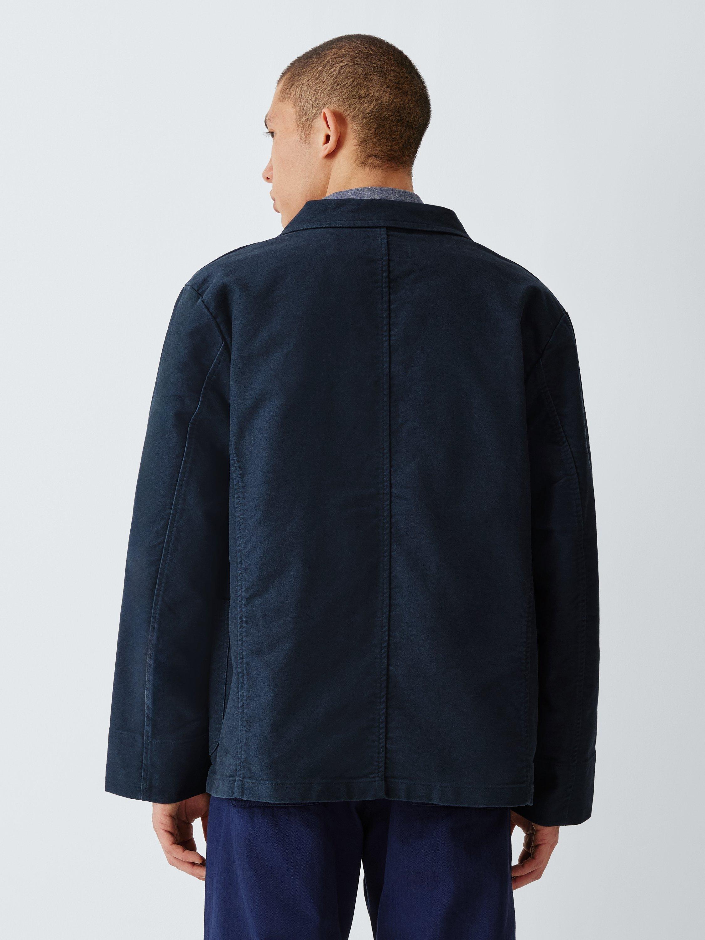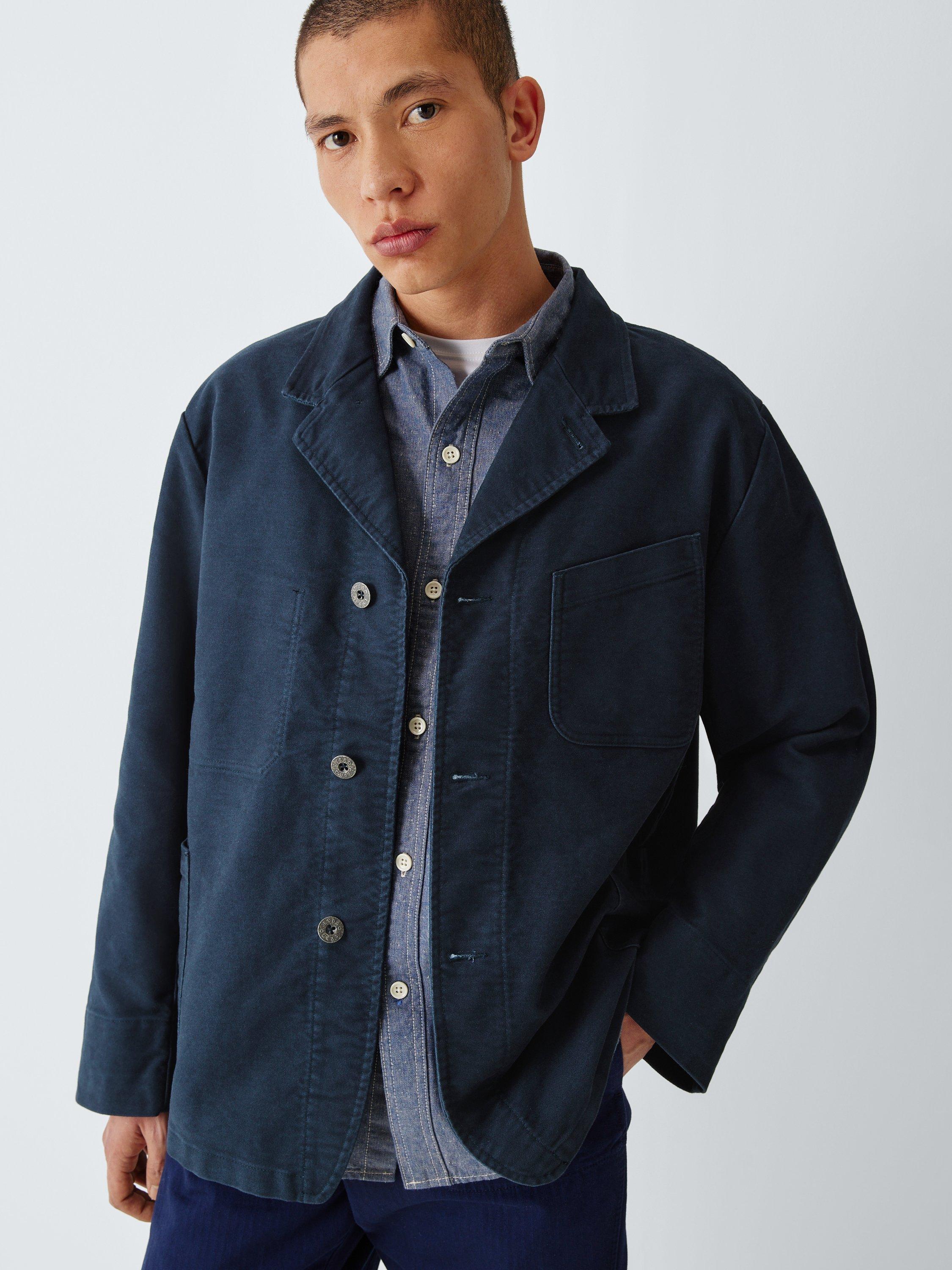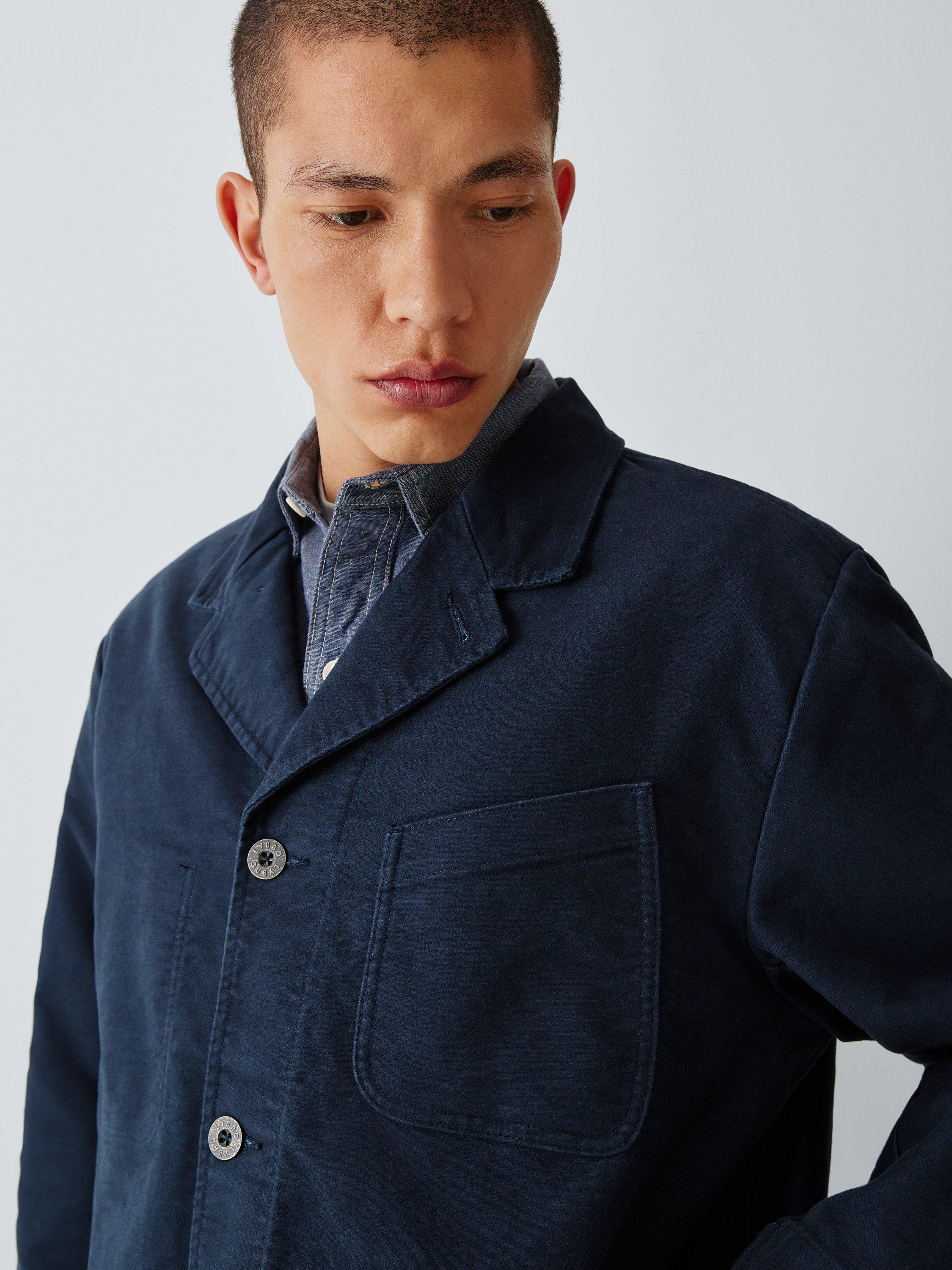 Made from a heavy duty cotton moleskin, this work jacket is based on traditional notch lapel blazers and has been updated with Lybro branded metal buttons and utilitarian patch pockets to the front.