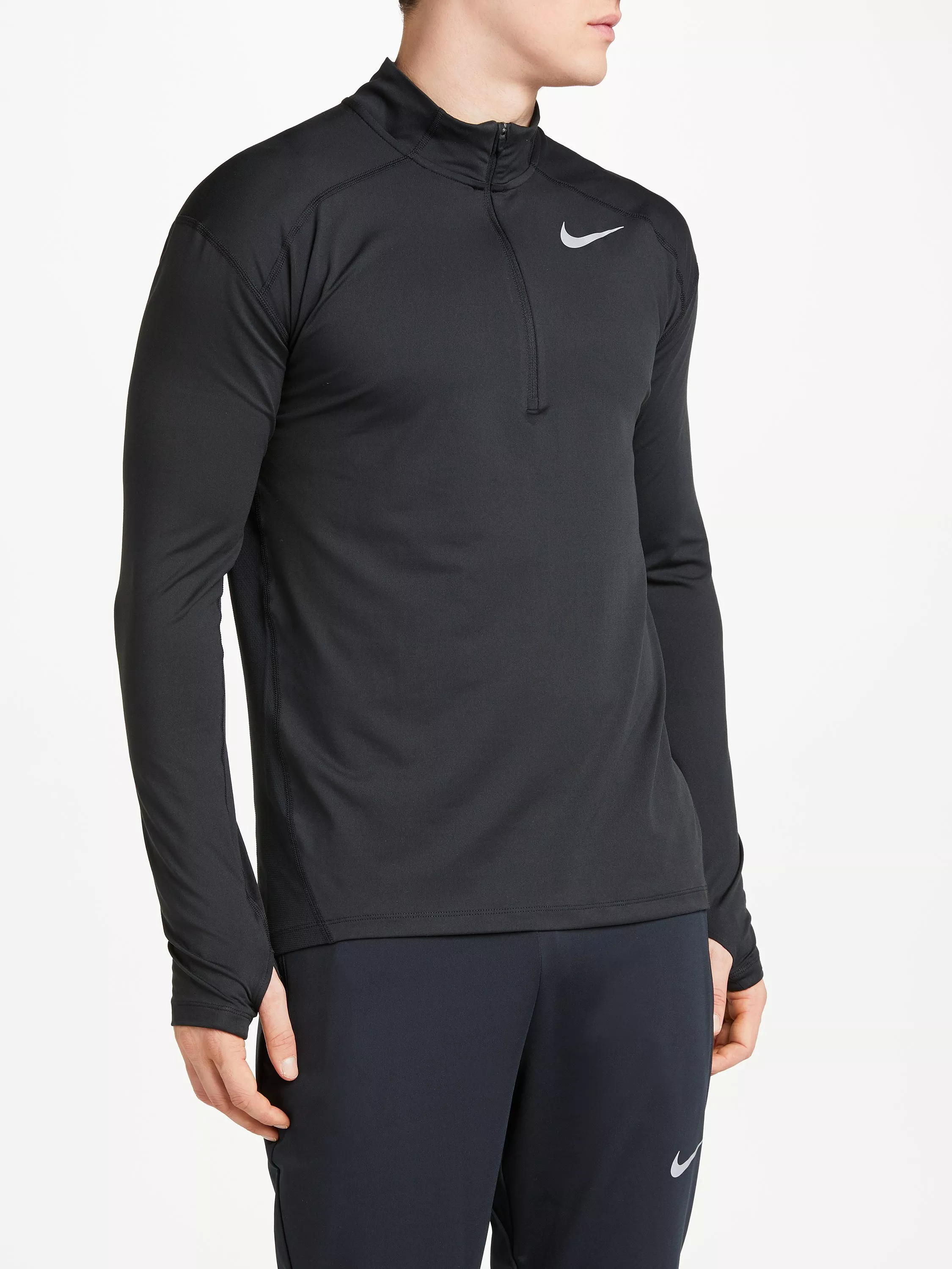 In a sleek design, this long sleeve top works to keep you dry and comfortable. Nike Dry fabric combines with a customisable 1/2 zip opening, thumbholes at the cuffs and zoned mesh for breathability.