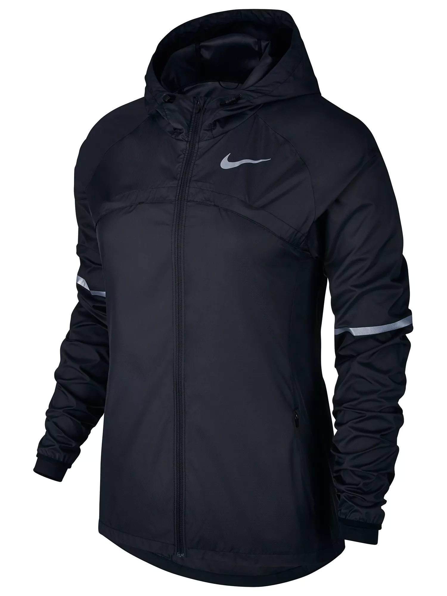 Resist wind and repel water with Nike’s Shield Hooded Running Jacket.